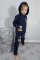 Üç İplik Şardonlu Kapşonlu Baskılı Lacivert Takım