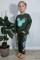 Üç İplik Şardonlu Baskılı Siyah Takım
