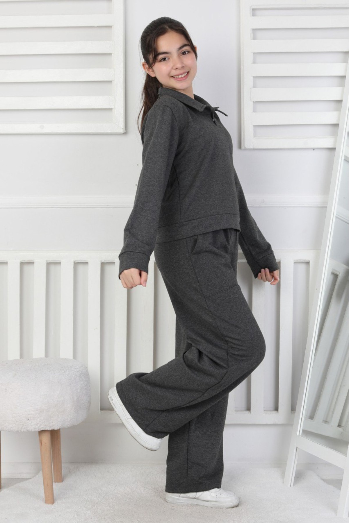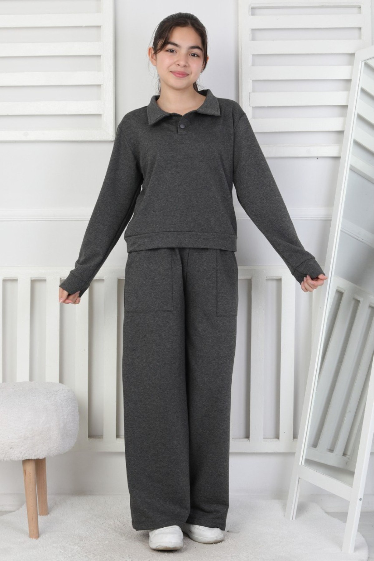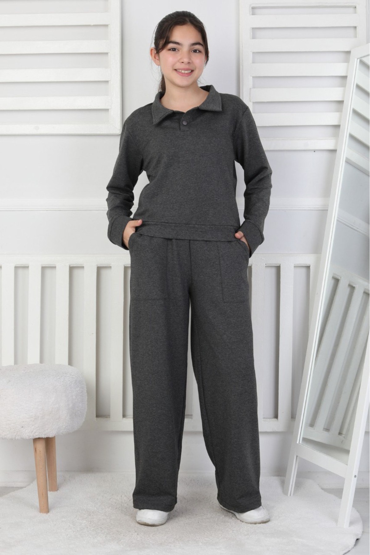 Yakalı Cepli Bol Paça Kız Çocuk Takım