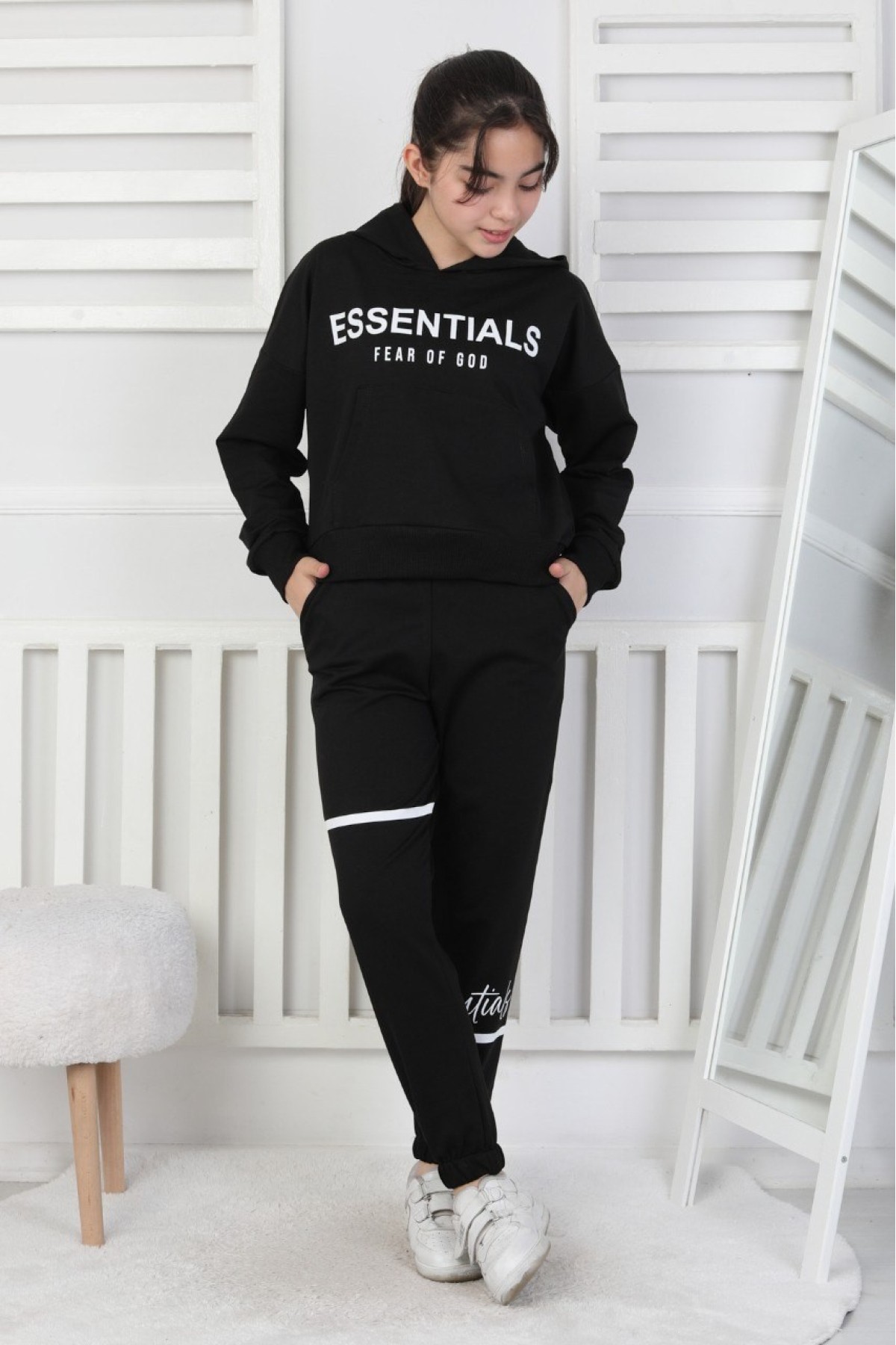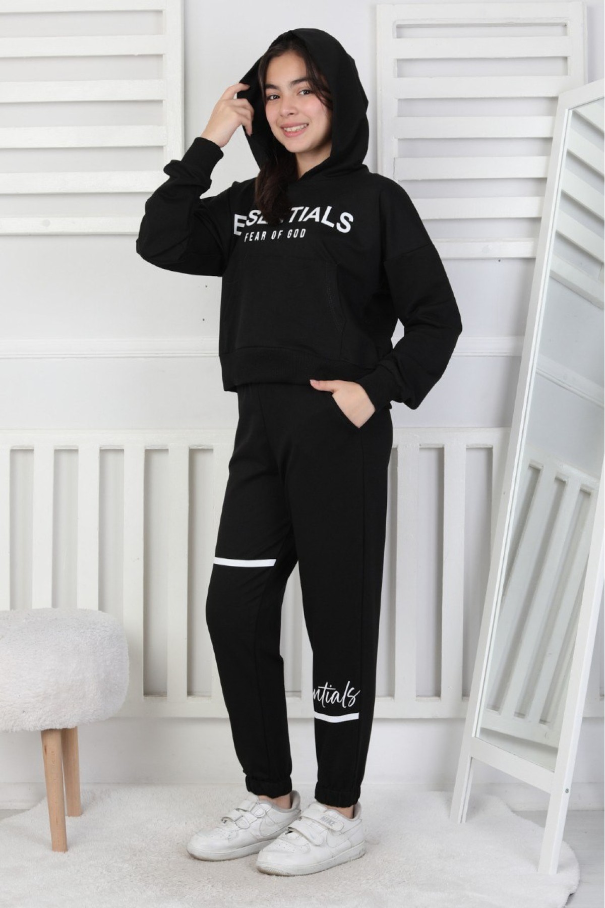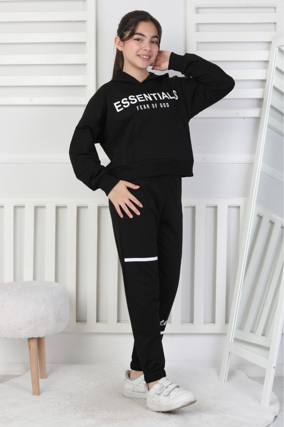 İki İplik Kapüşonlu Baskılı Kız Çocuk Takım
