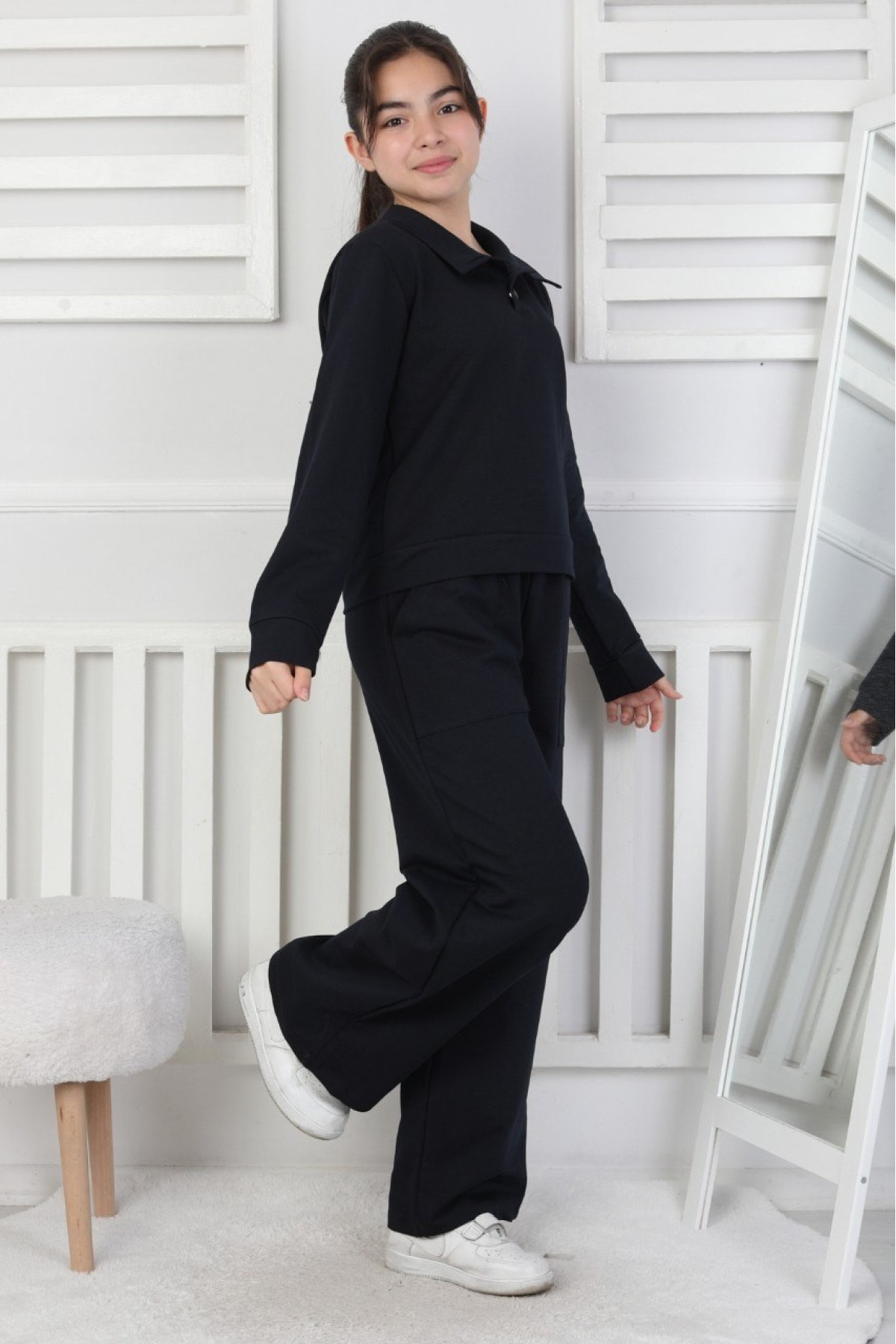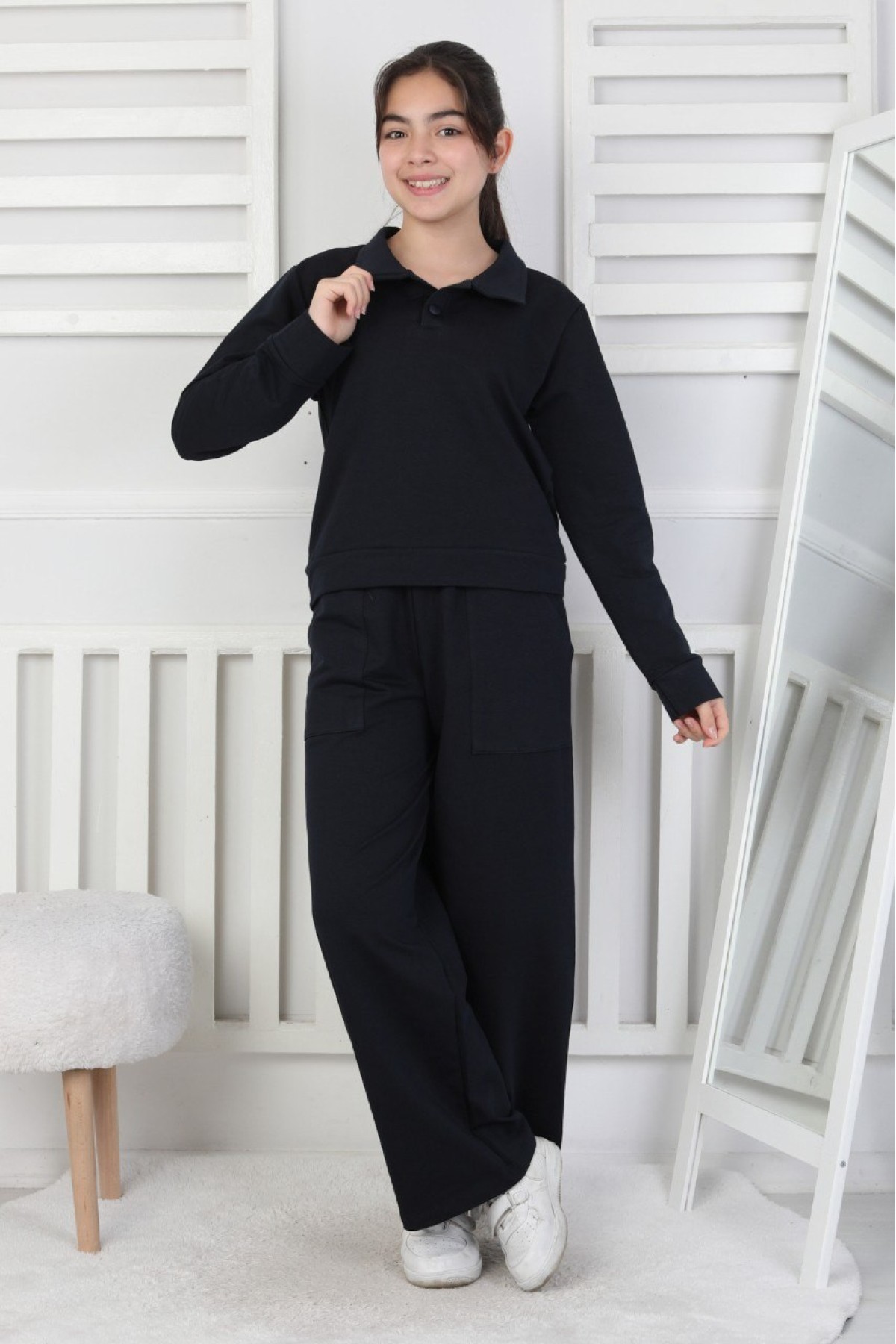 Yakalı Cepli Bol Paça Kız Çocuk Takım