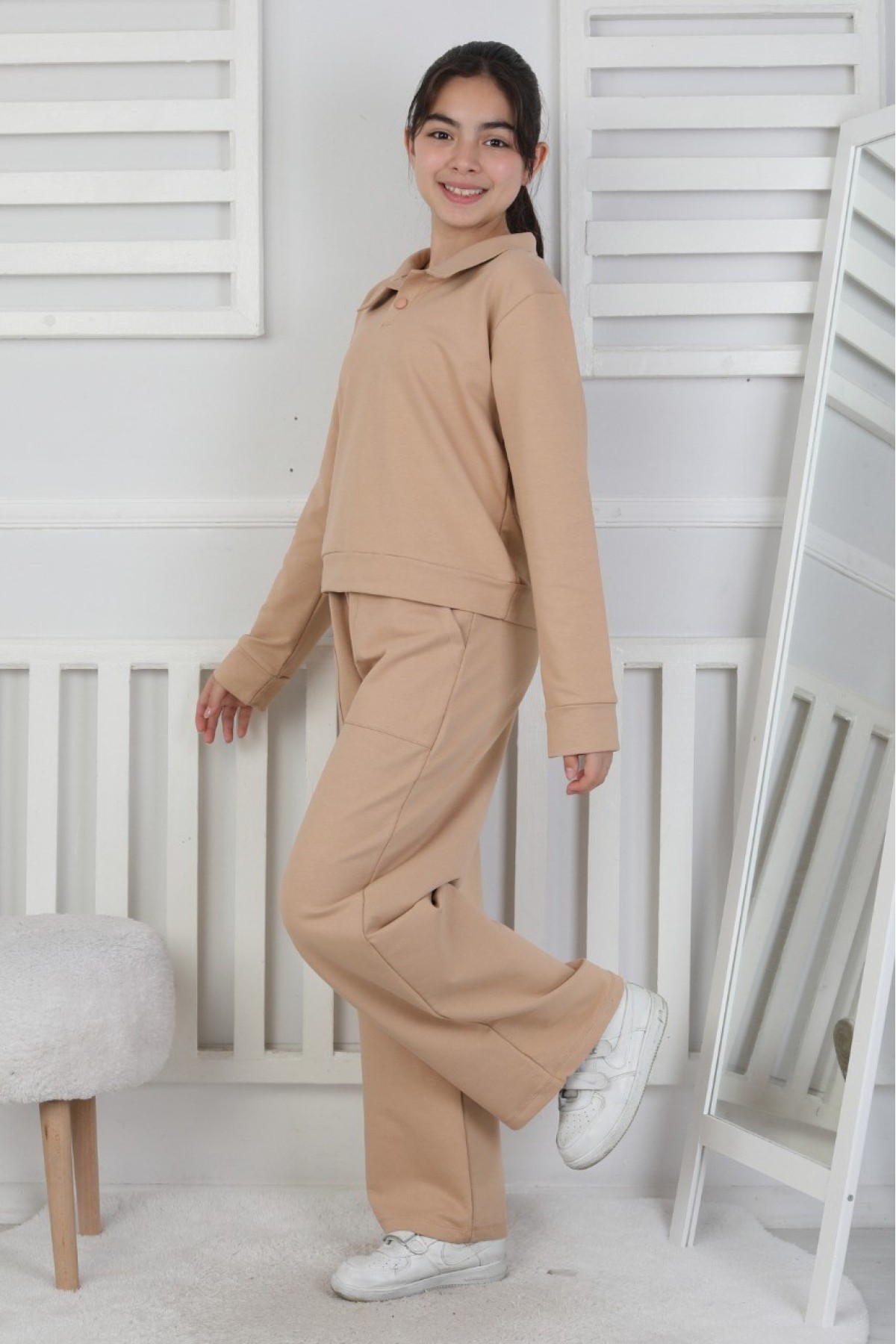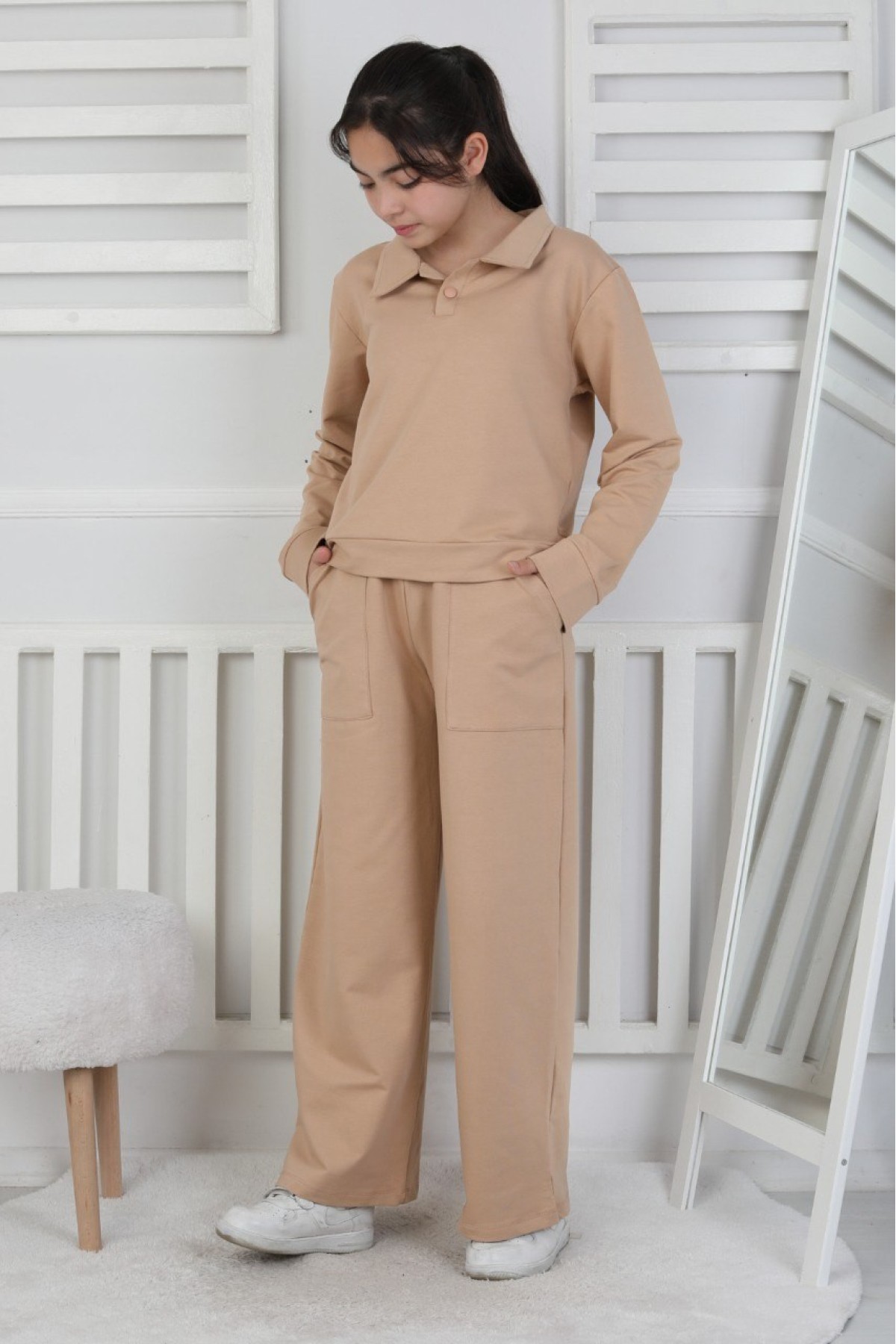Yakalı Cepli Bol Paça Kız Çocuk Takım