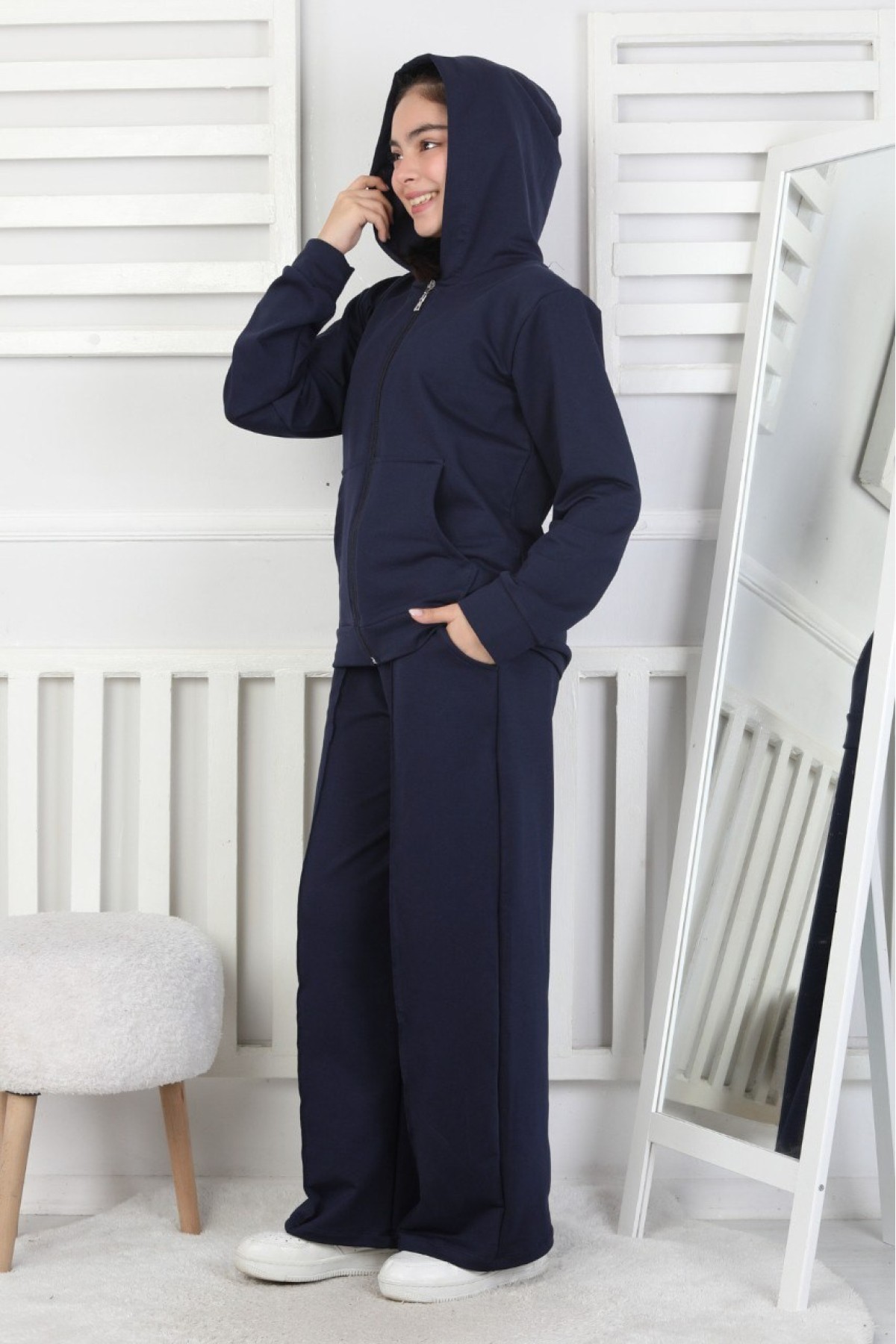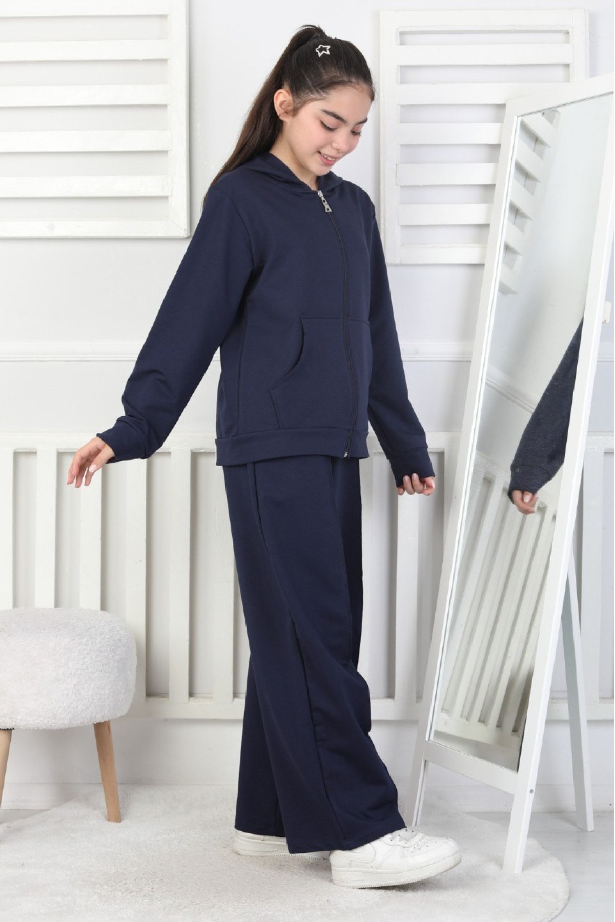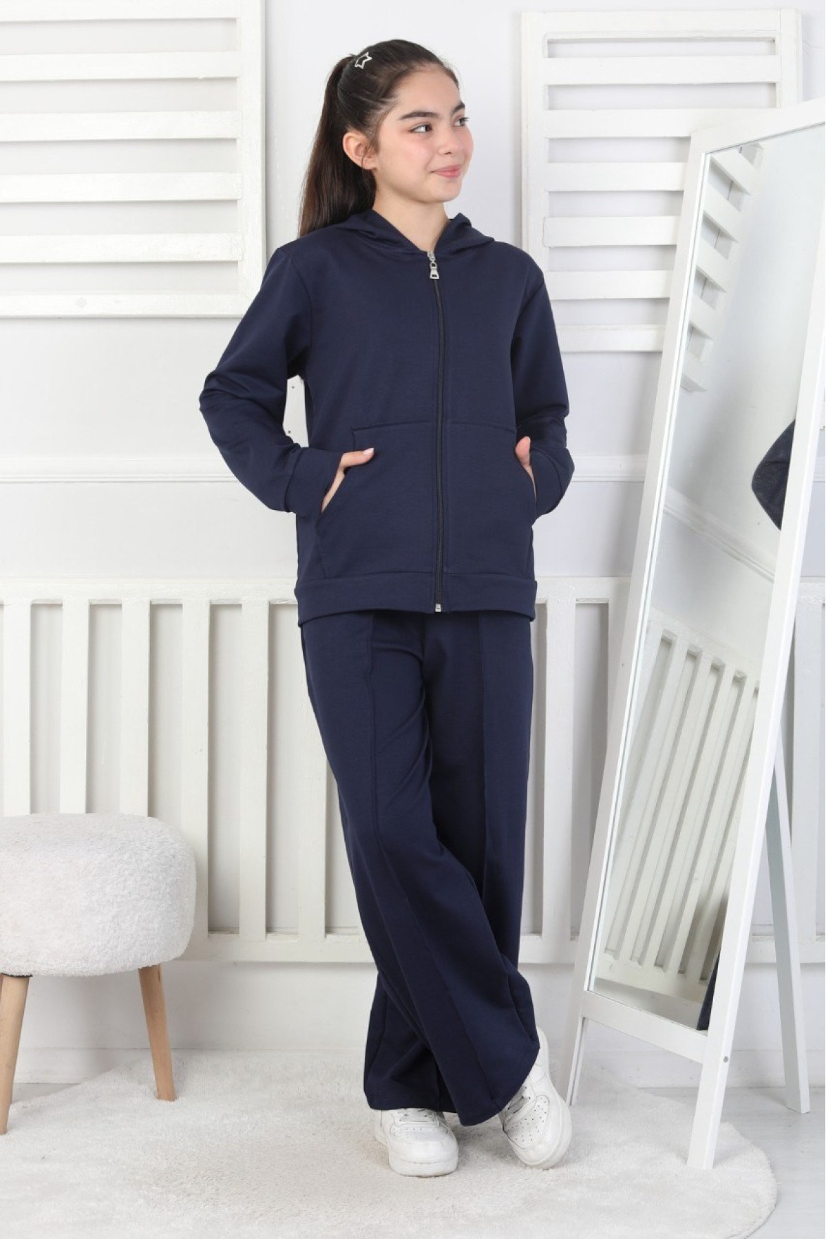 İki İplik Kapüşonlu Fermuarlı Kız Çocuk Takım