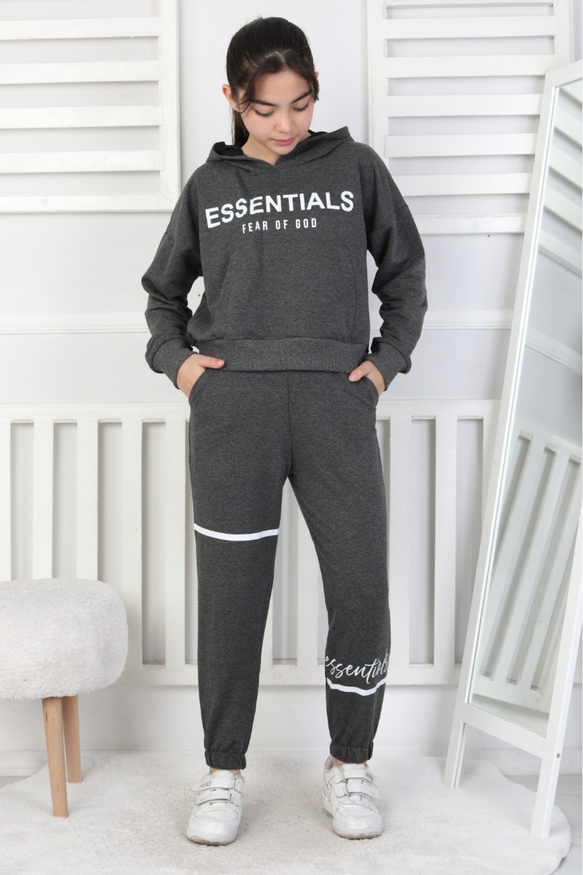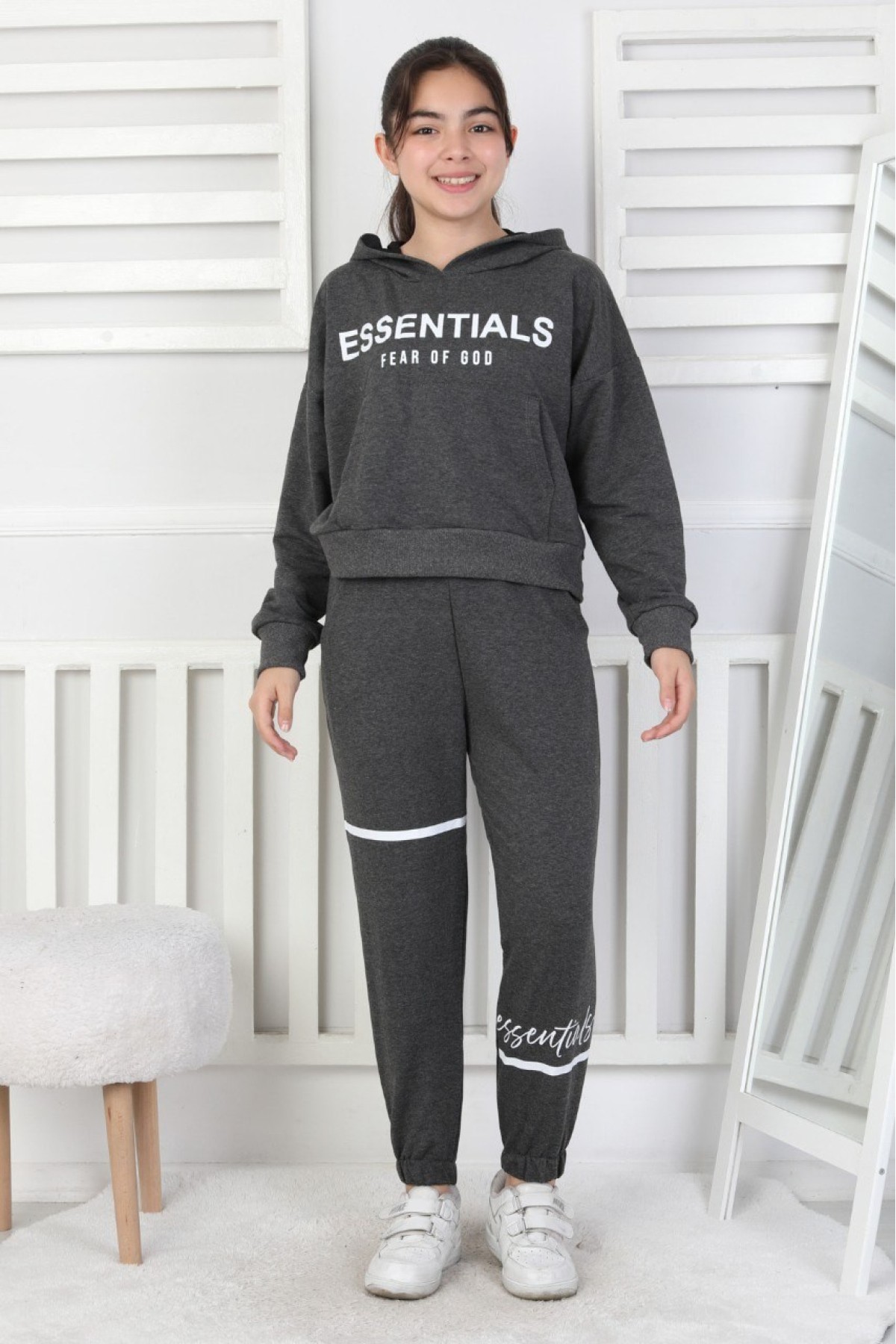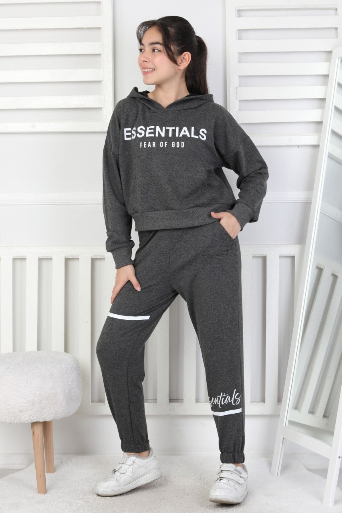 İki İplik Kapüşonlu Baskılı Kız Çocuk Takım