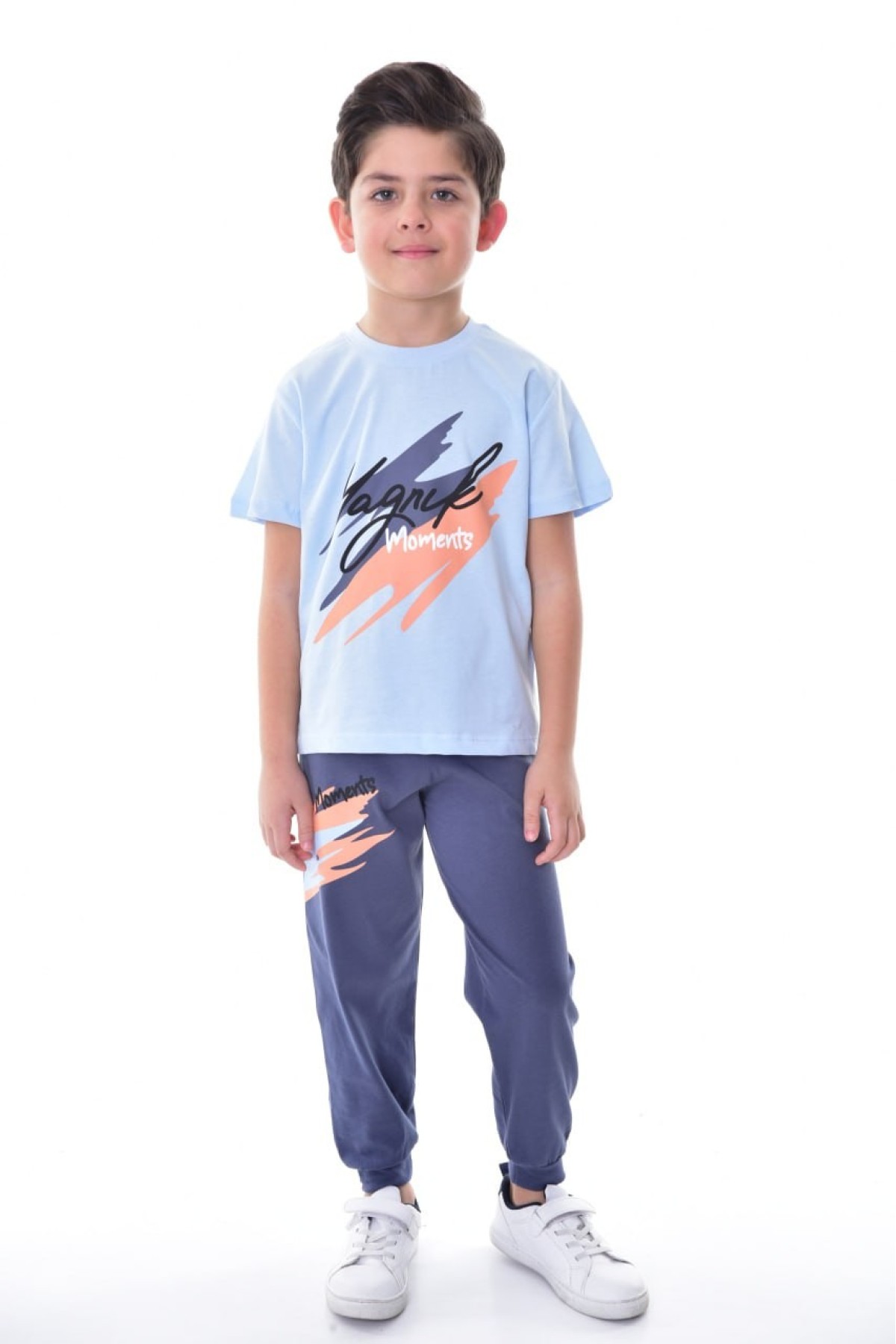 Erkek Çocuk Baskılı Kısa Kollu Pamuklu Tişört Ve Eşofman Altı İkili Takım