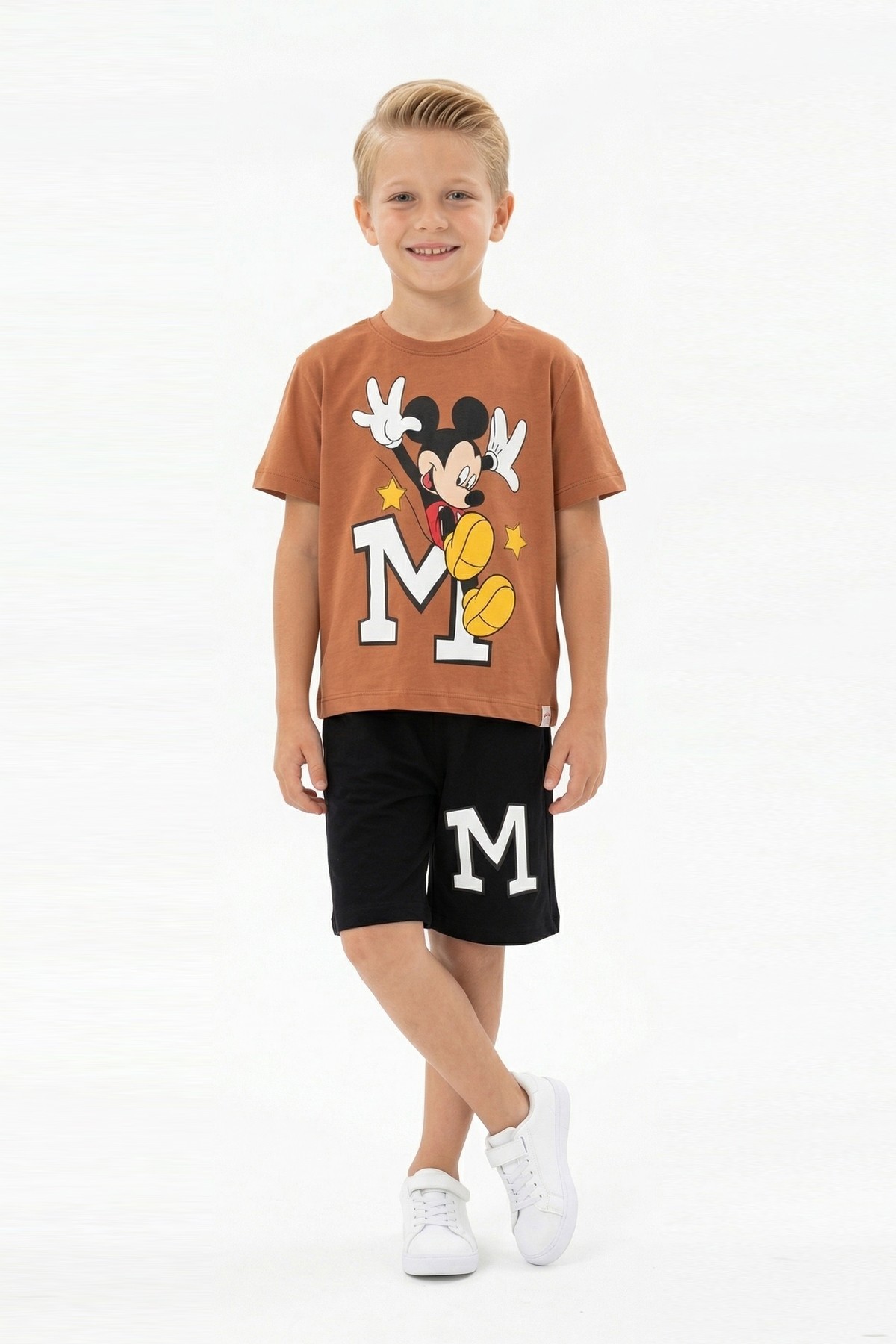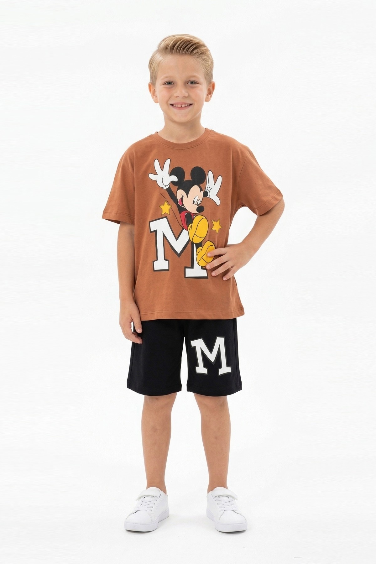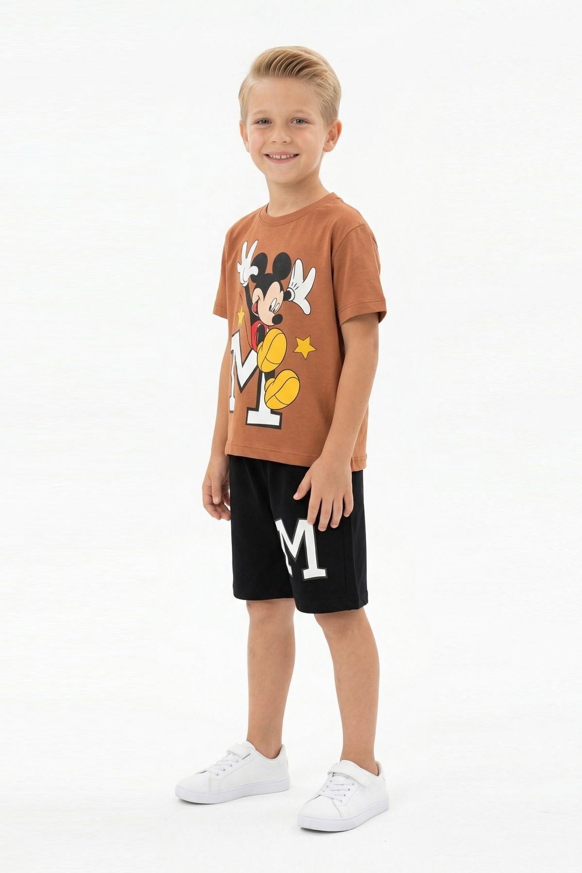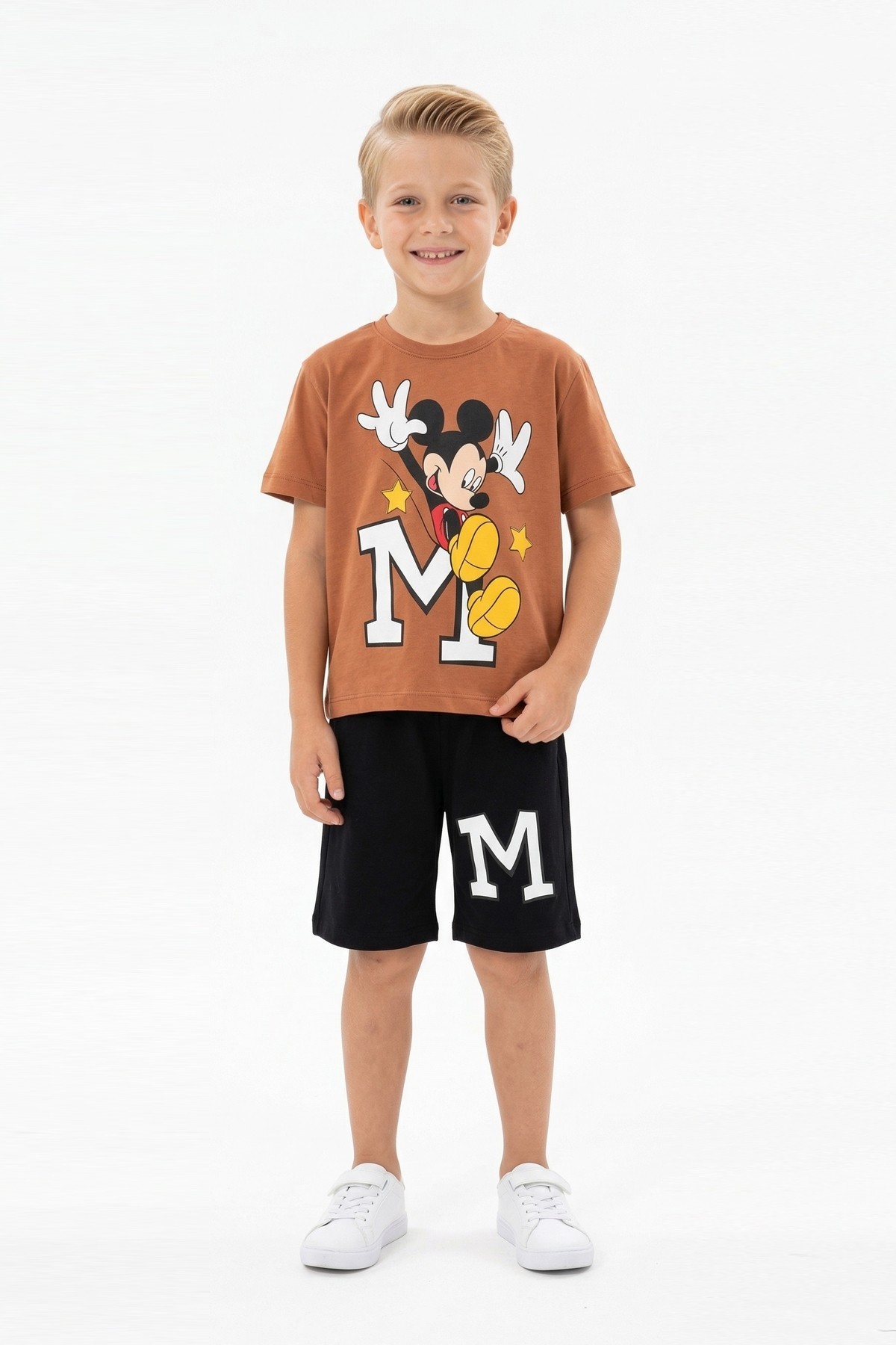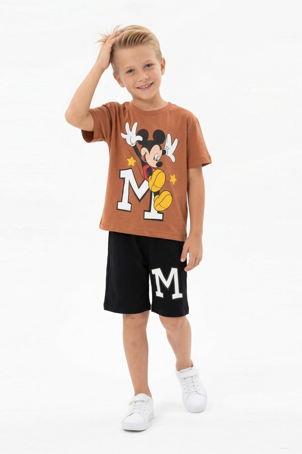 Erkek Çocuk Baskılı Kısa Kollu Pamuklu Tişört Ve Şort İkili Yazlık Takım