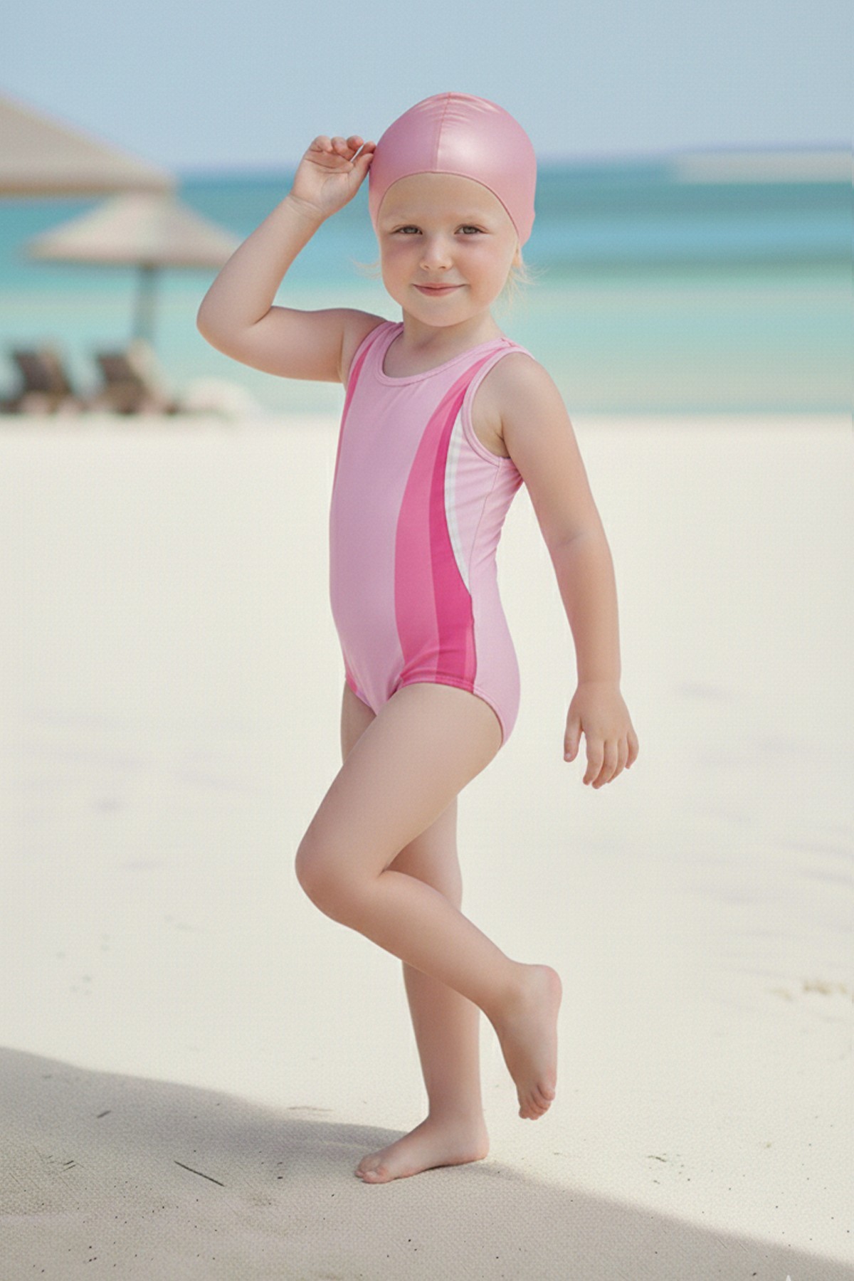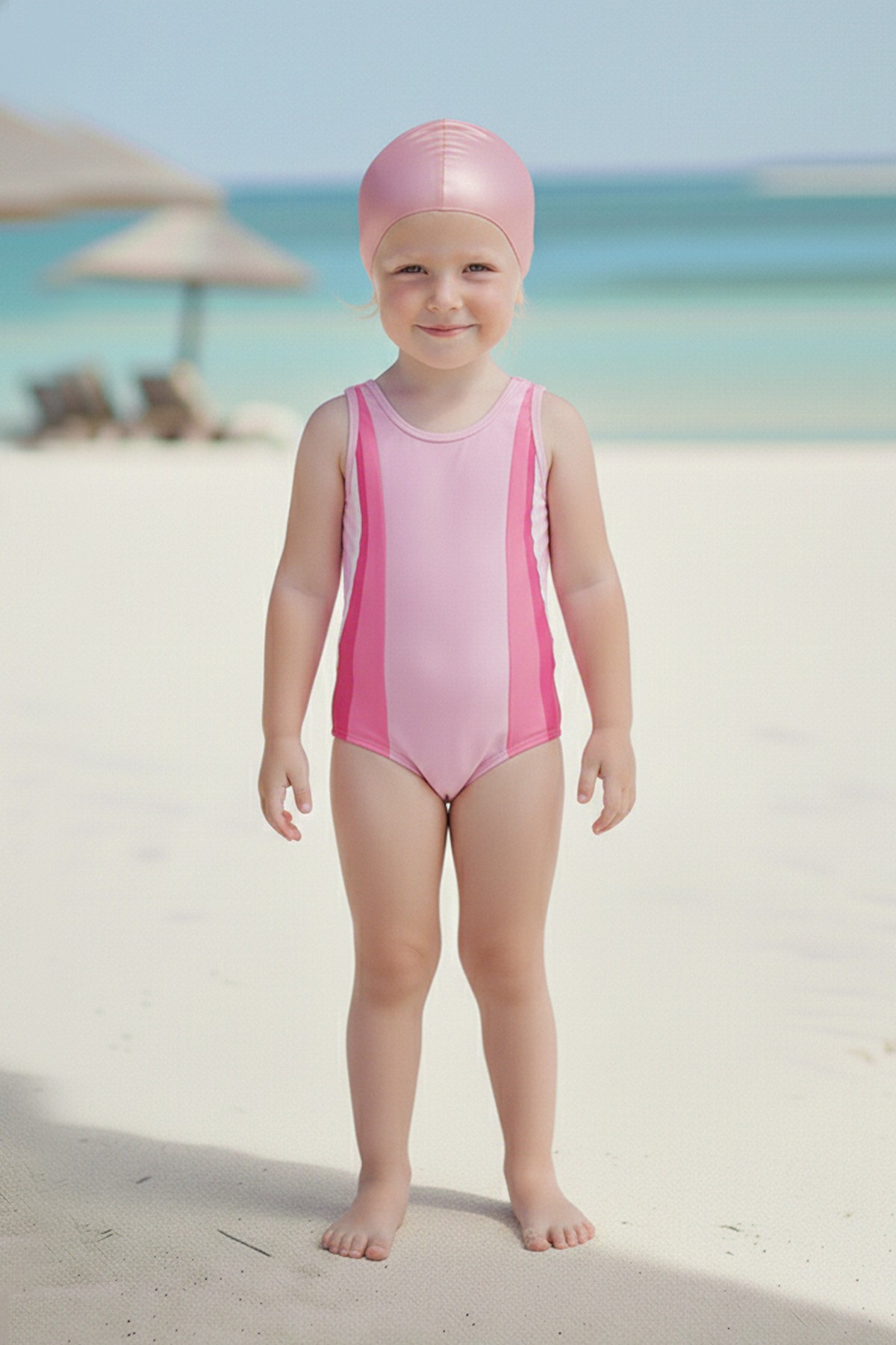 Kız Çocuk Polyester + Elastan Renk Geçişli Bone Hediyeli Yarım Şortlu Profesyonel Yüzücü Mayosu