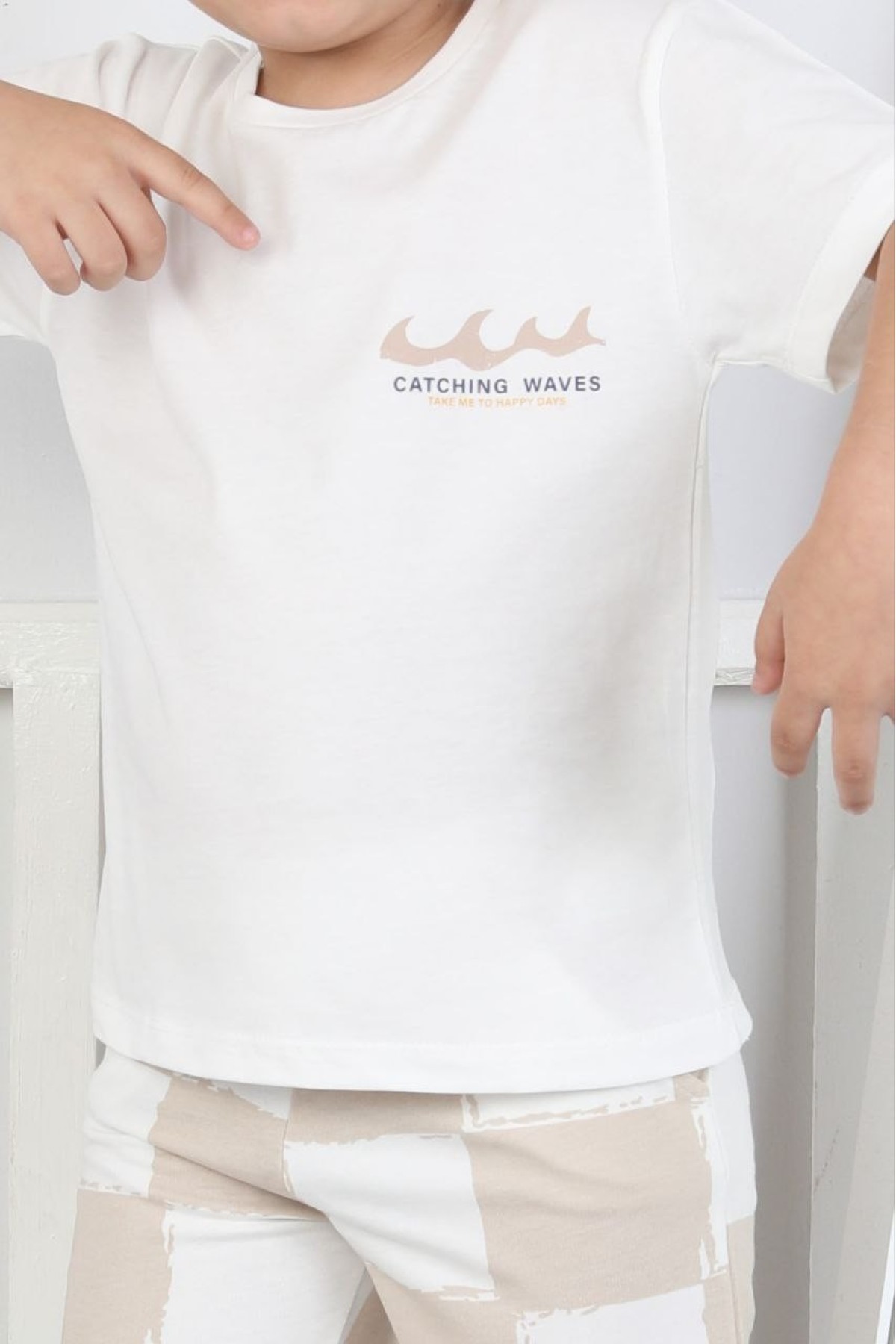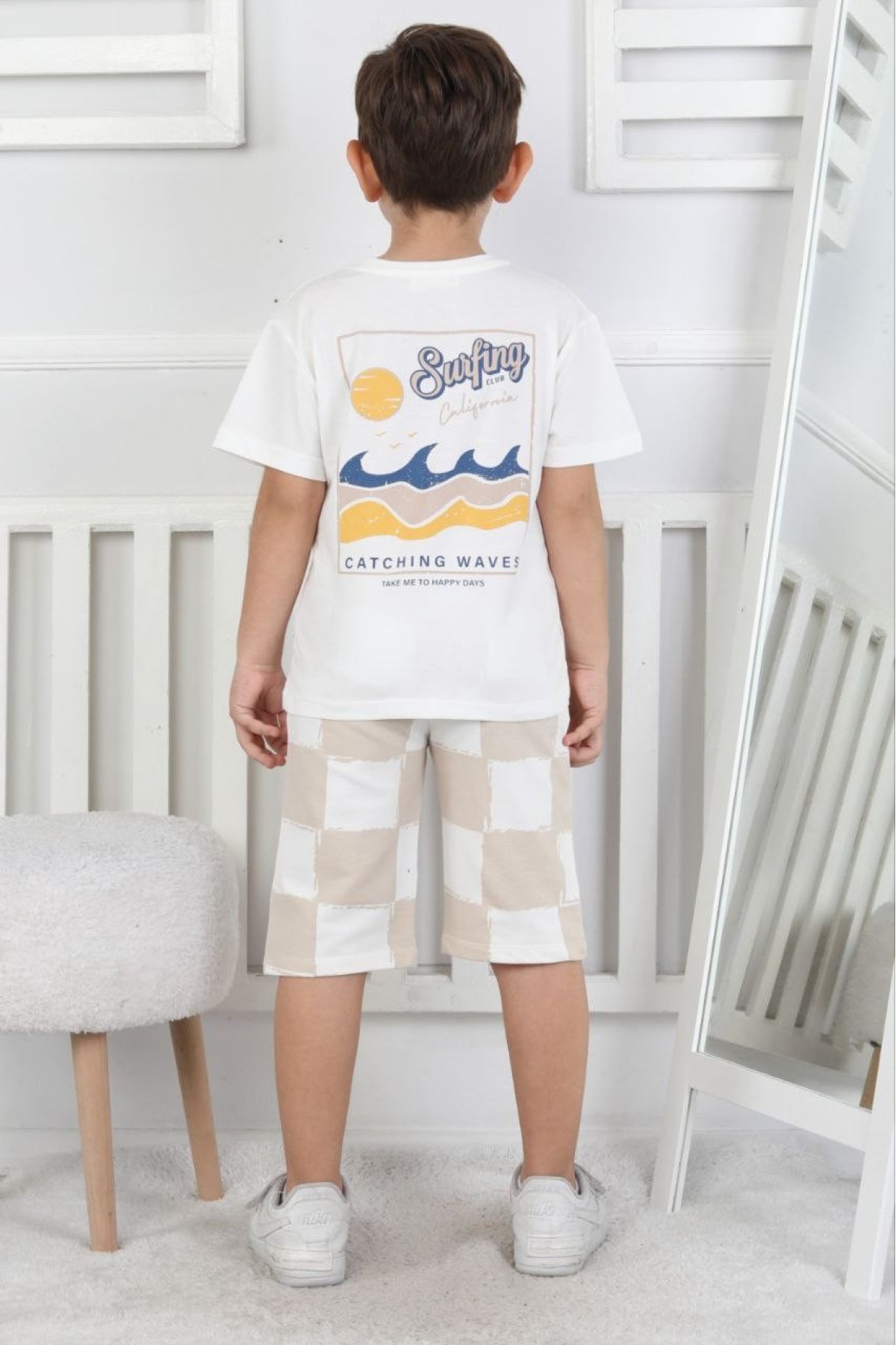 Erkek Çocuk Arkası Baskılı %100 Pamuk Reaktif Boyama Kareli Şortlu Takım