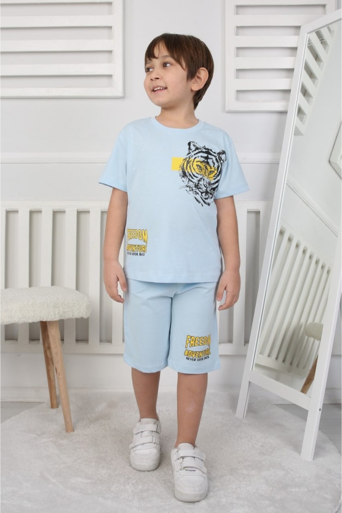 Erkek Çocuk Baskılı %100 Pamuk Süprem Kumaş Reaktif Boyama Şortlu Takım