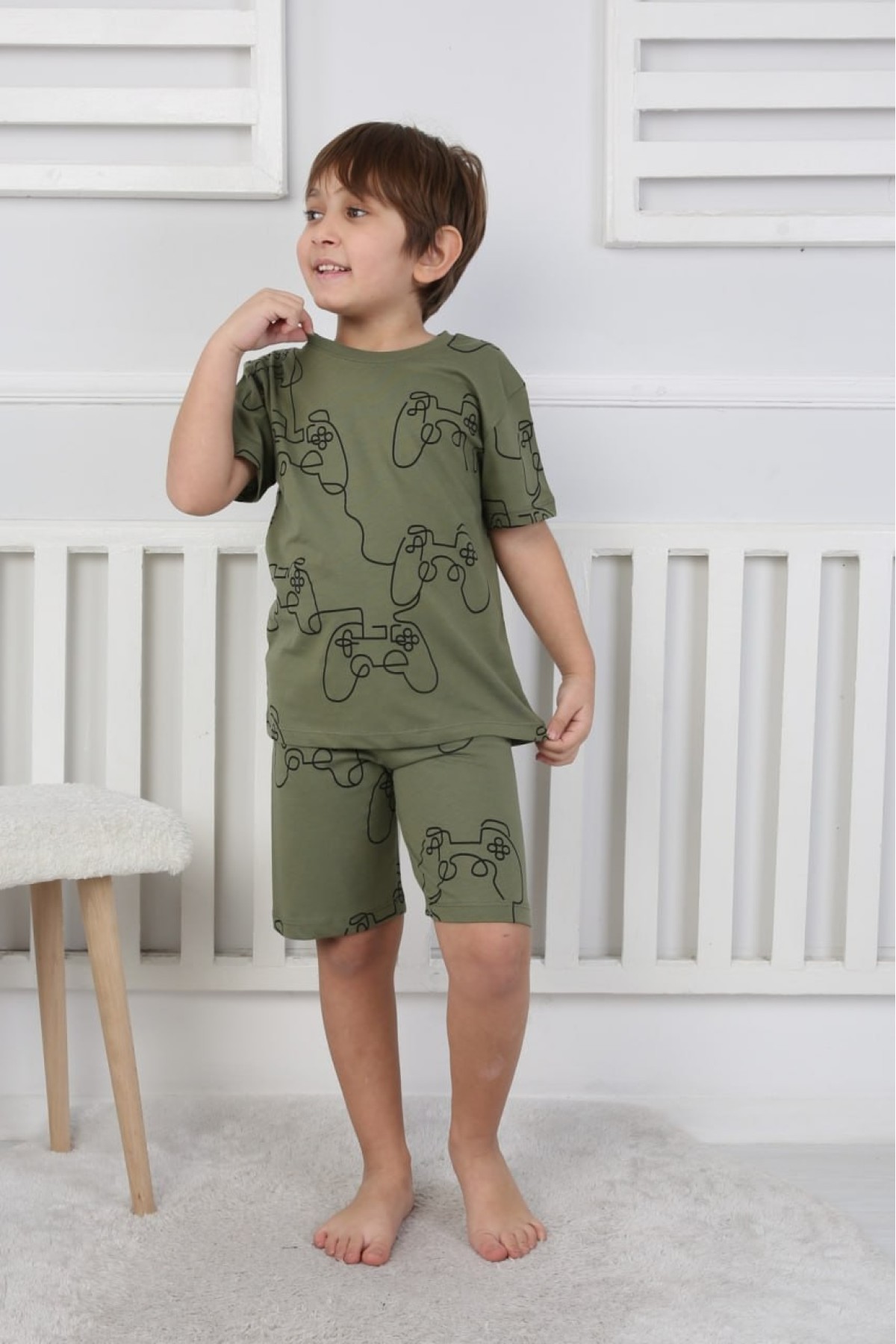 Erkek Çocuk Oyun Konsolu ve Joystick Baskılı %100 Pamuk Reaktif Boyama Süprem Pijama Takımı