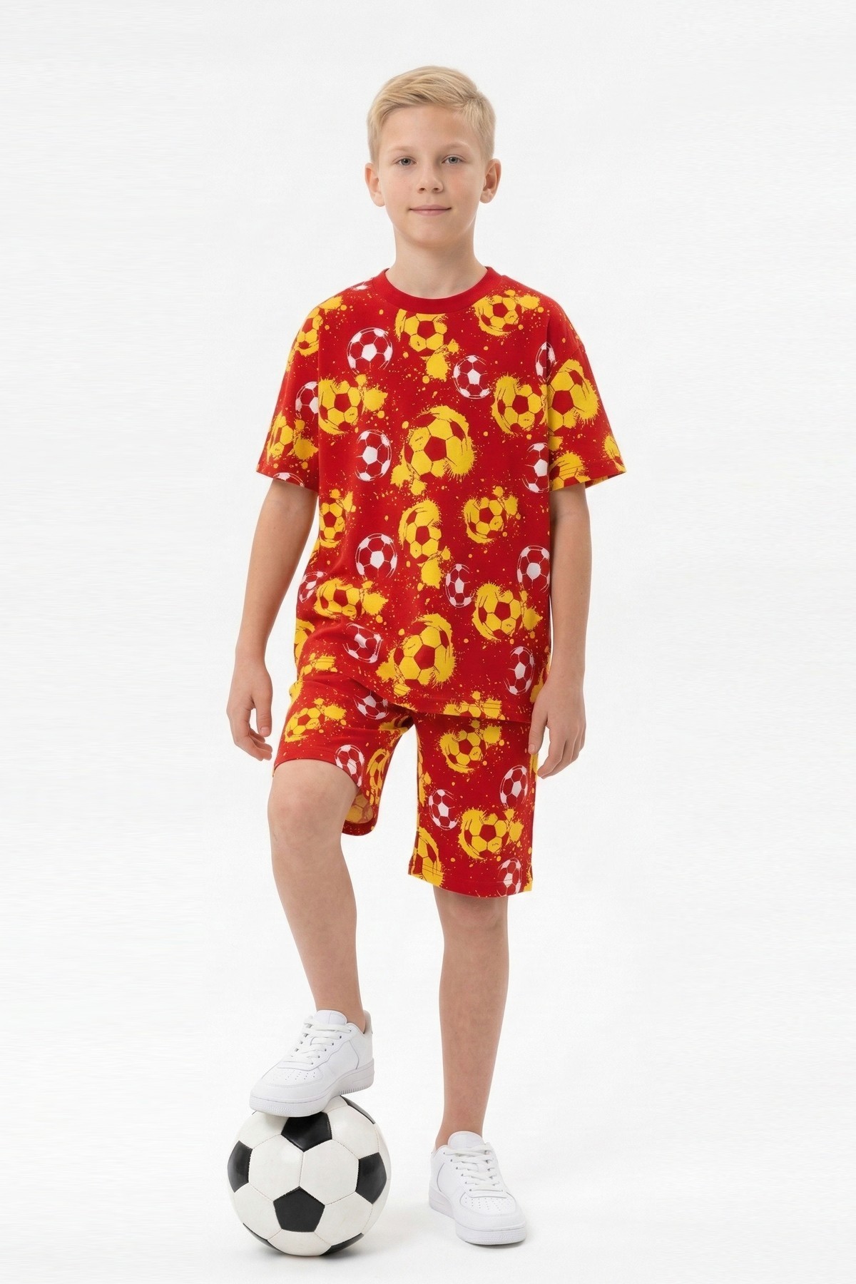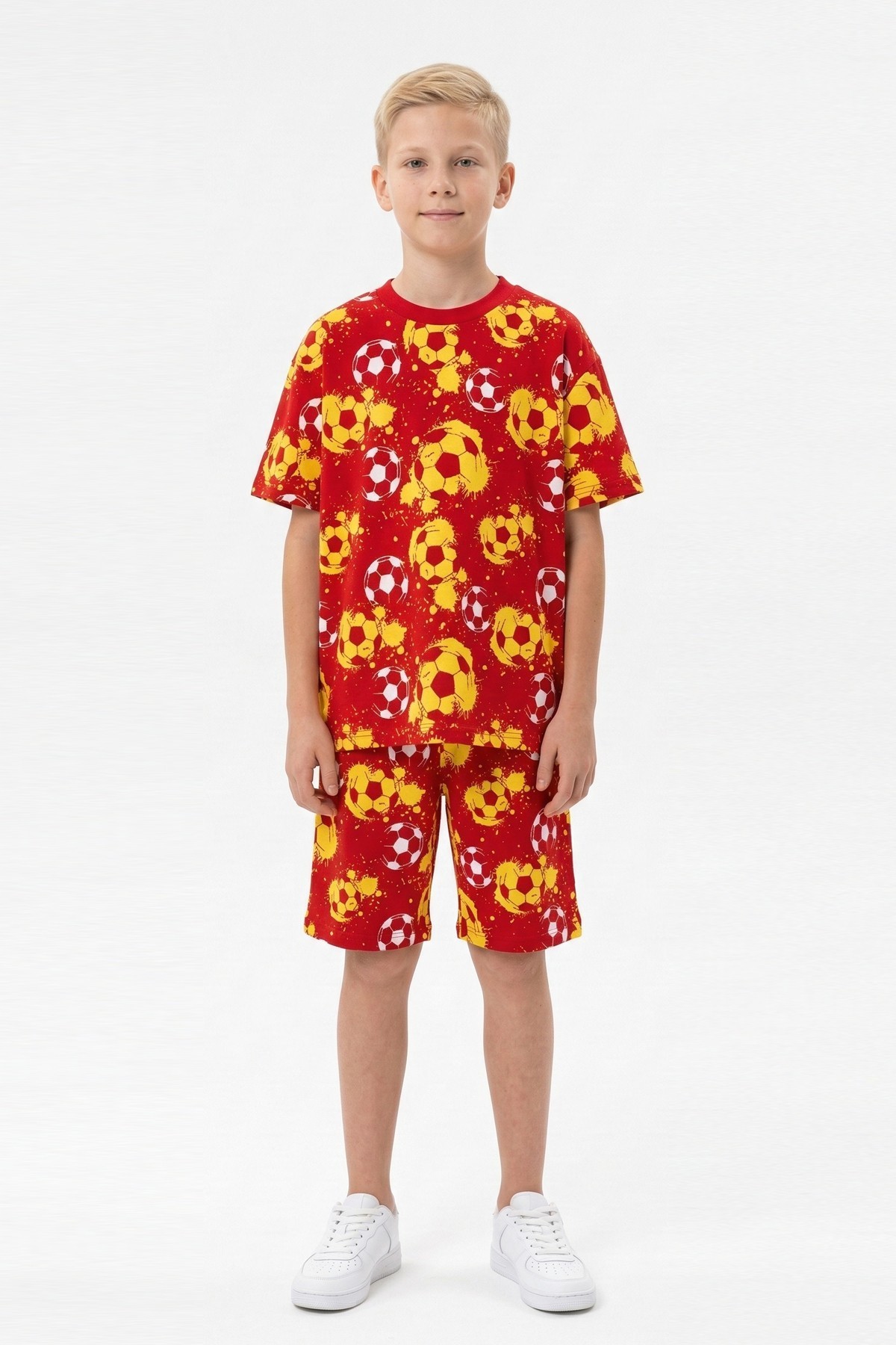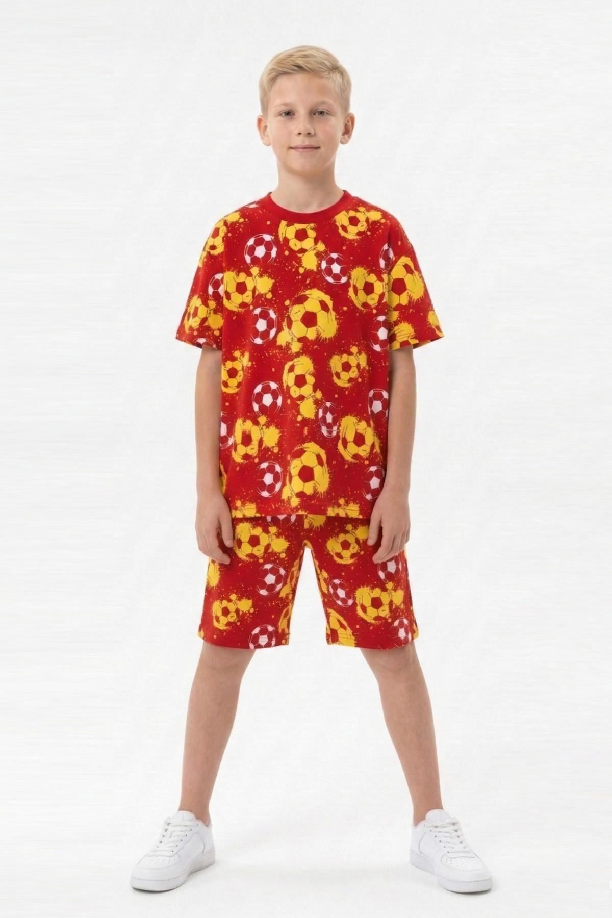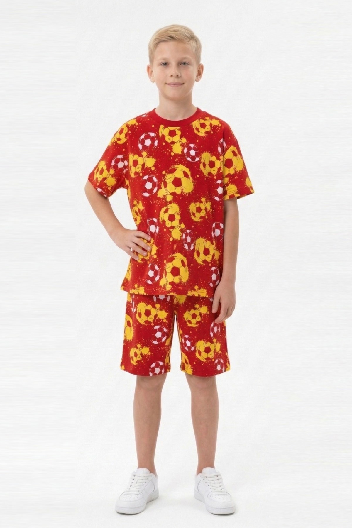 Garson Erkek Çocuk Taraftar Futbol Topu Desenli Kısa Kollu Şortlu Takım