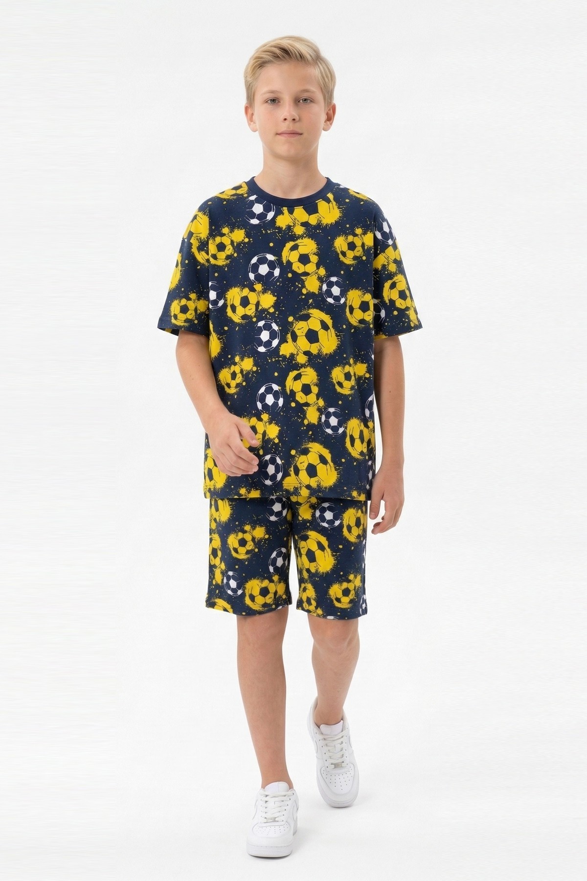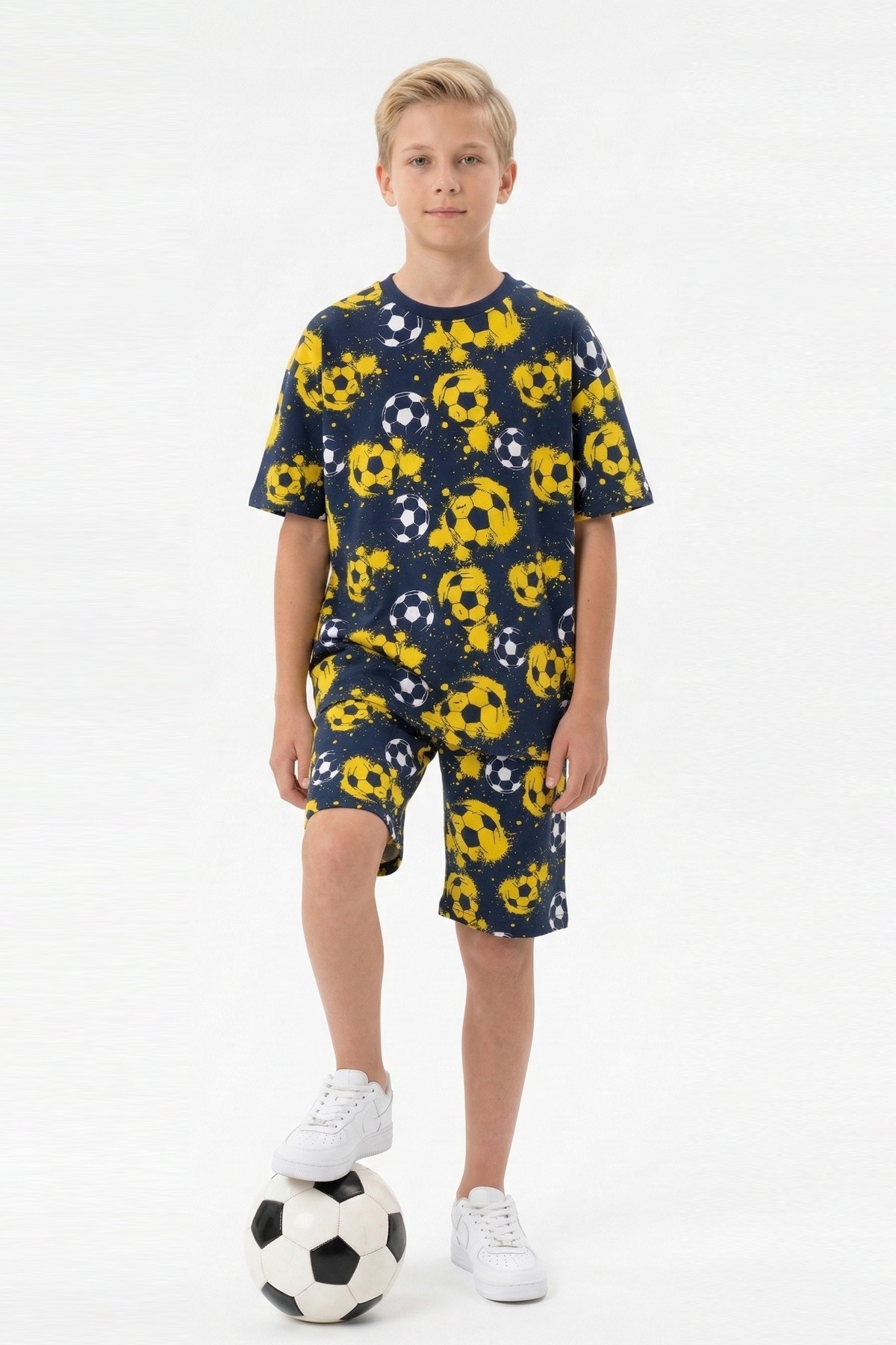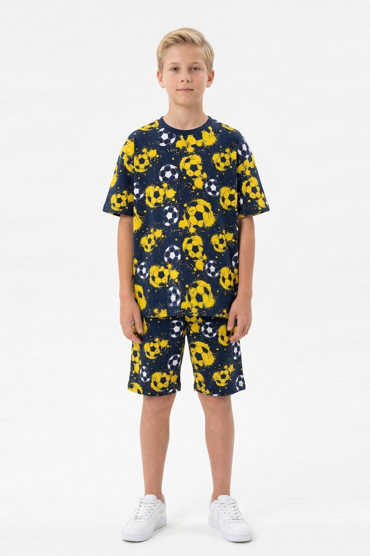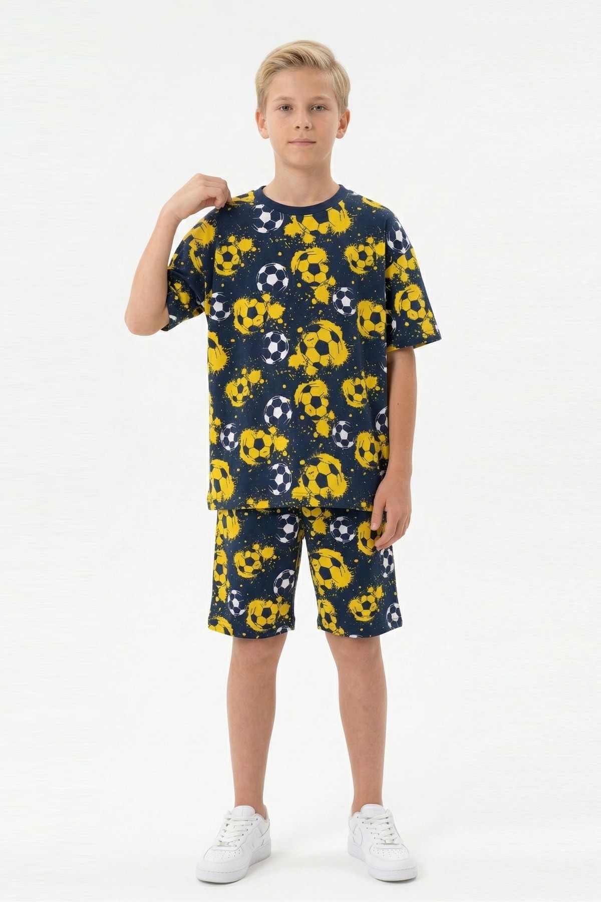 Garson Erkek Çocuk Taraftar Futbol Topu Desenli Kısa Kollu Şortlu Takım