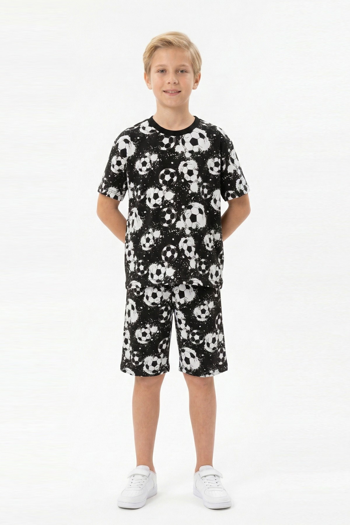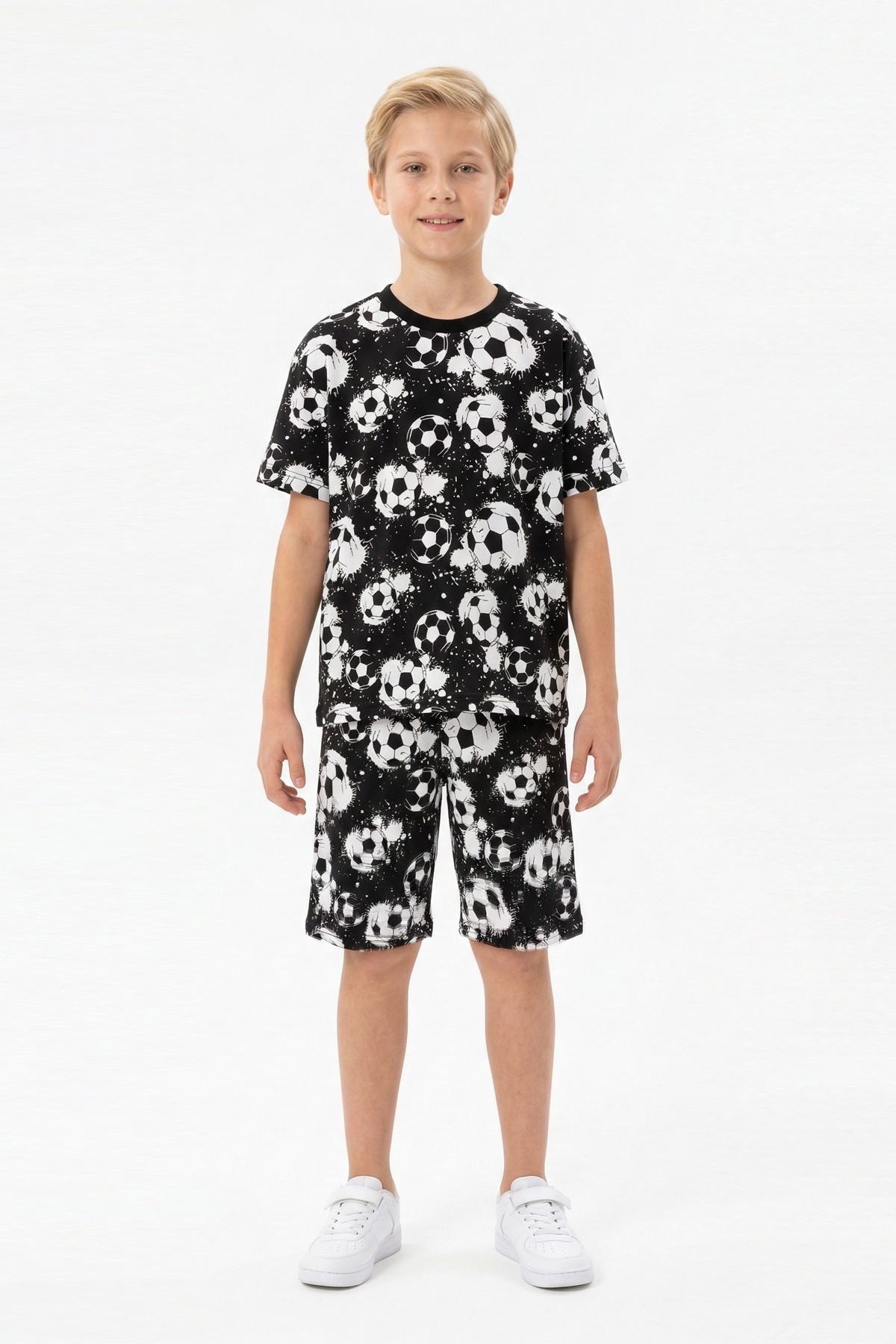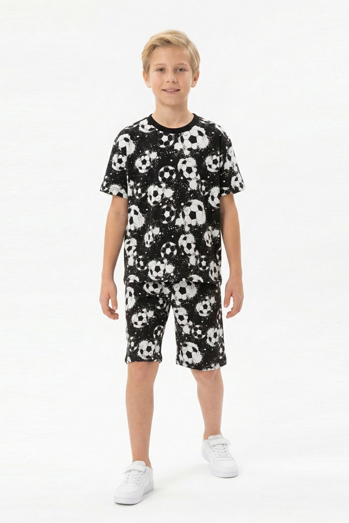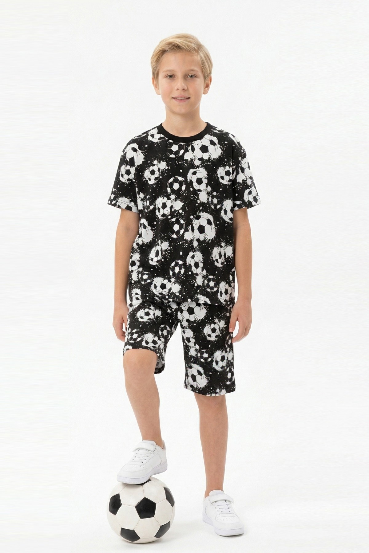 Garson Erkek Çocuk Taraftar Futbol Topu Desenli Kısa Kollu Şortlu Takım