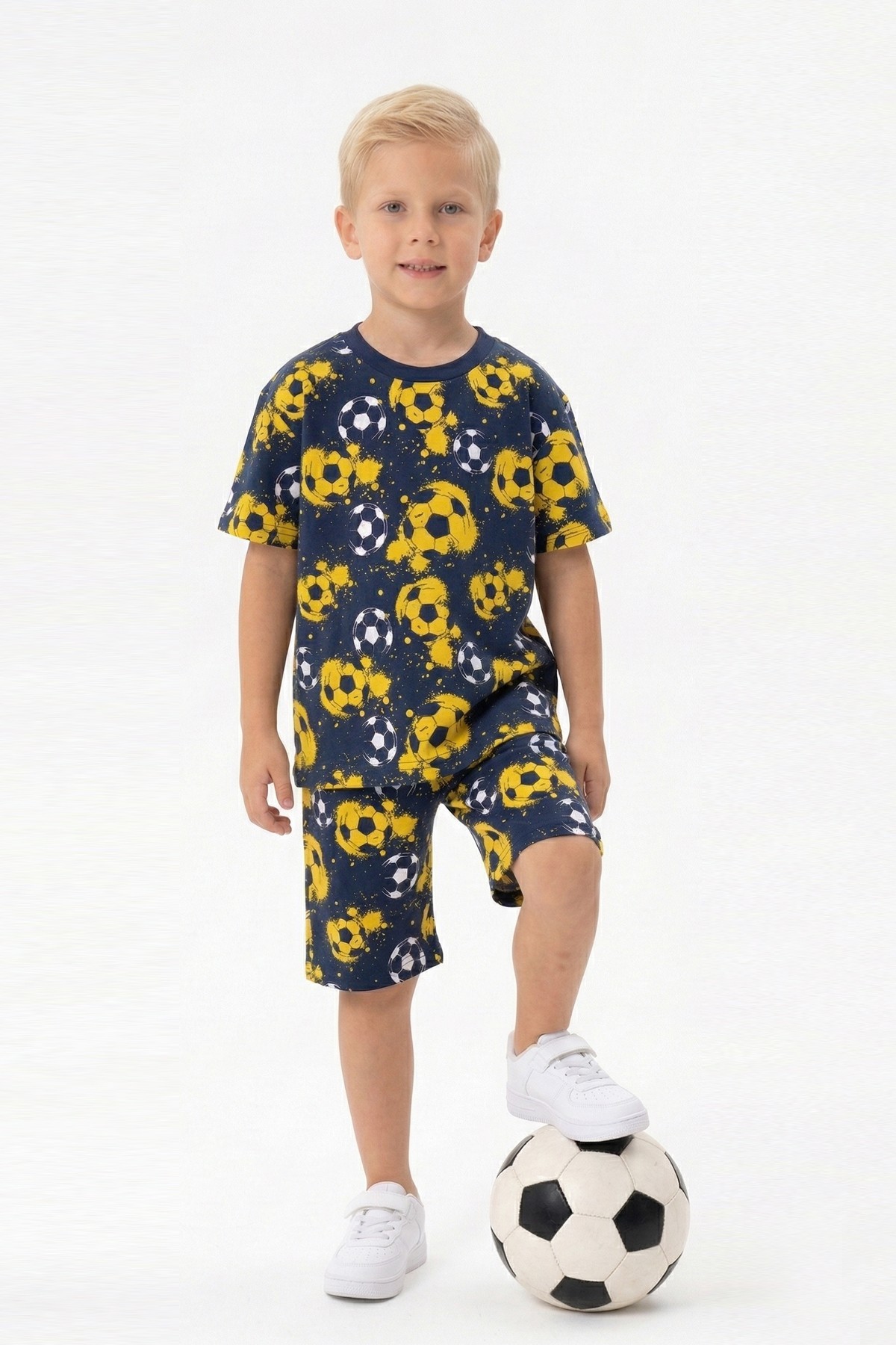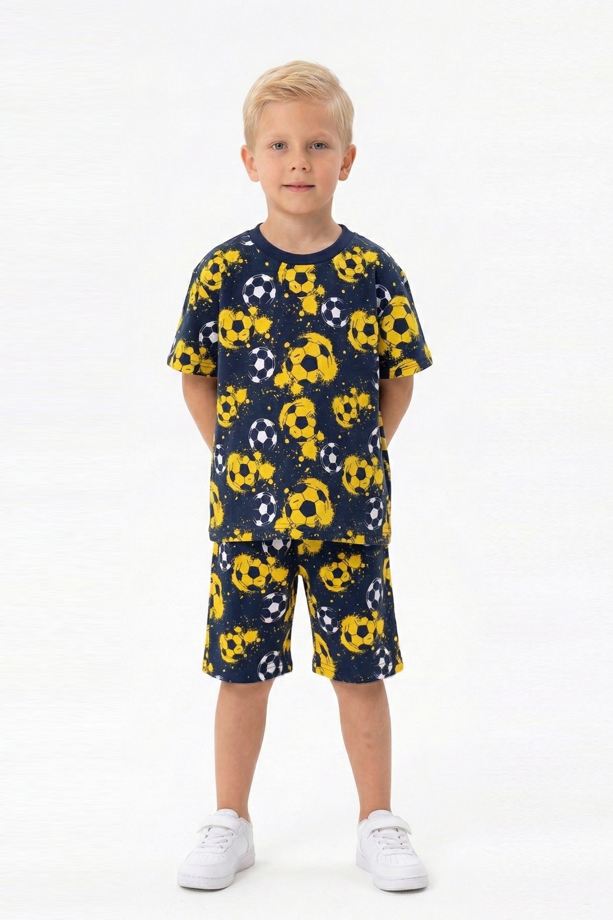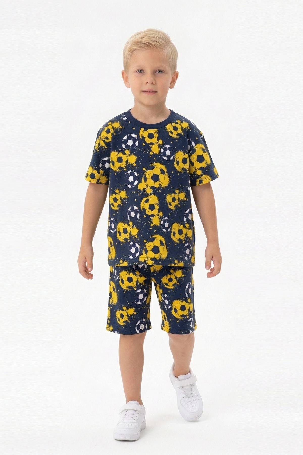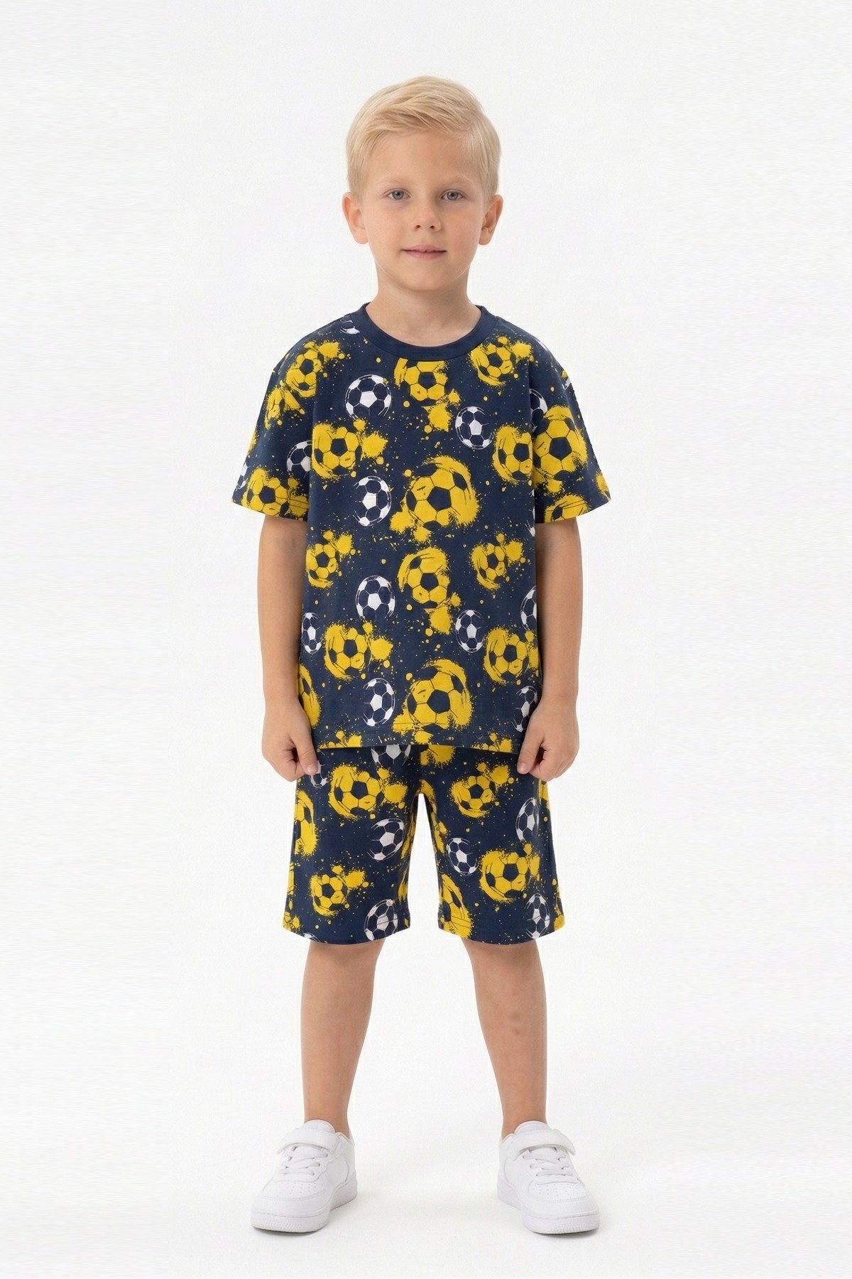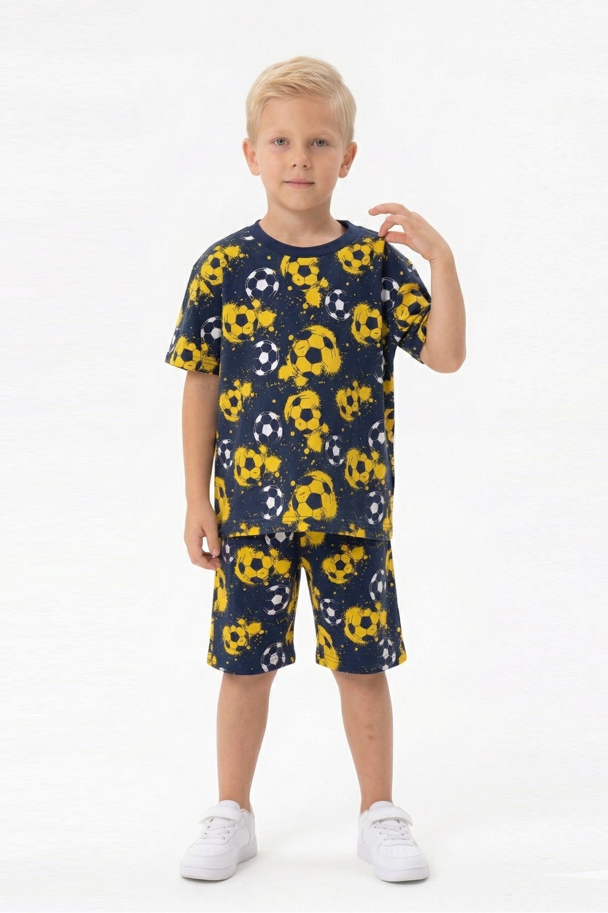 Erkek Çocuk Taraftar Futbol Topu Desenli Kısa Kollu Şortlu Takım