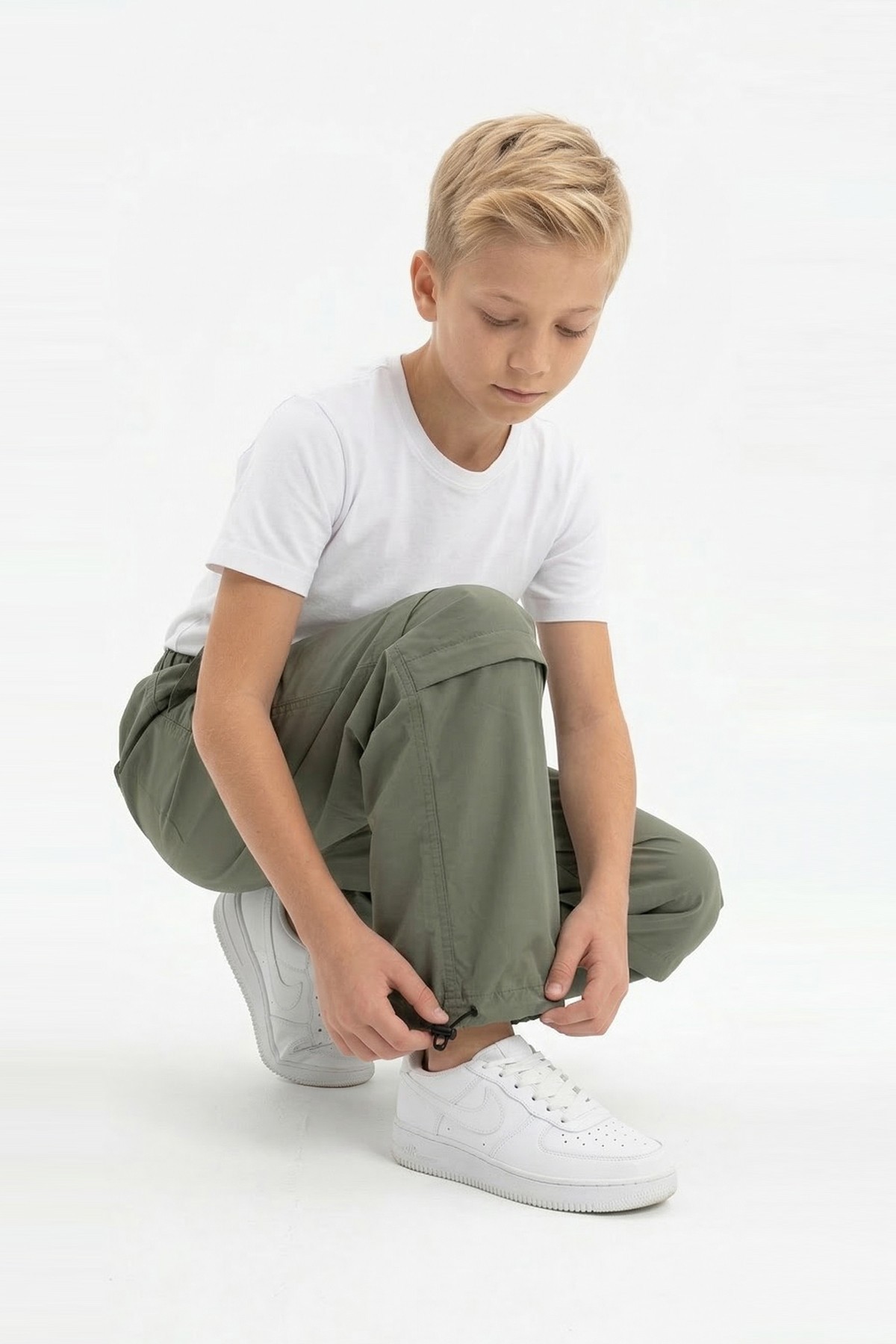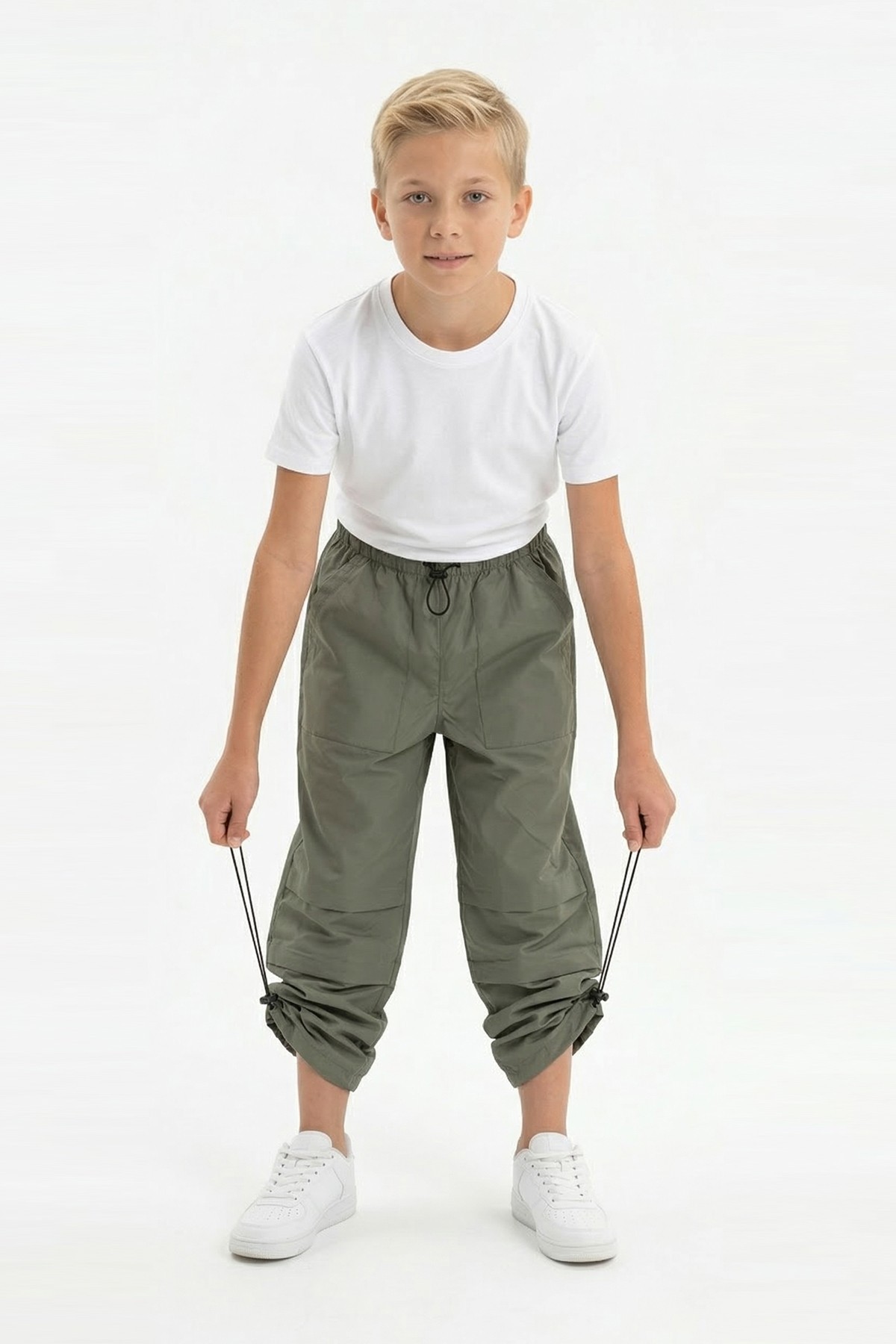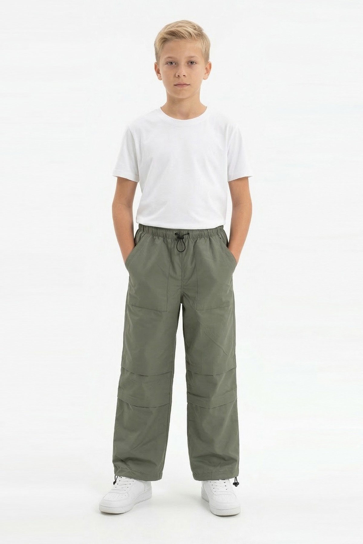 Garson Erkek Çocuk Beli ve Paçası Ayarlanabilir Lastikli Cepli Relax Kalıp Paraşüt Kumaş Pantolon