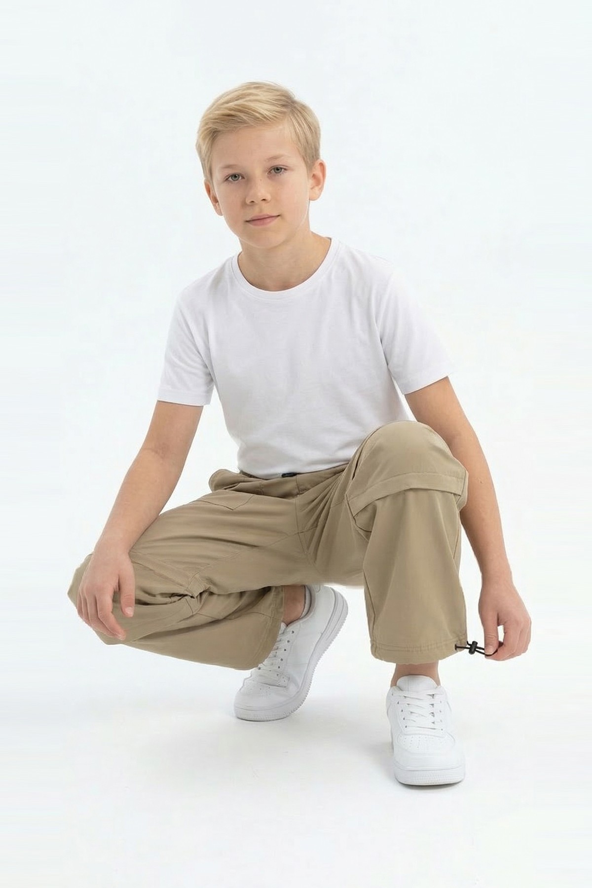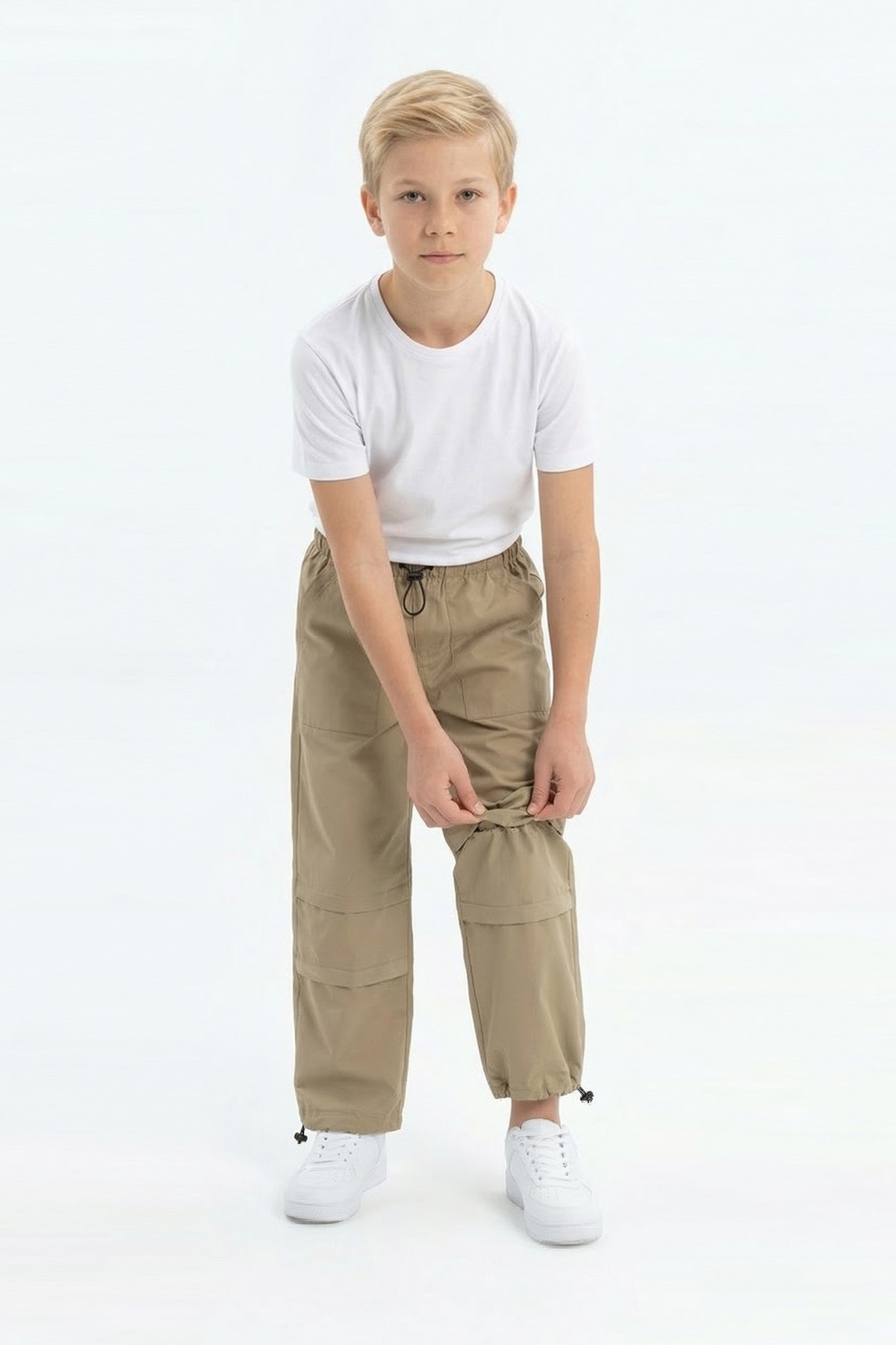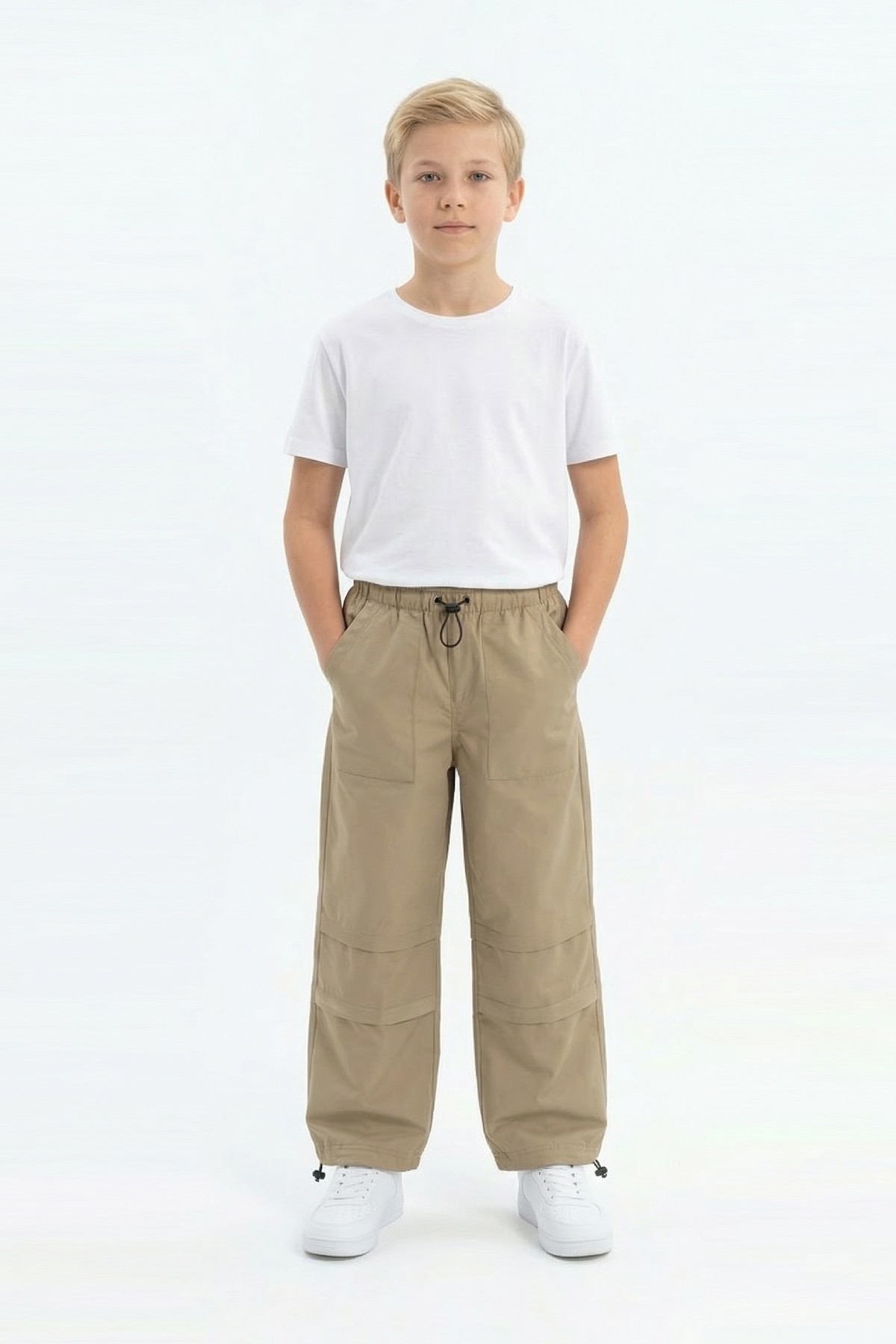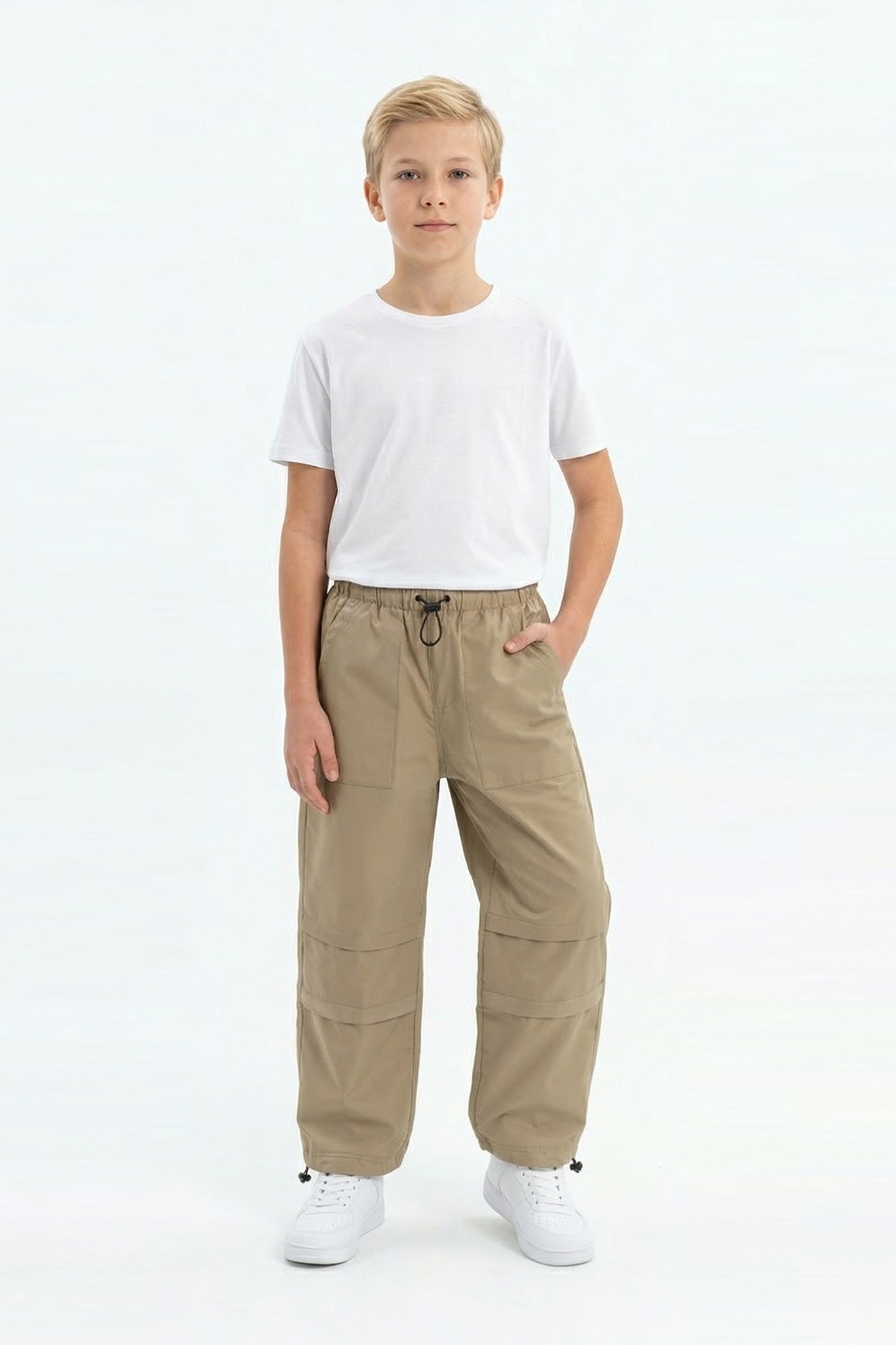 Garson Erkek Çocuk Beli ve Paçası Ayarlanabilir Lastikli Cepli Relax Kalıp Paraşüt Kumaş Pantolon
