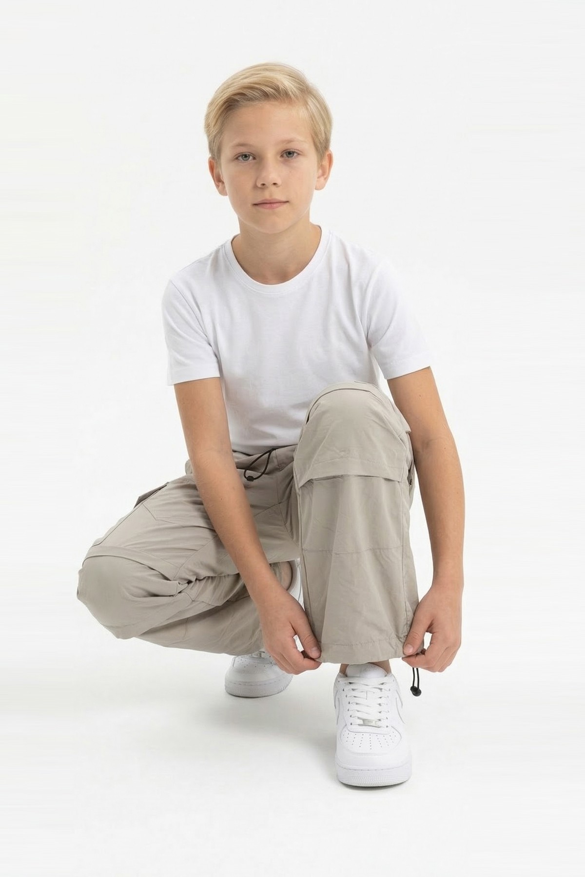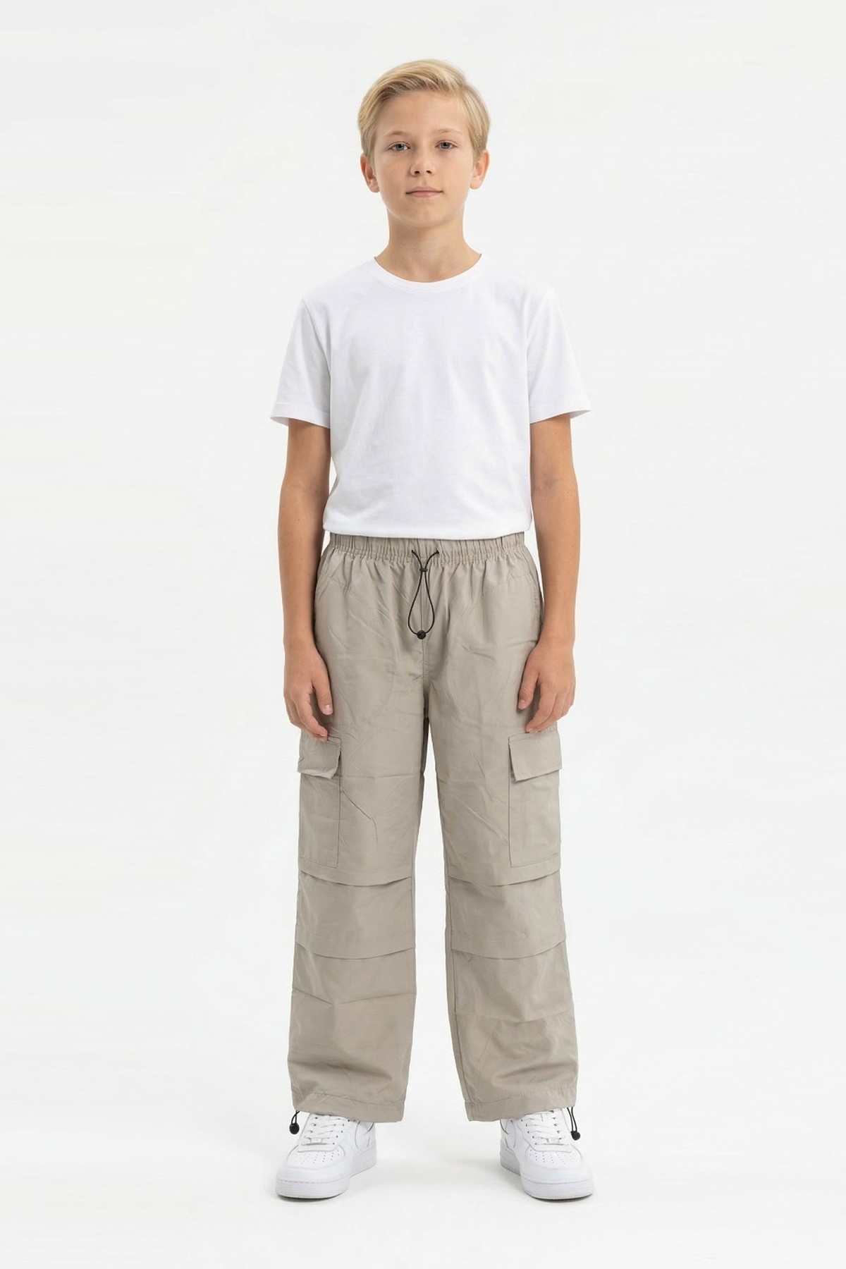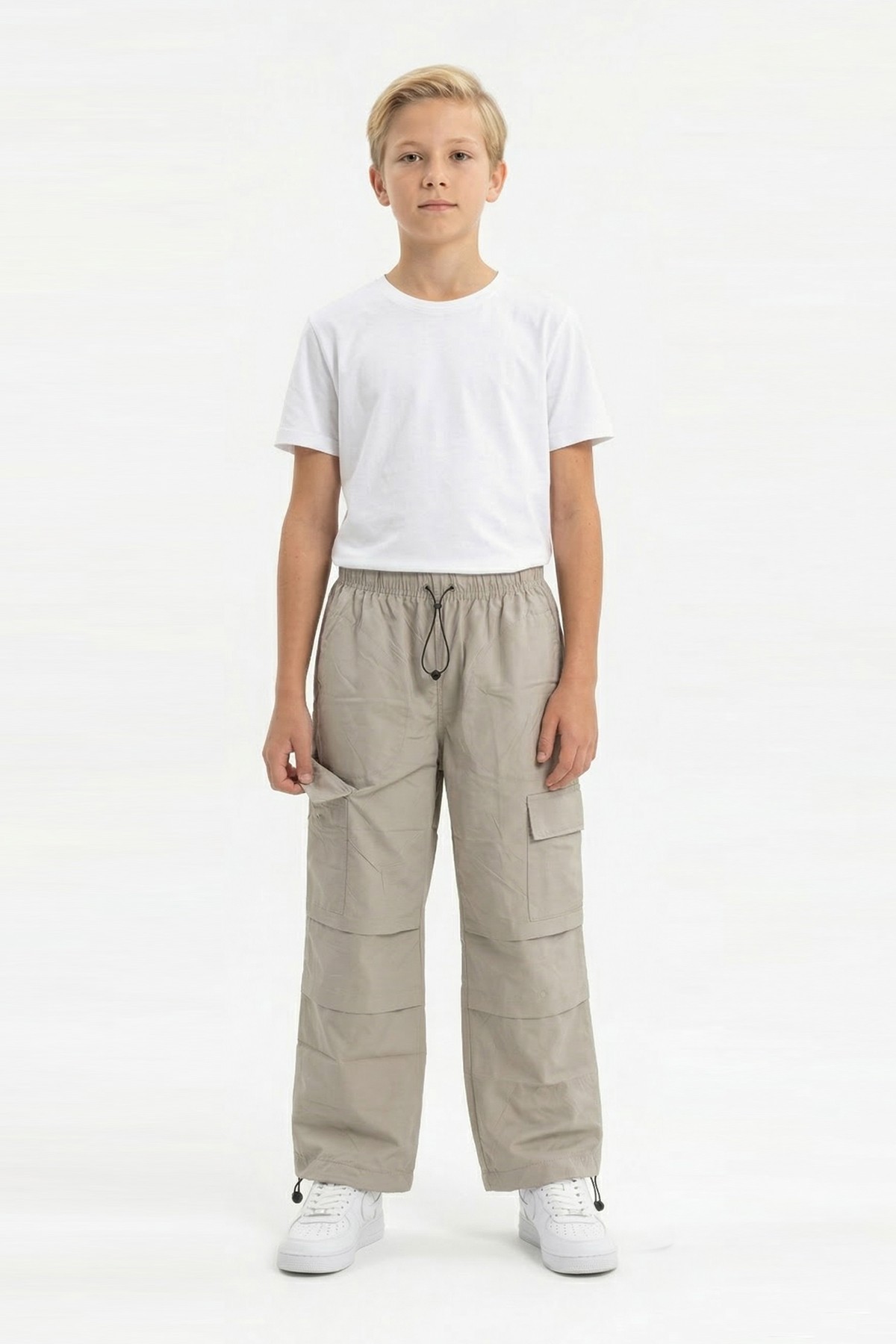 Garson Erkek Çocuk Beli ve Paçası Ayarlanabilir Lastikli Kargo Cepli Relax Kalıp Paraşüt Kumaş Pantolon