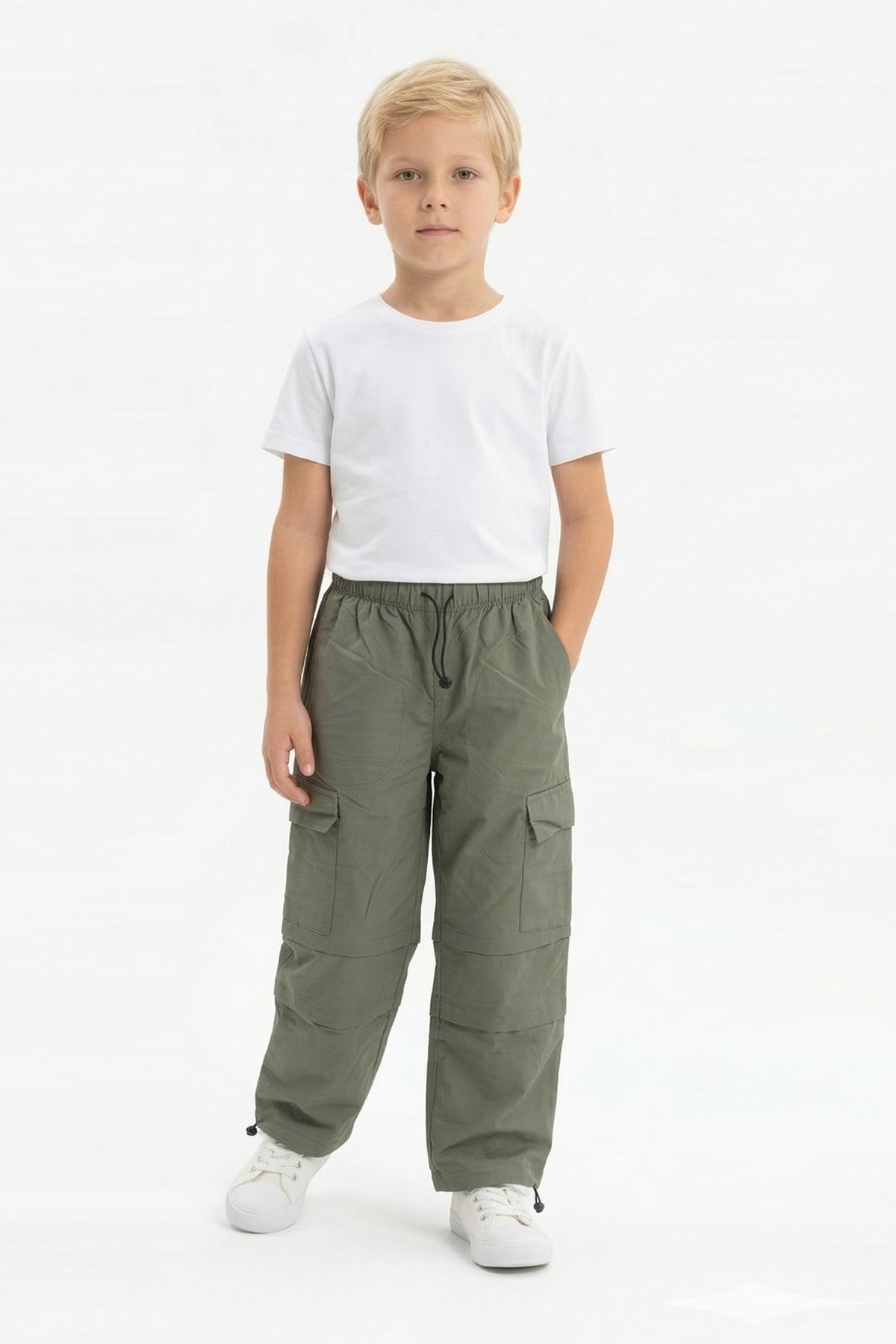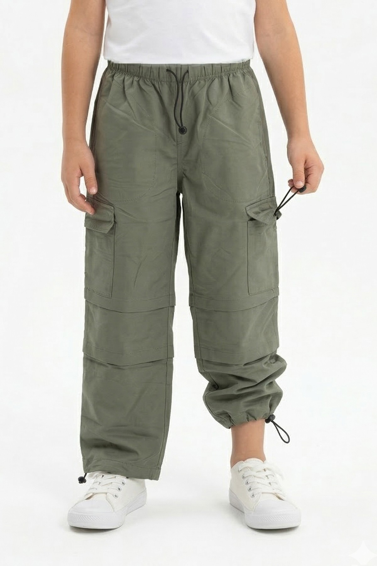Erkek Çocuk Beli ve Paçası Ayarlanabilir Lastikli Kargo Cepli Relax Kalıp Paraşüt Kumaş Pantolon