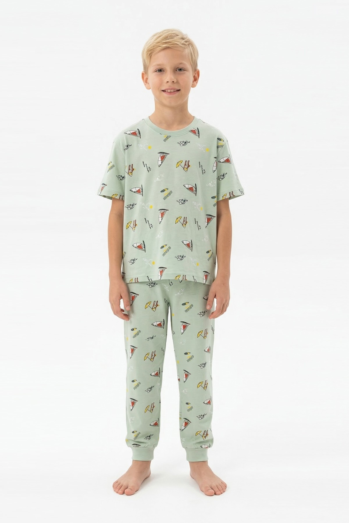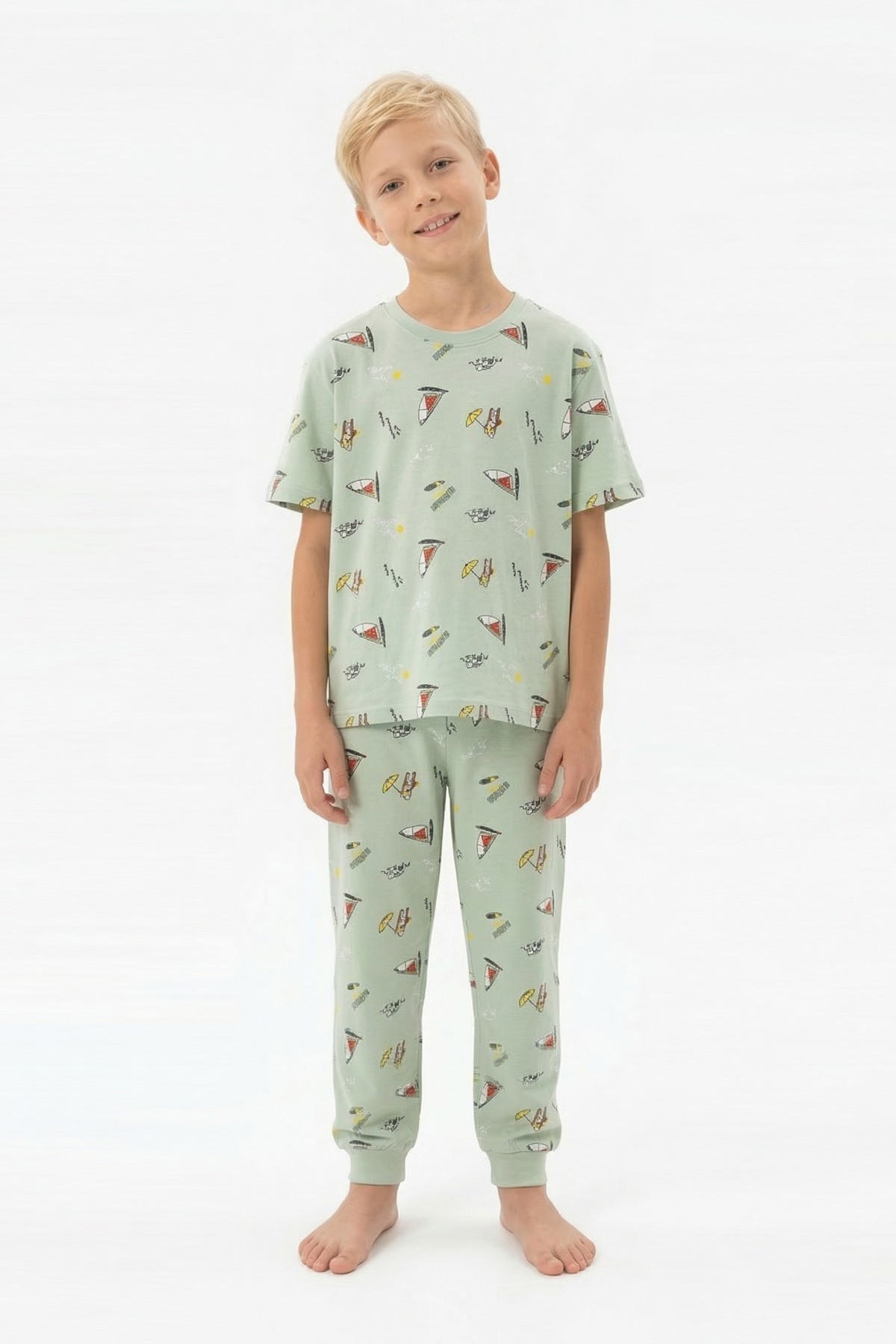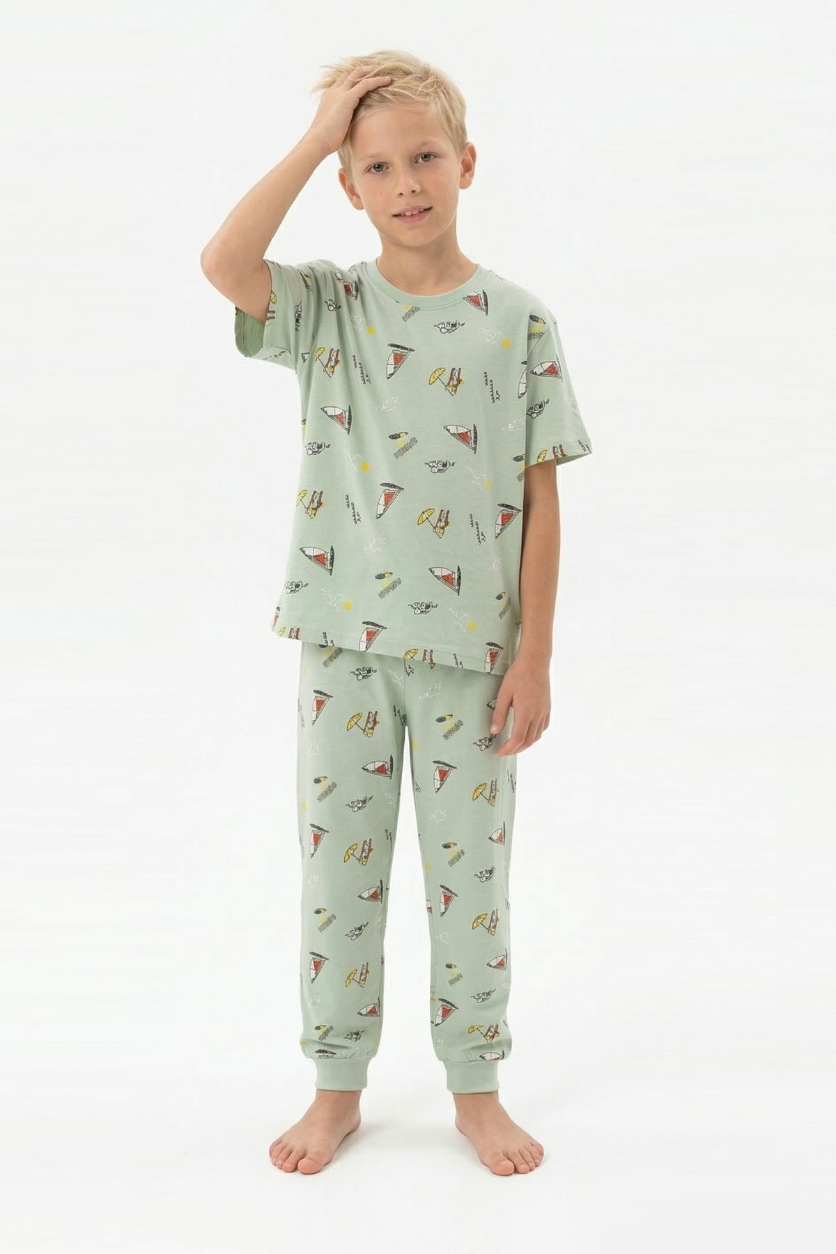 Garson Erkek Çocuk Yelkenli Desenli %100 Pamuk Reaktif Boyalı Süprem Kumaş Kısa Kollu Pijama Takımı