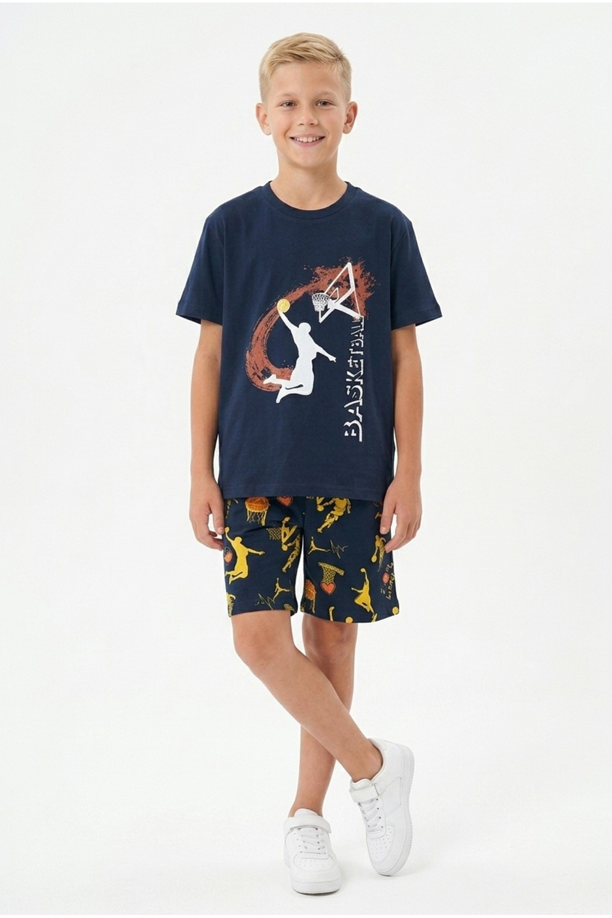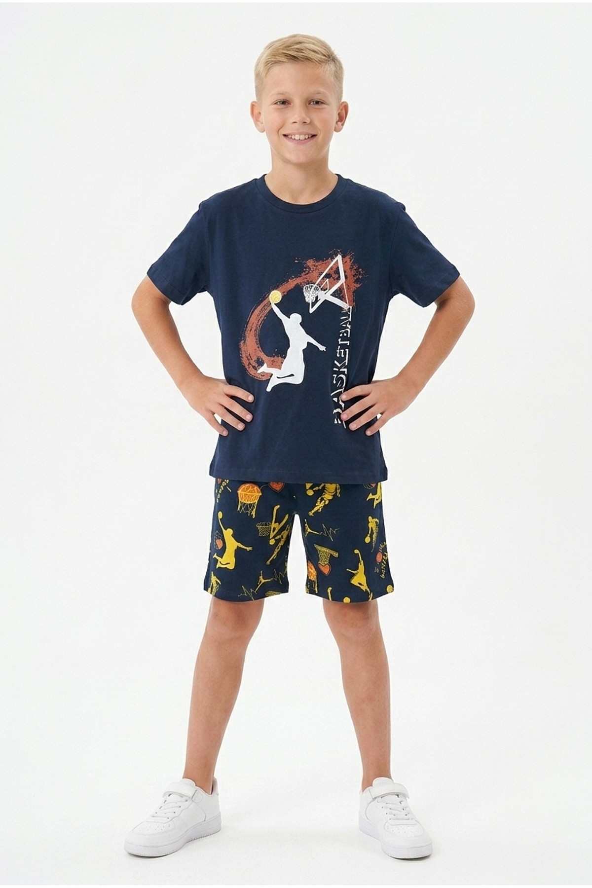 Garson Erkek Çocuk Basketbol Baskılı Kısa Kollu Süprem Kumaş Şortlu Takım