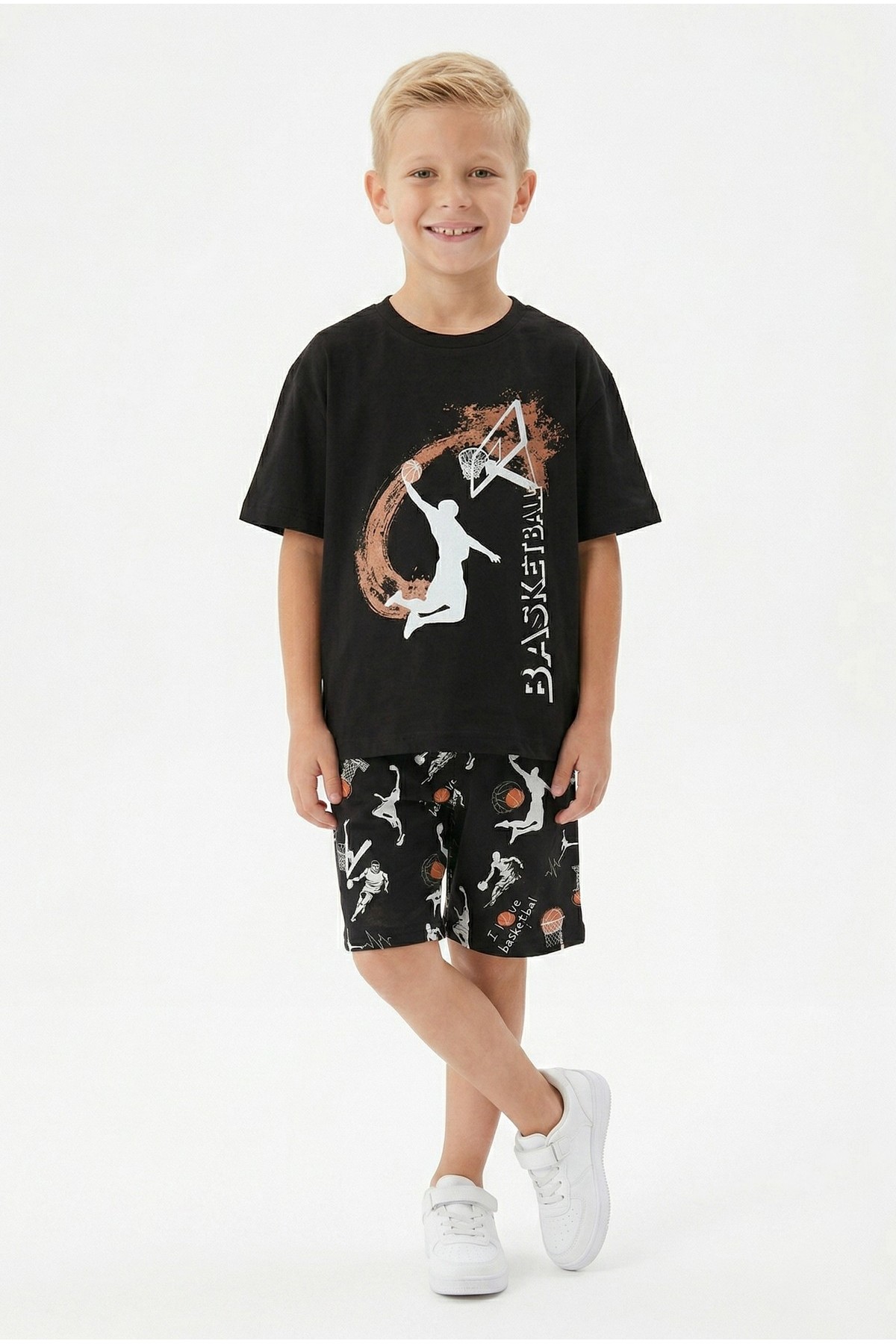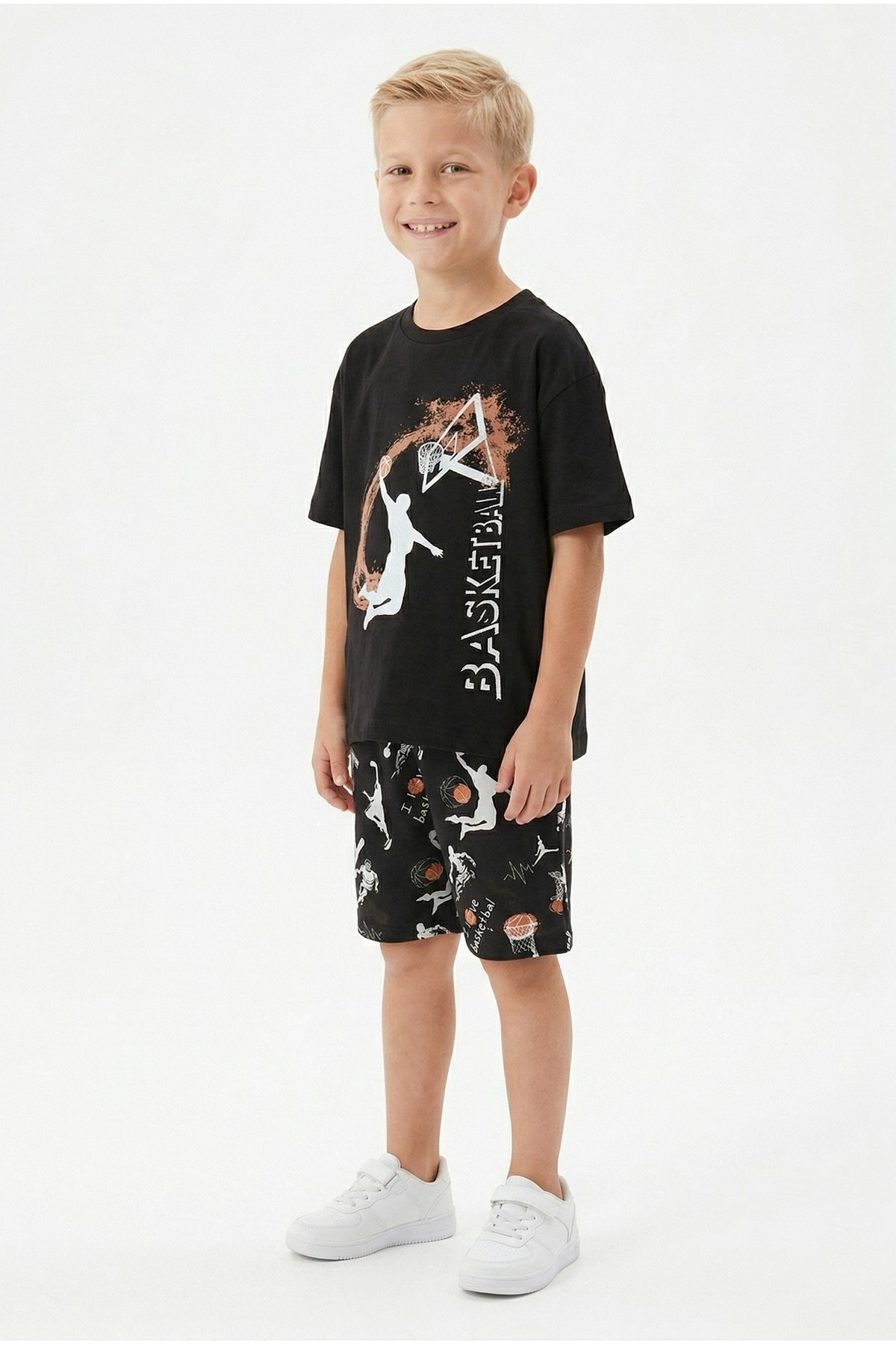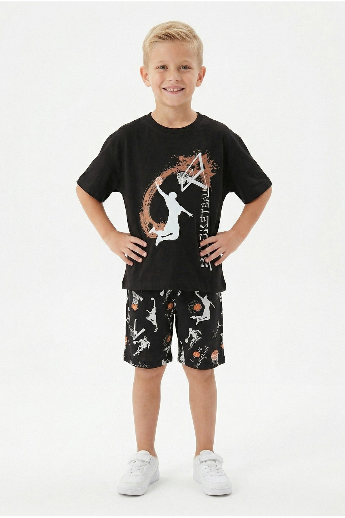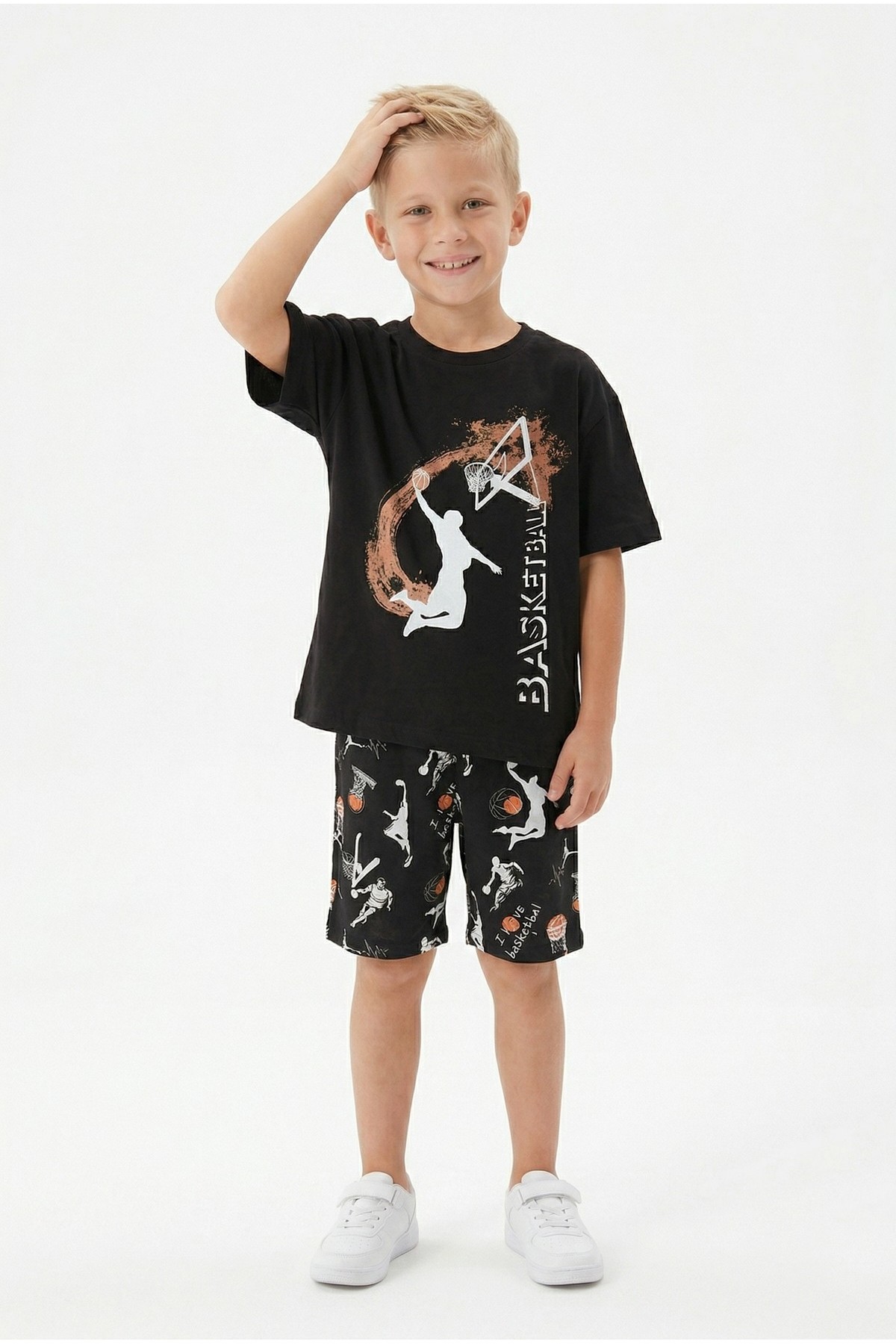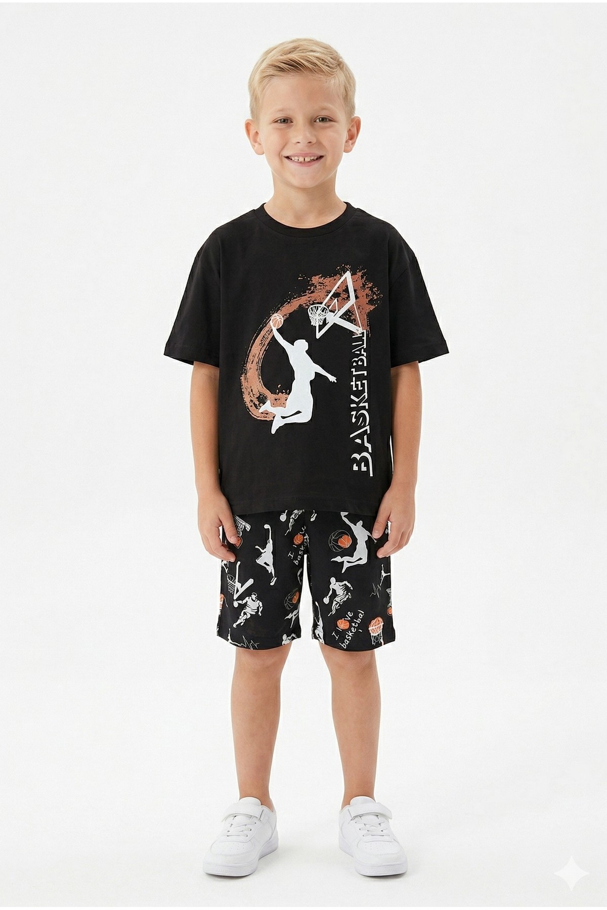 Erkek Çocuk Basketbol Baskılı Kısa Kollu Süprem Kumaş Şortlu Takım