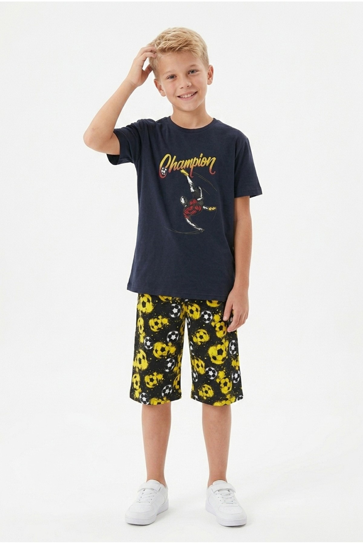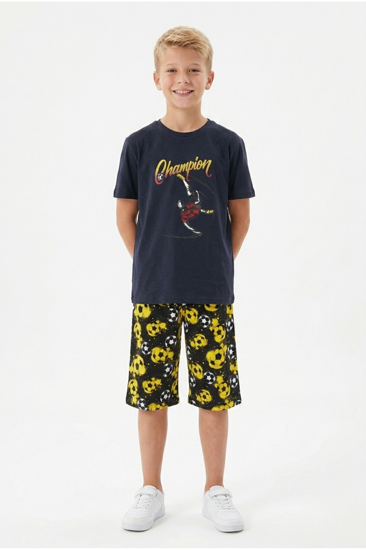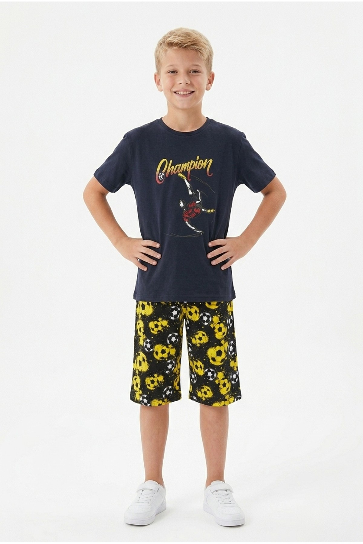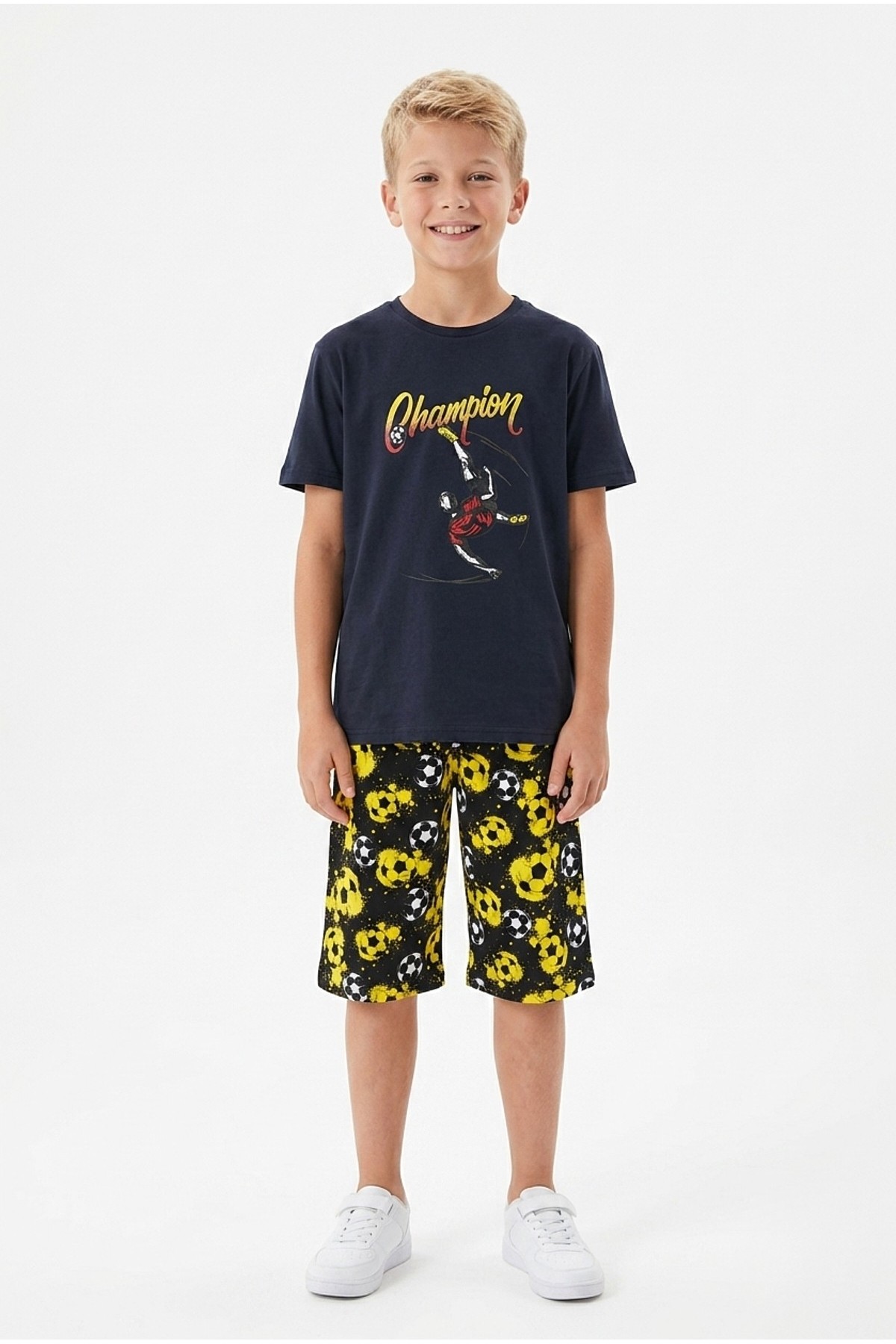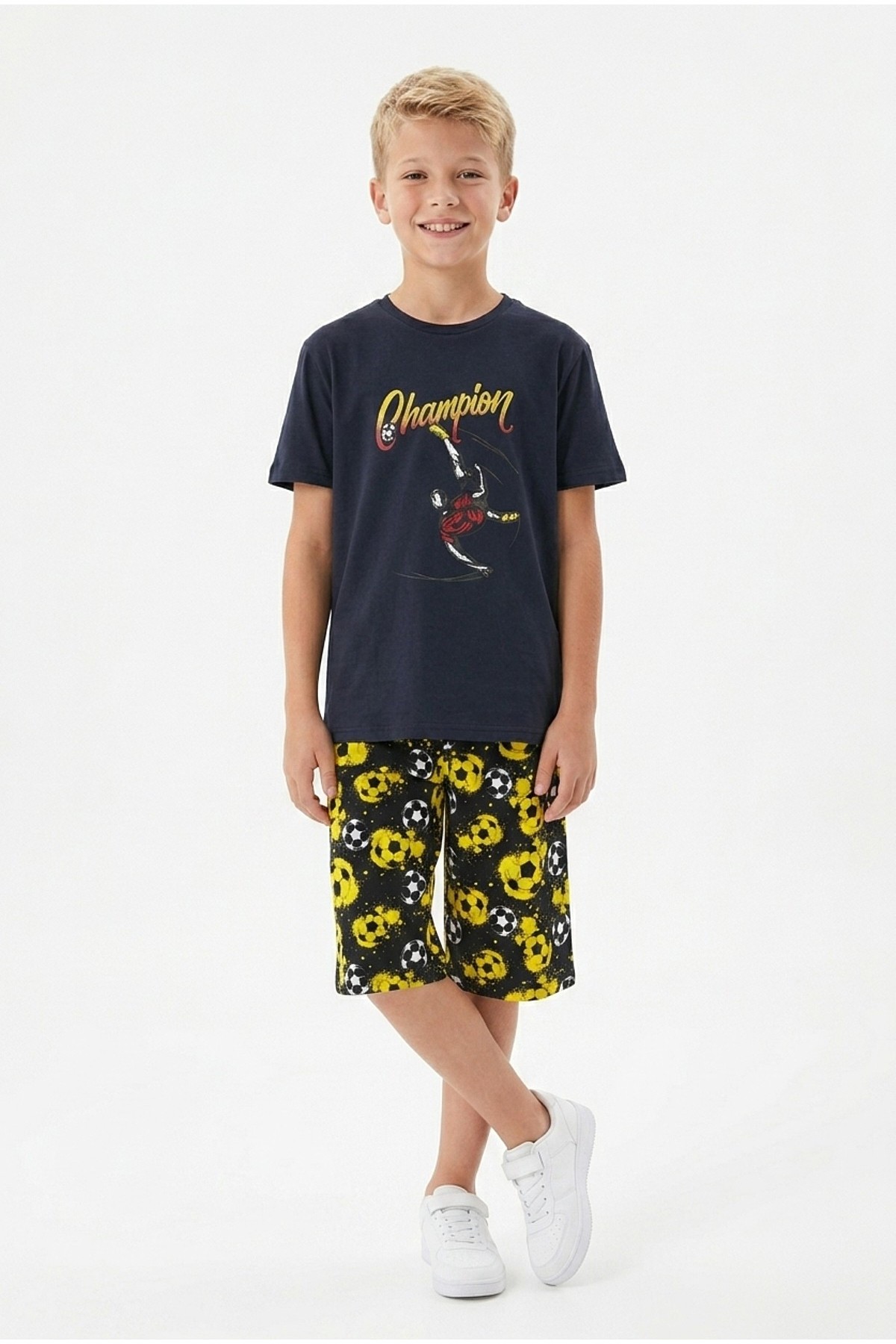 Garson Erkek Çocuk Futbolcu Baskılı Kısa Kollu Süprem Kumaş Şortlu Takım