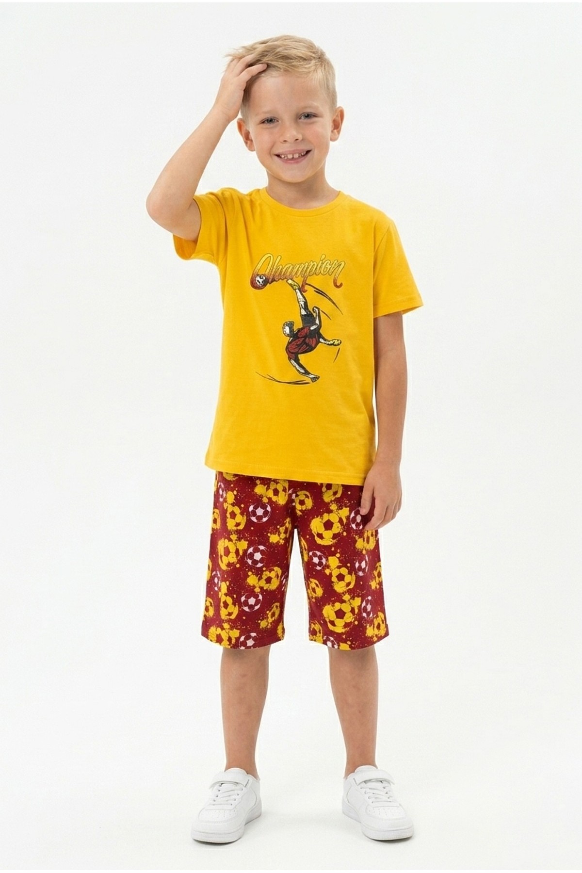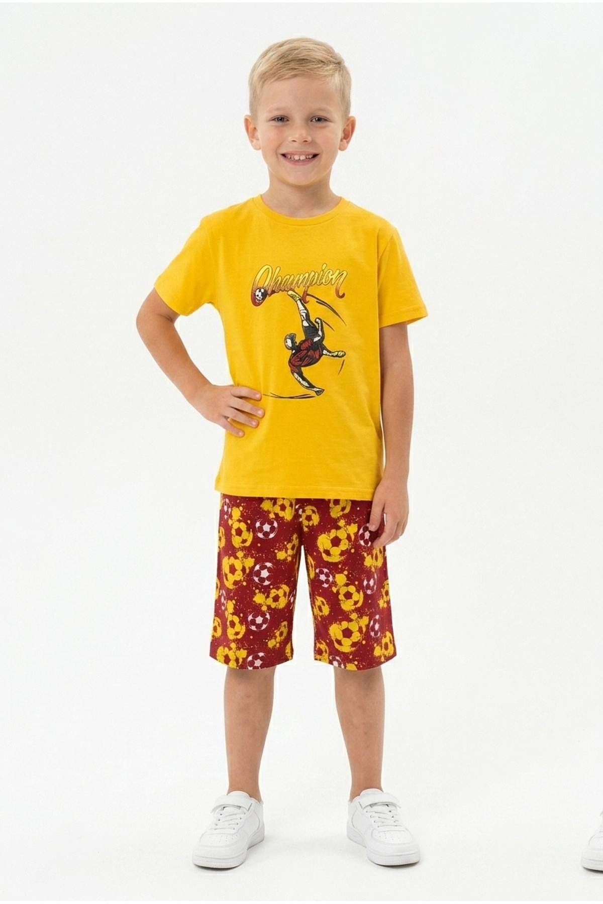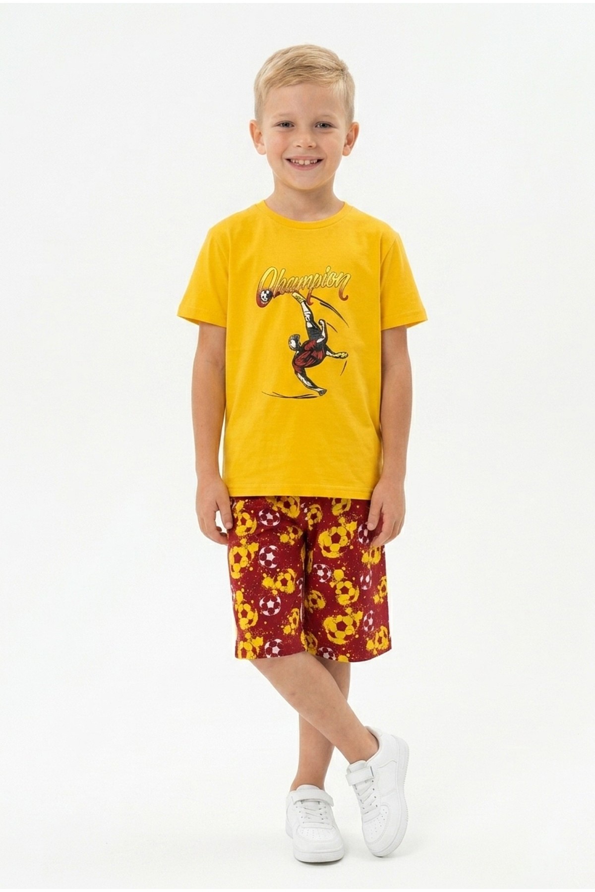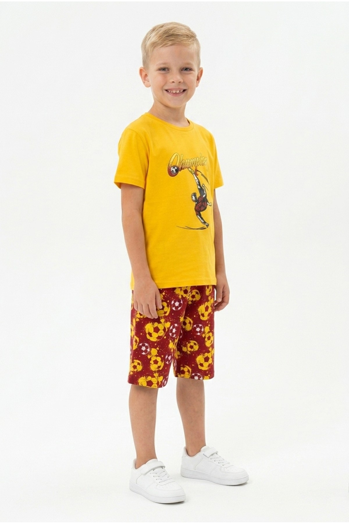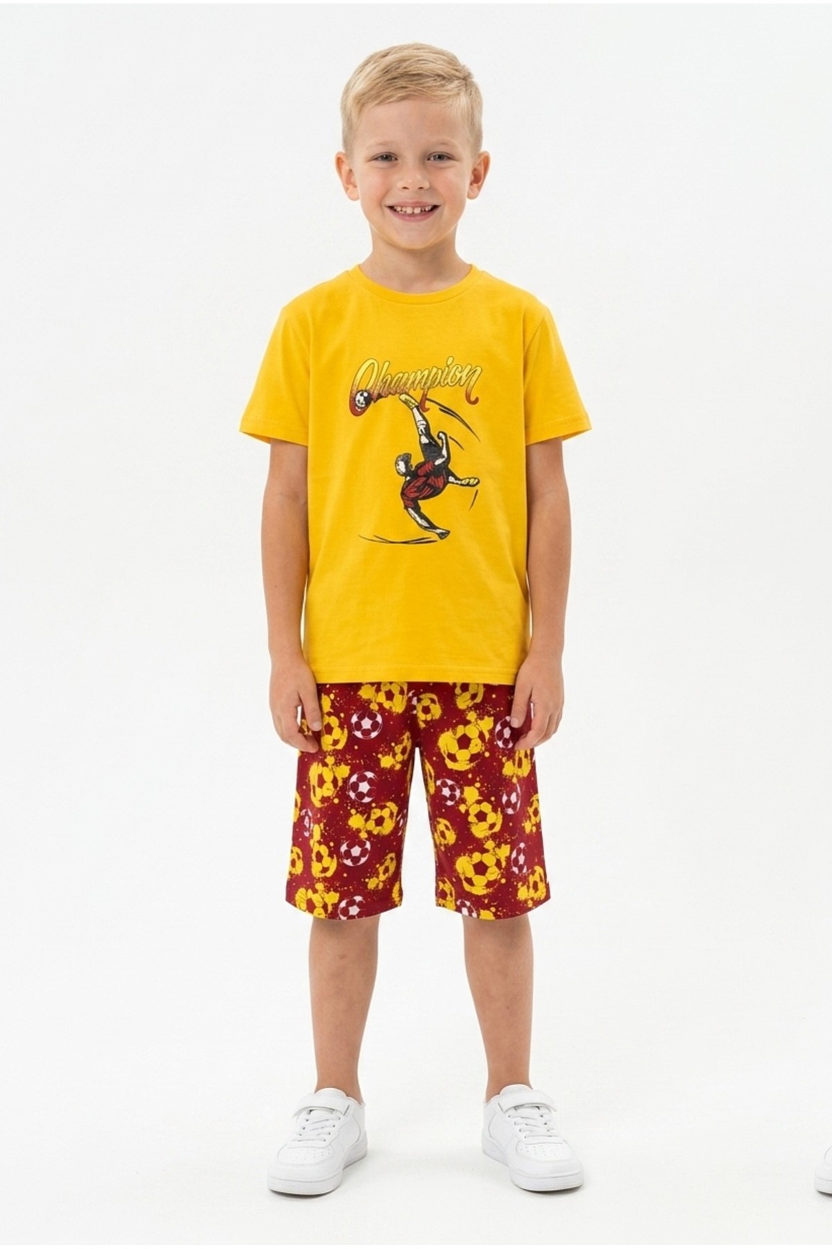 Erkek Çocuk Futbolcu Baskılı Kısa Kollu Süprem Kumaş Şortlu Takım