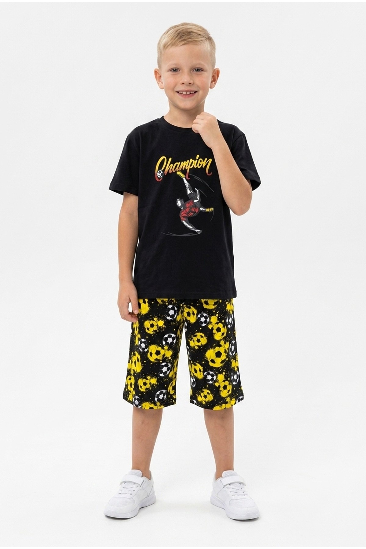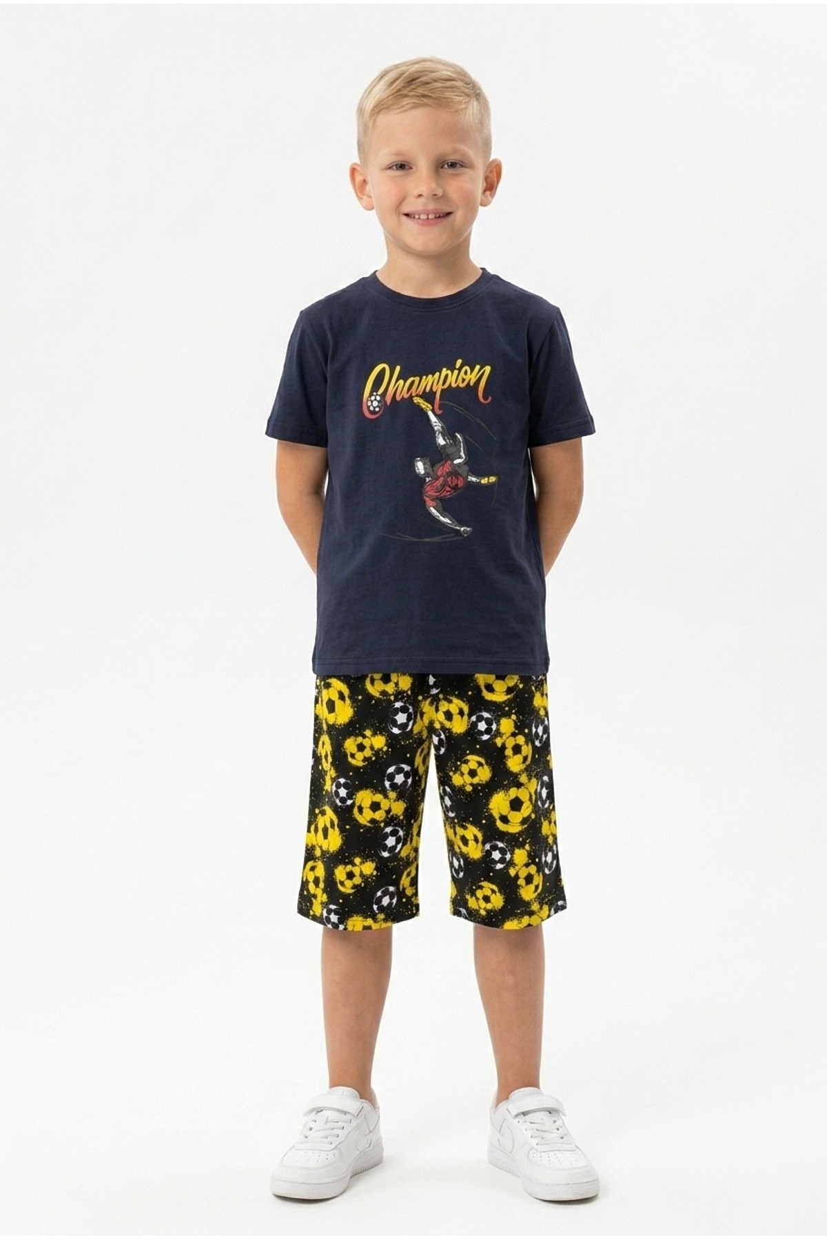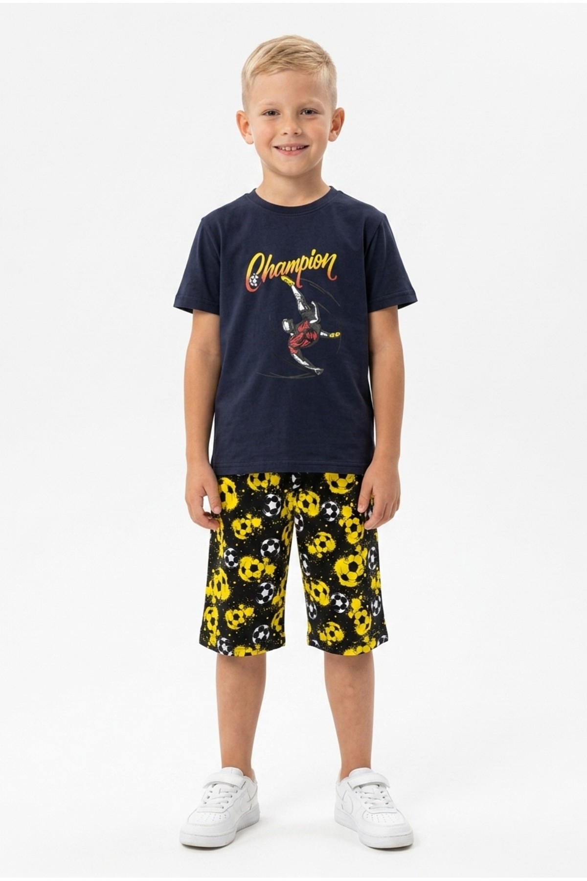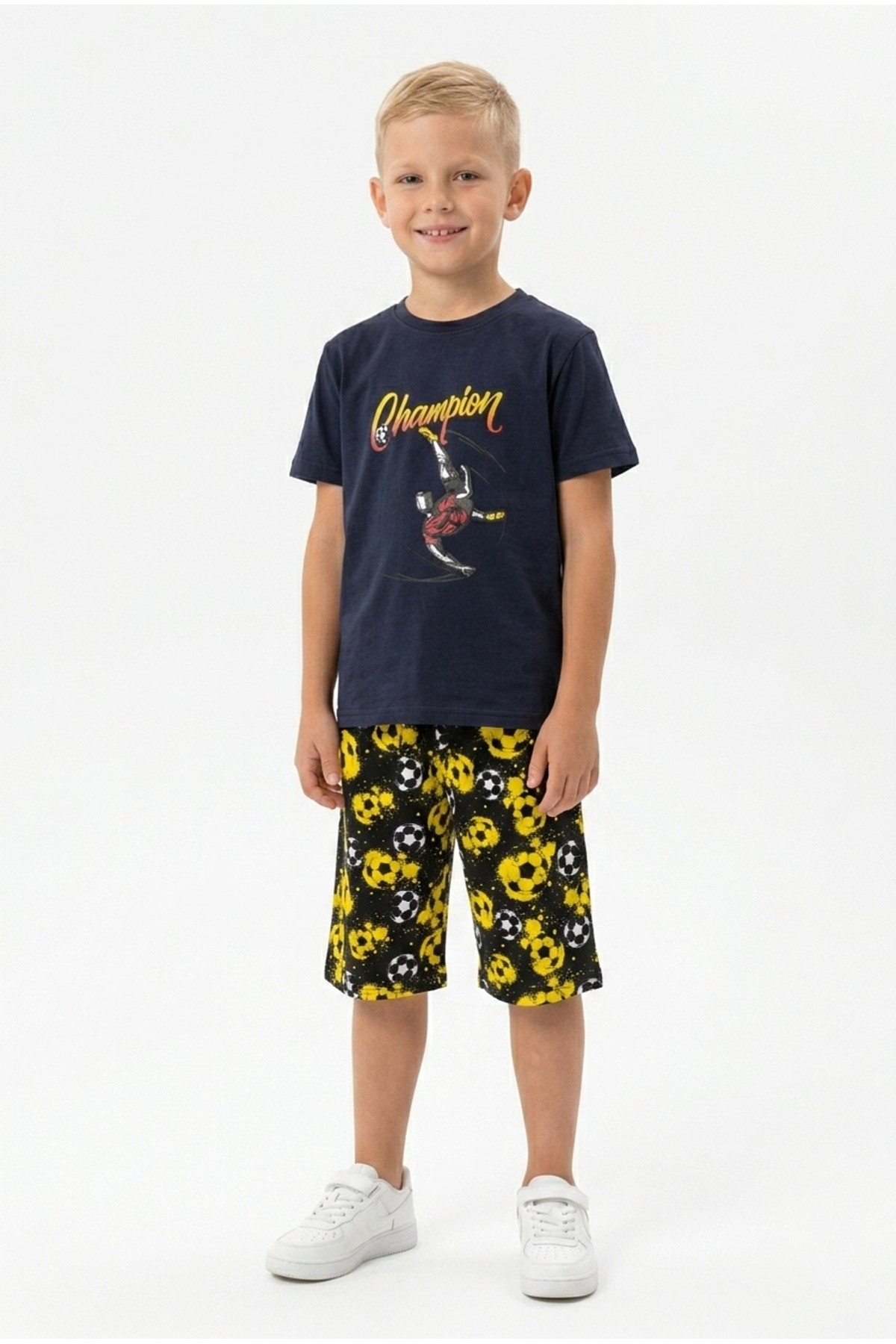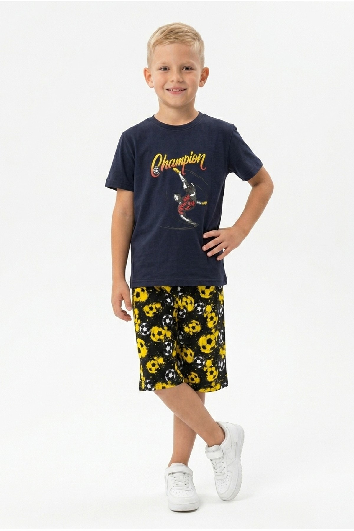 Erkek Çocuk Futbolcu Baskılı Kısa Kollu Süprem Kumaş Şortlu Takım