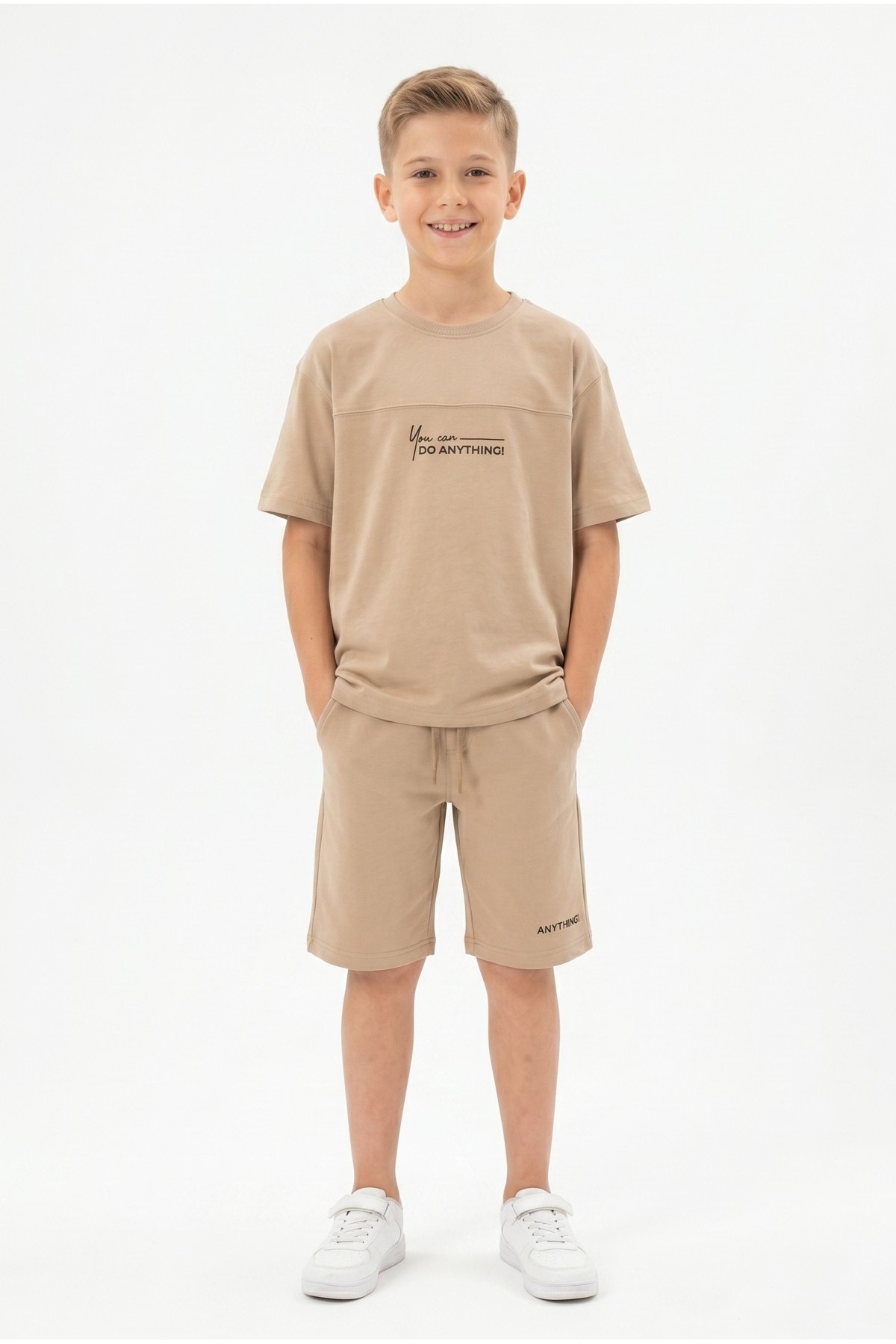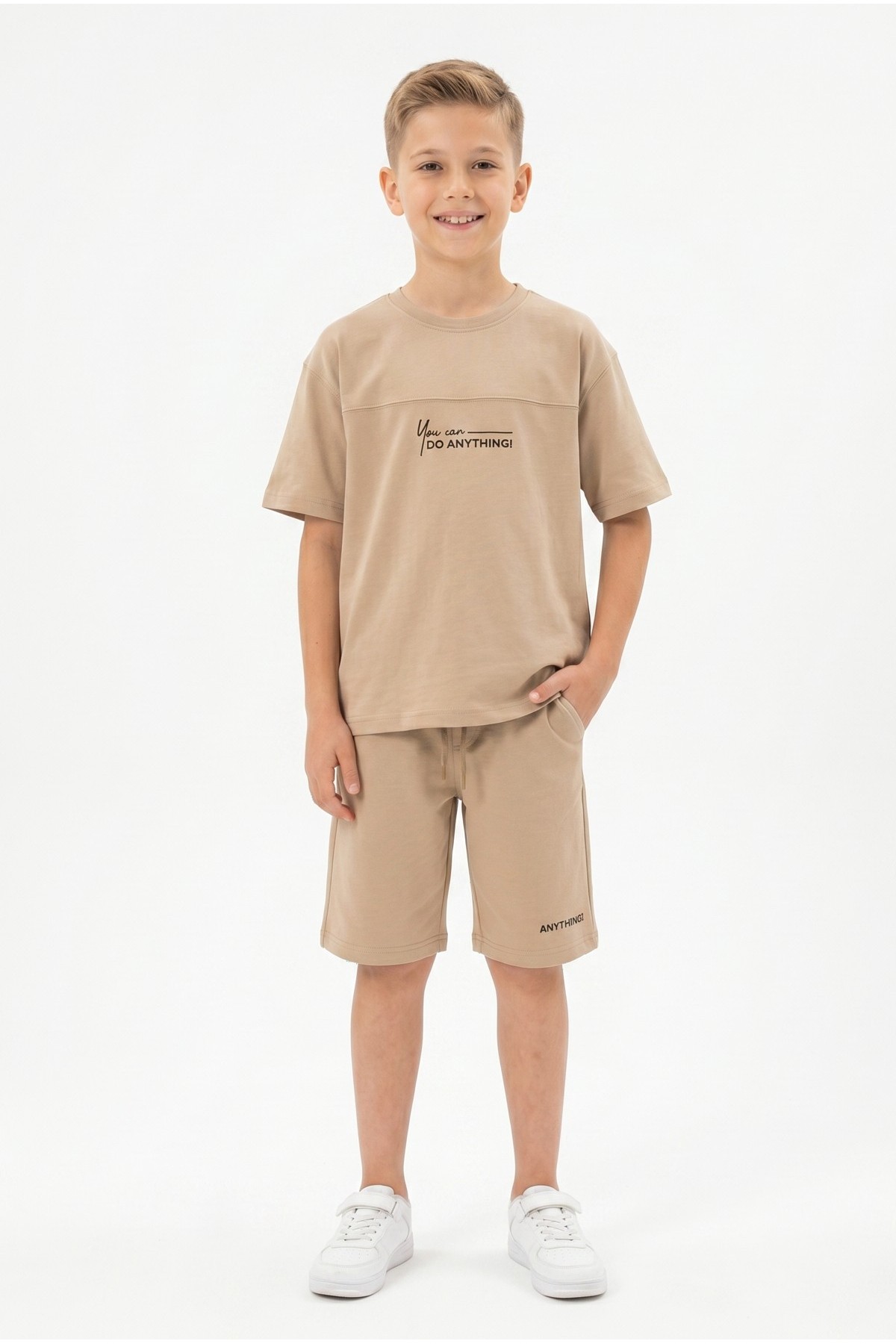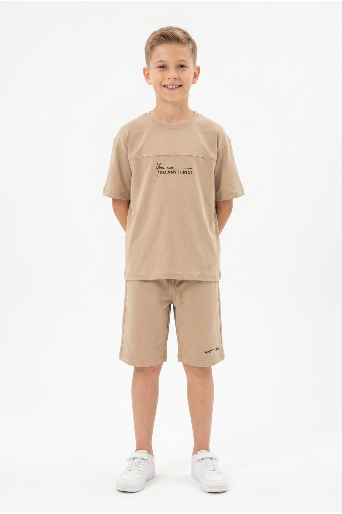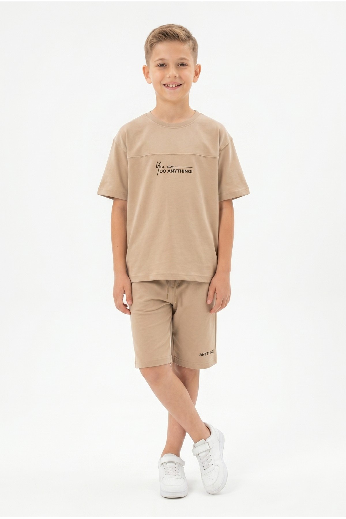 Erkek Çocuk Baskılı 100% Pamuk Süprem Kumaş Tişört İki İplik Şortlu Takım