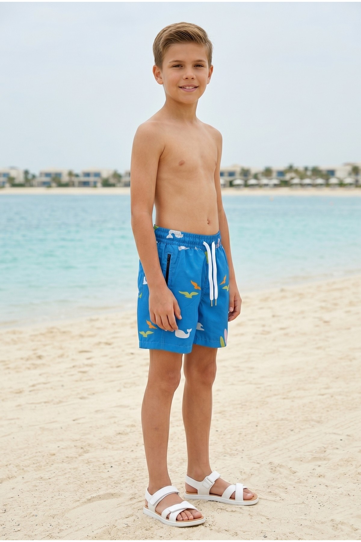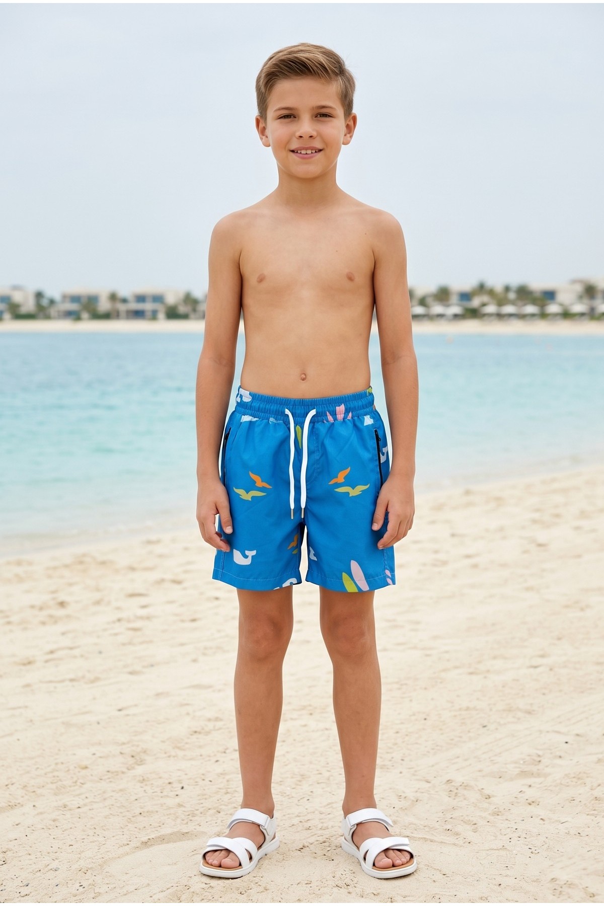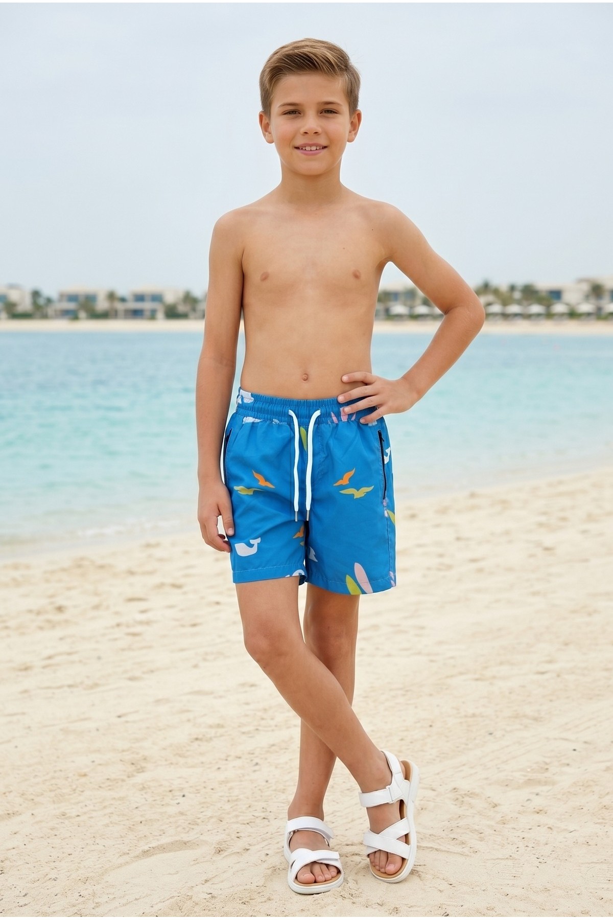 Erkek Çocuk Polyester + Elastan Baskılı Lastikli Bel Cepli Deniz Şortu Mayo