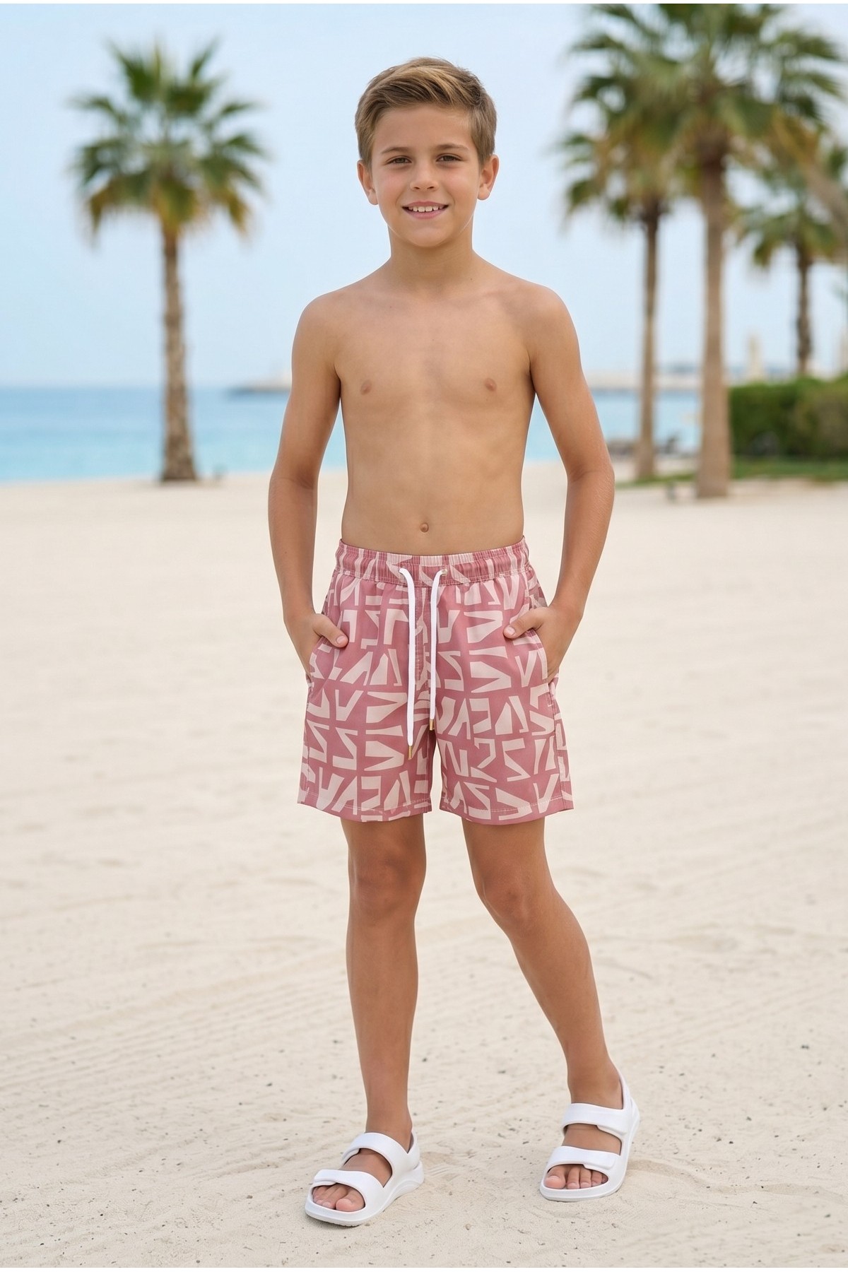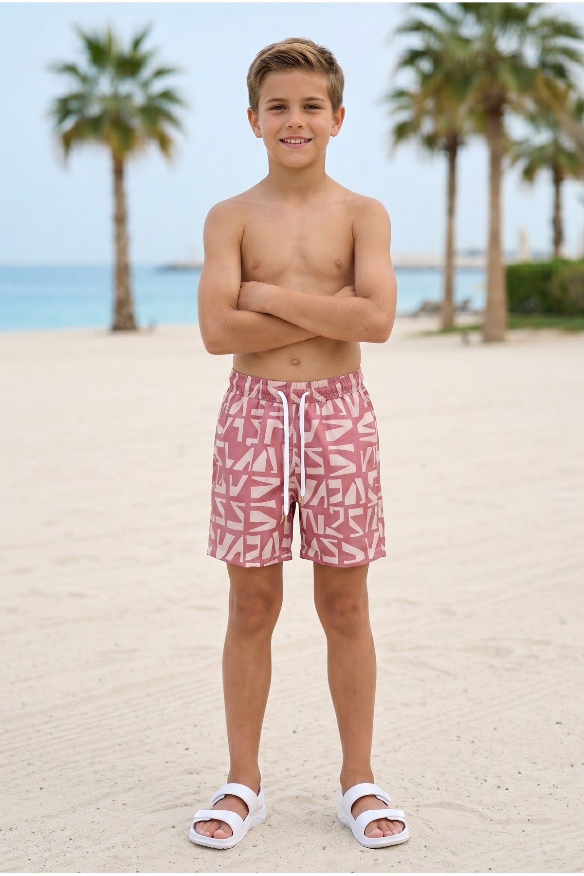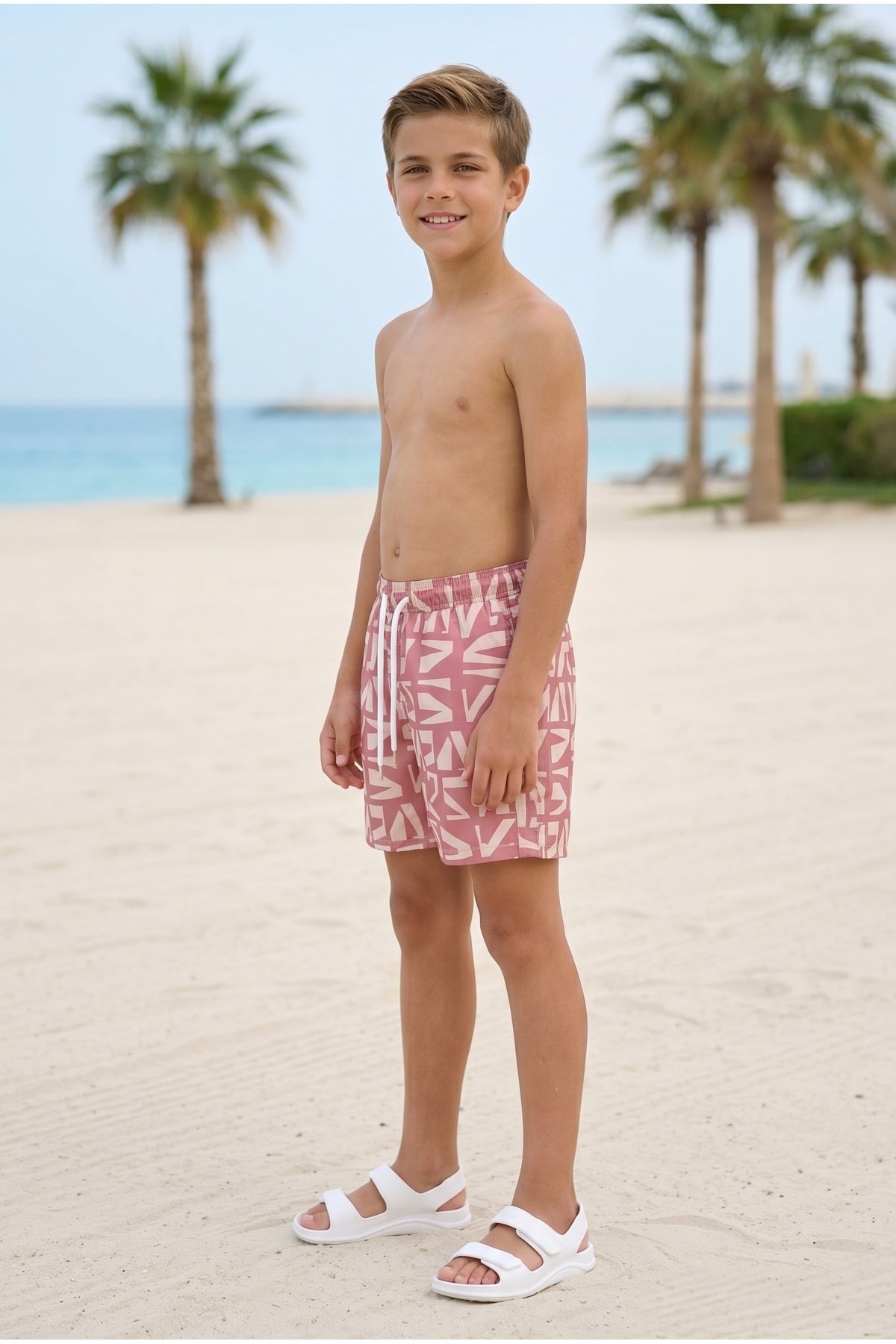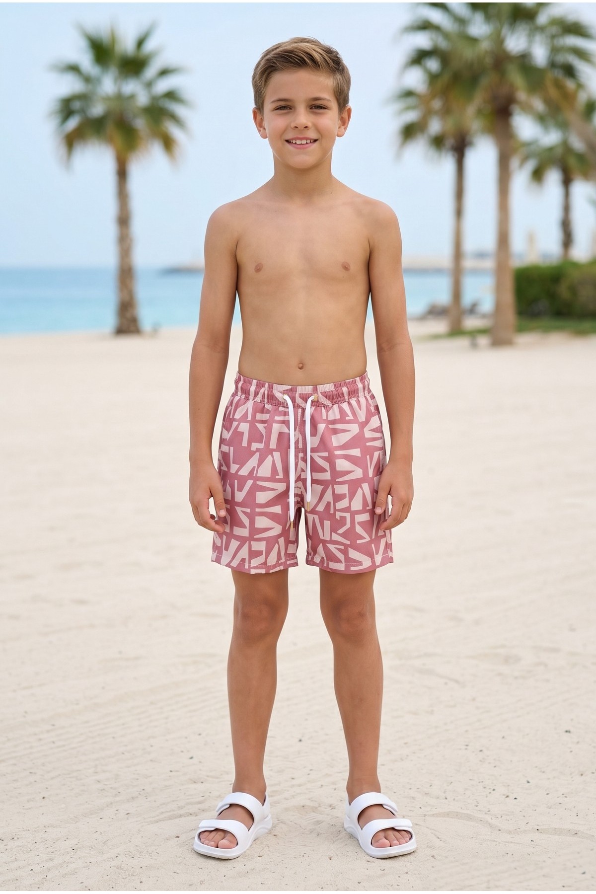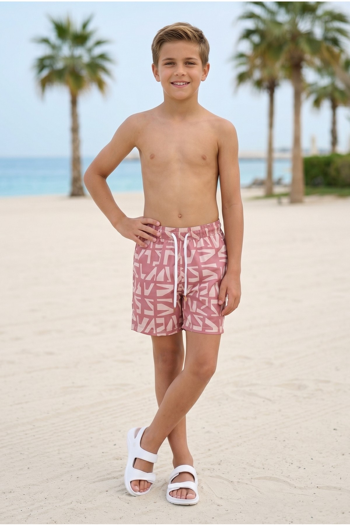 Erkek Çocuk Polyester + Elastan Baskılı Lastikli Bel Cepli Deniz Şortu Mayo