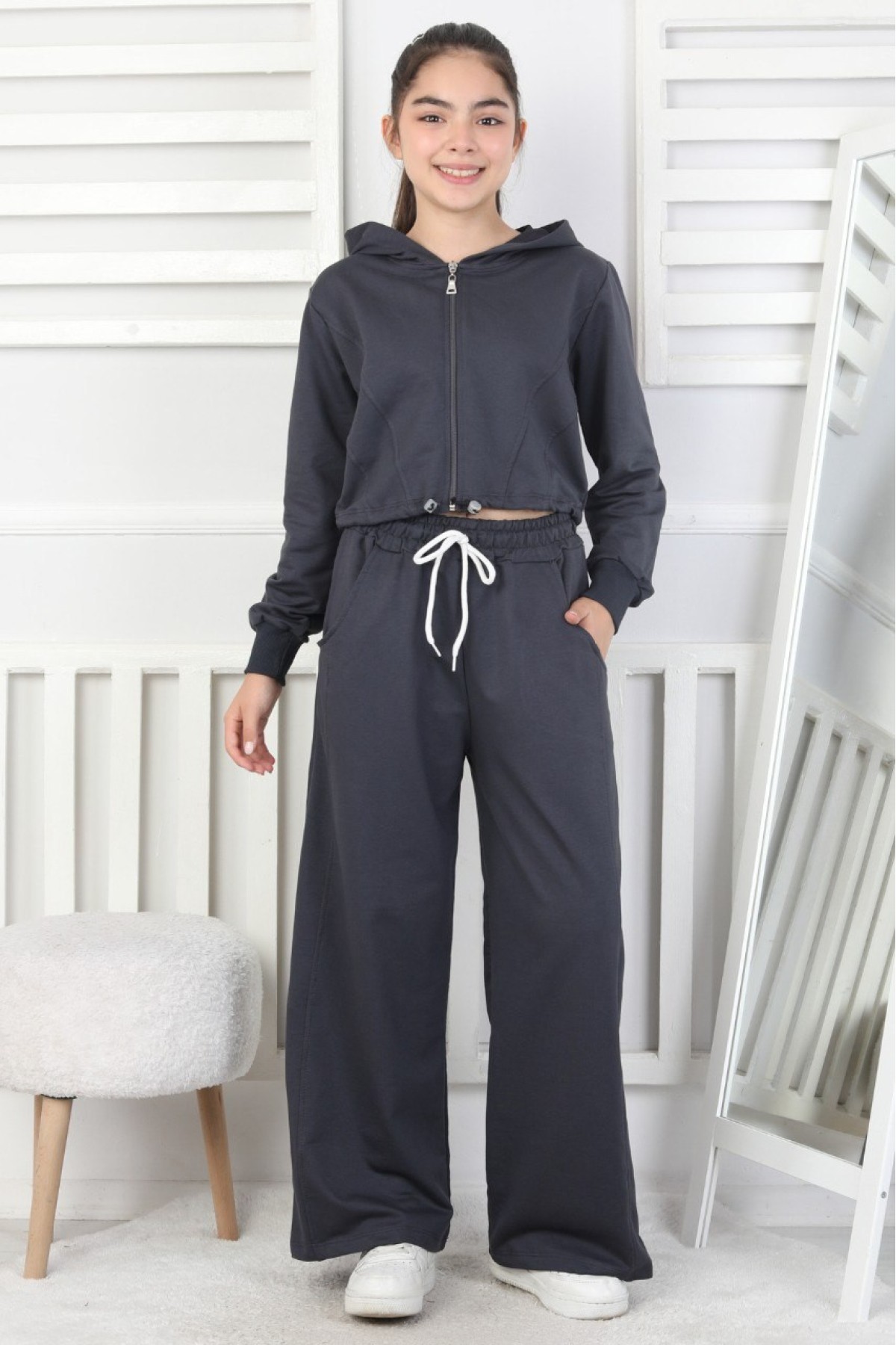Kapüşonlu Fermuarlı Bol Paça Kız Çocuk Takım