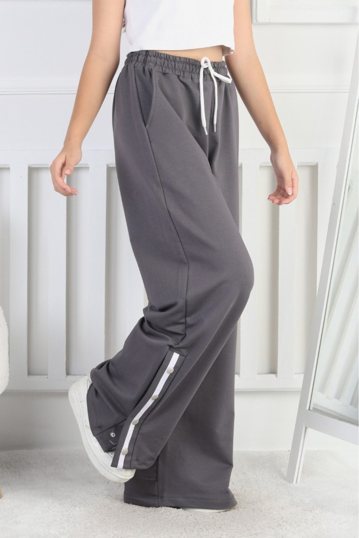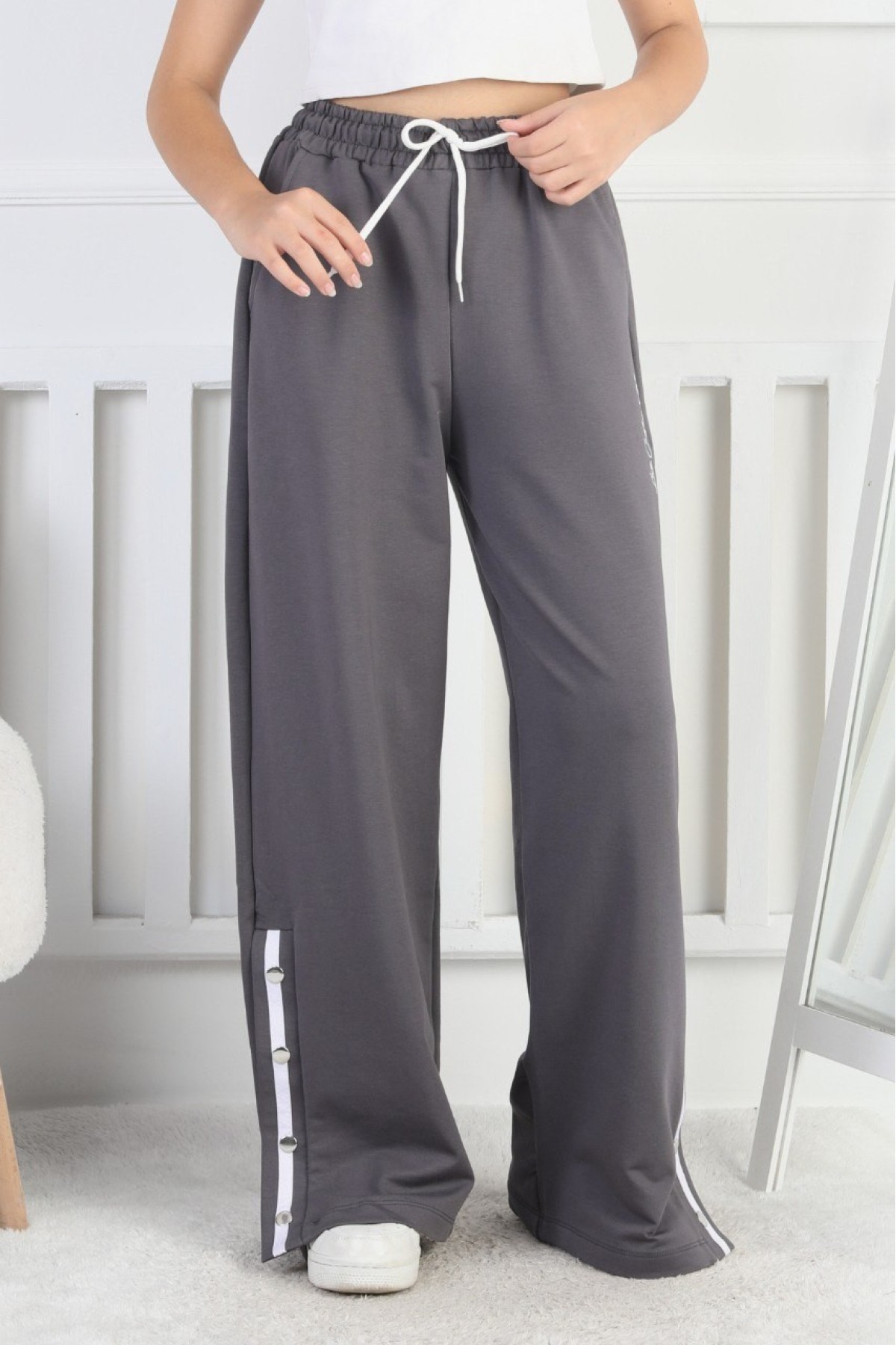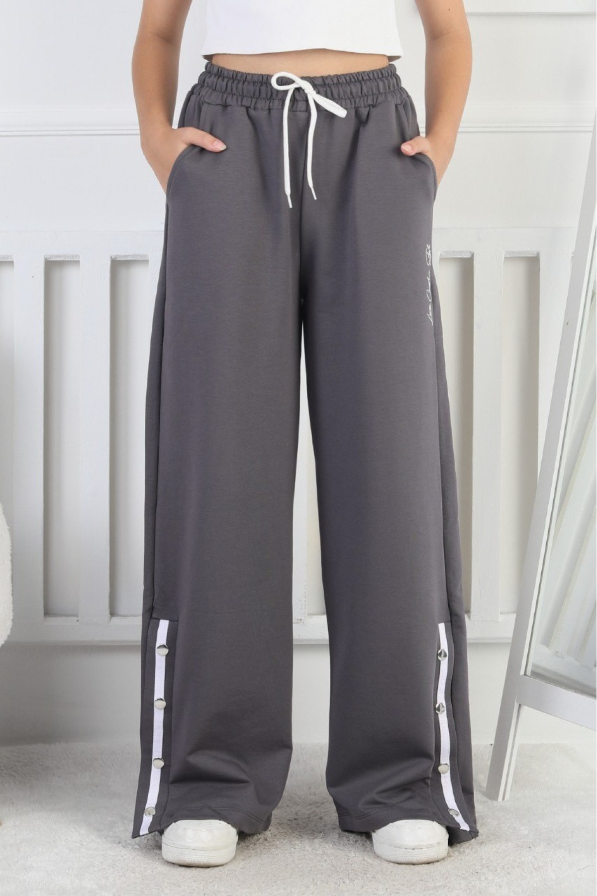 İki İplik Çıtçıtlı Bol Paça Kız Çocuk Eşofman Altı