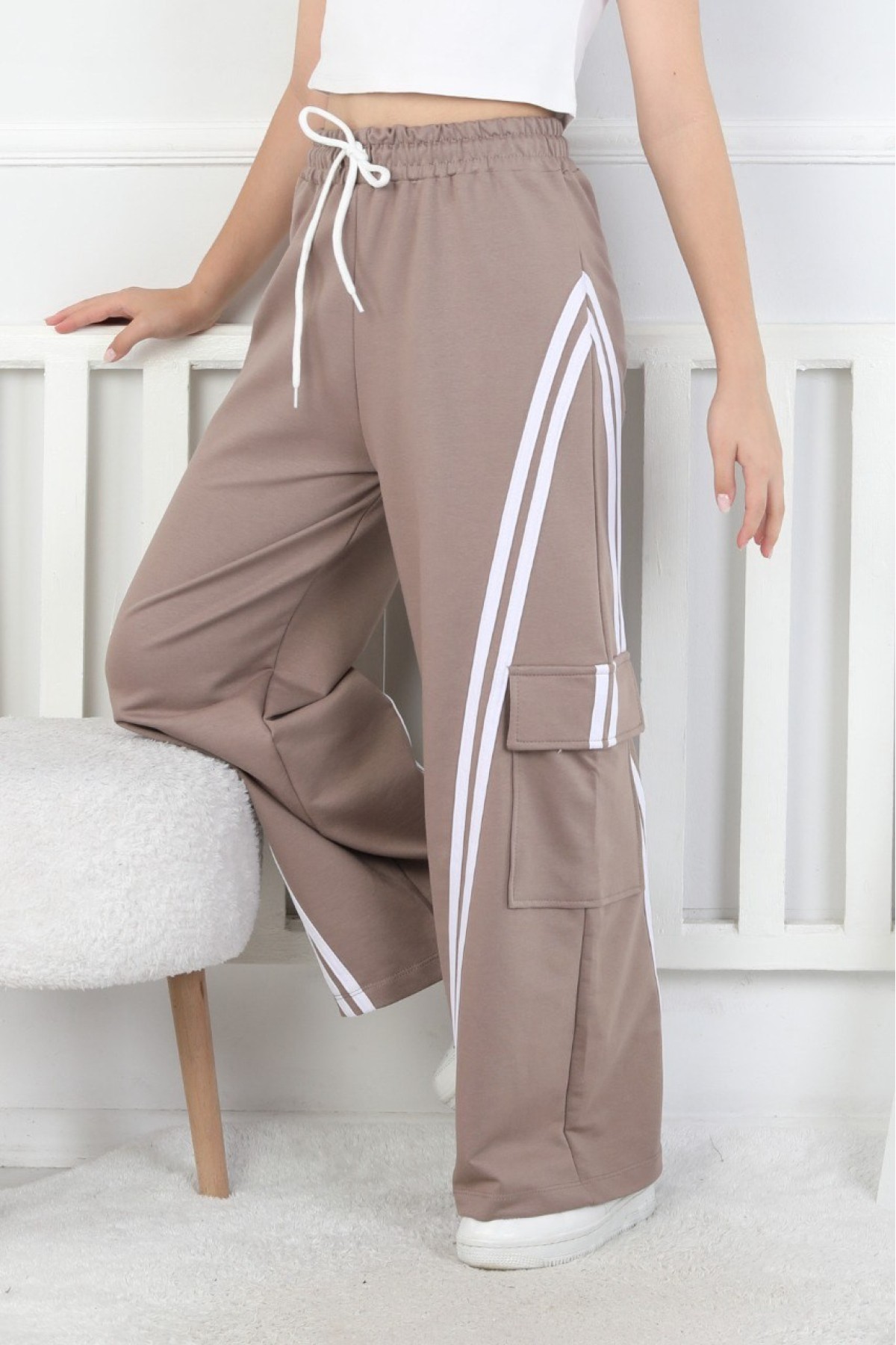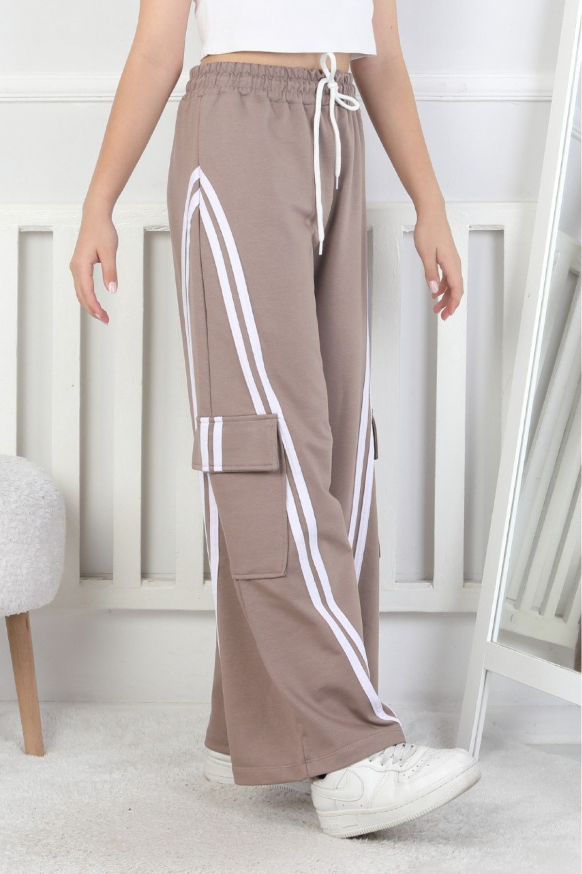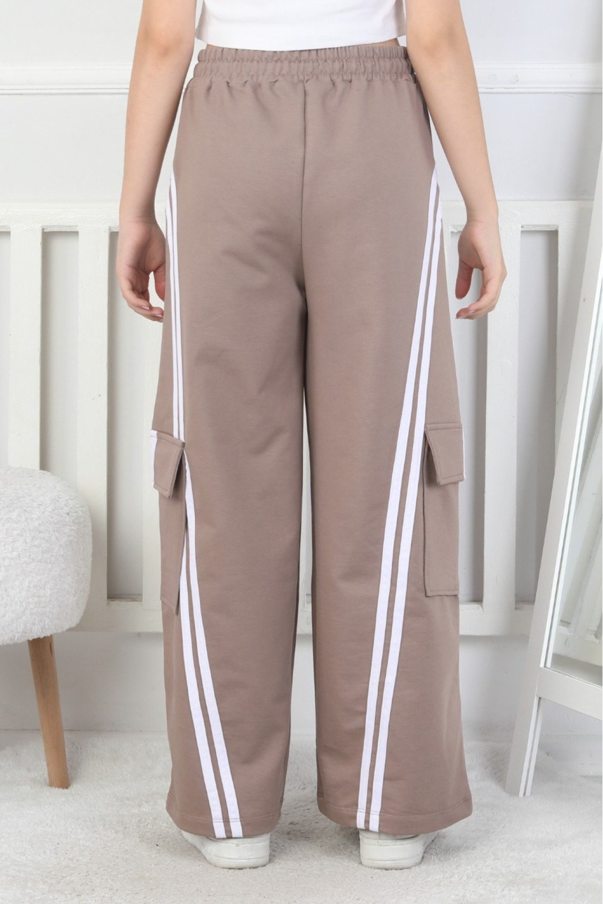 Kargo Cepli Bol Paça Kız Çocuk Eşofman Altı