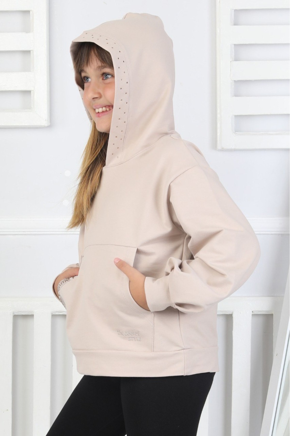 Kapüşonlu Baskılı Kız Çocuk Sweatshirt