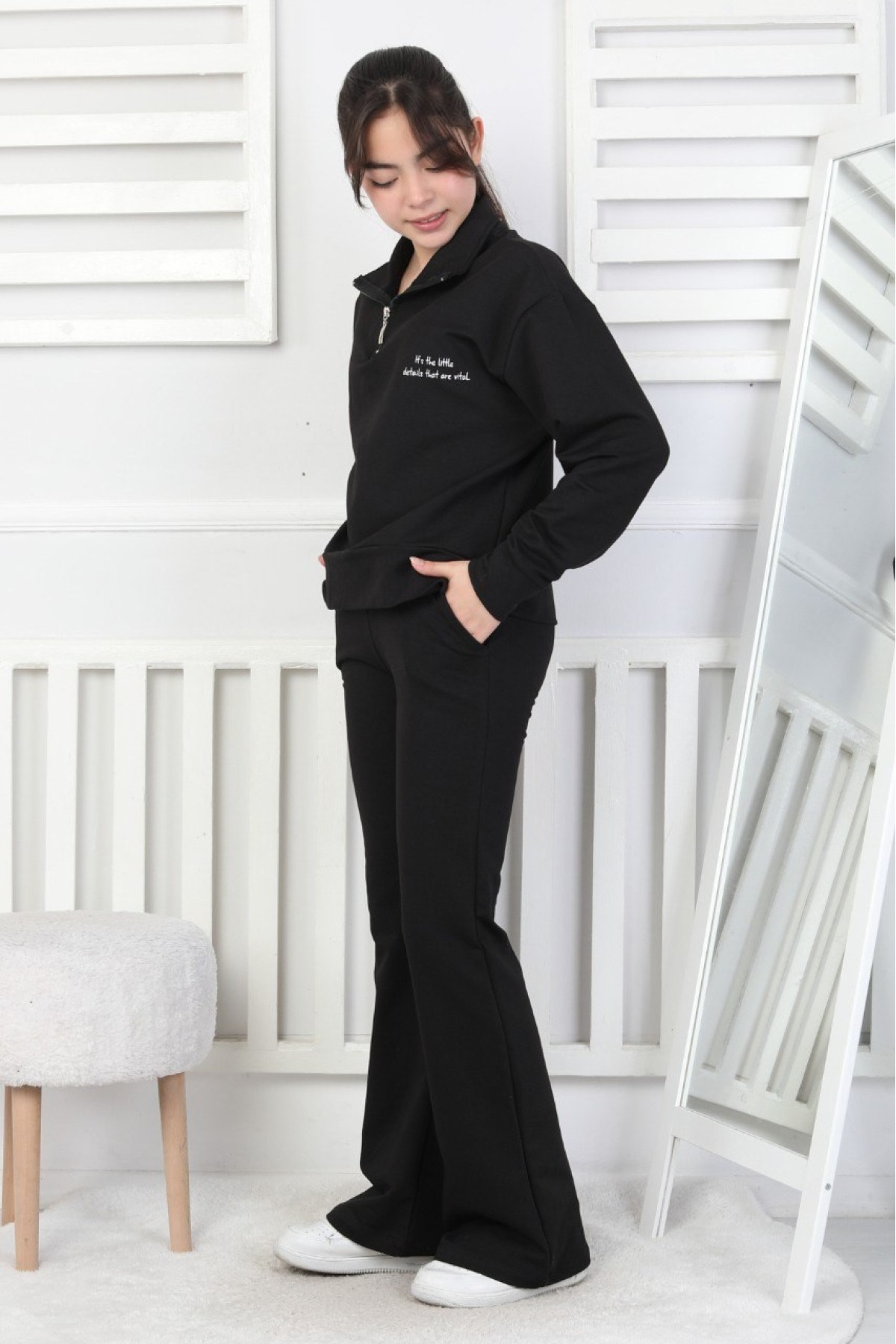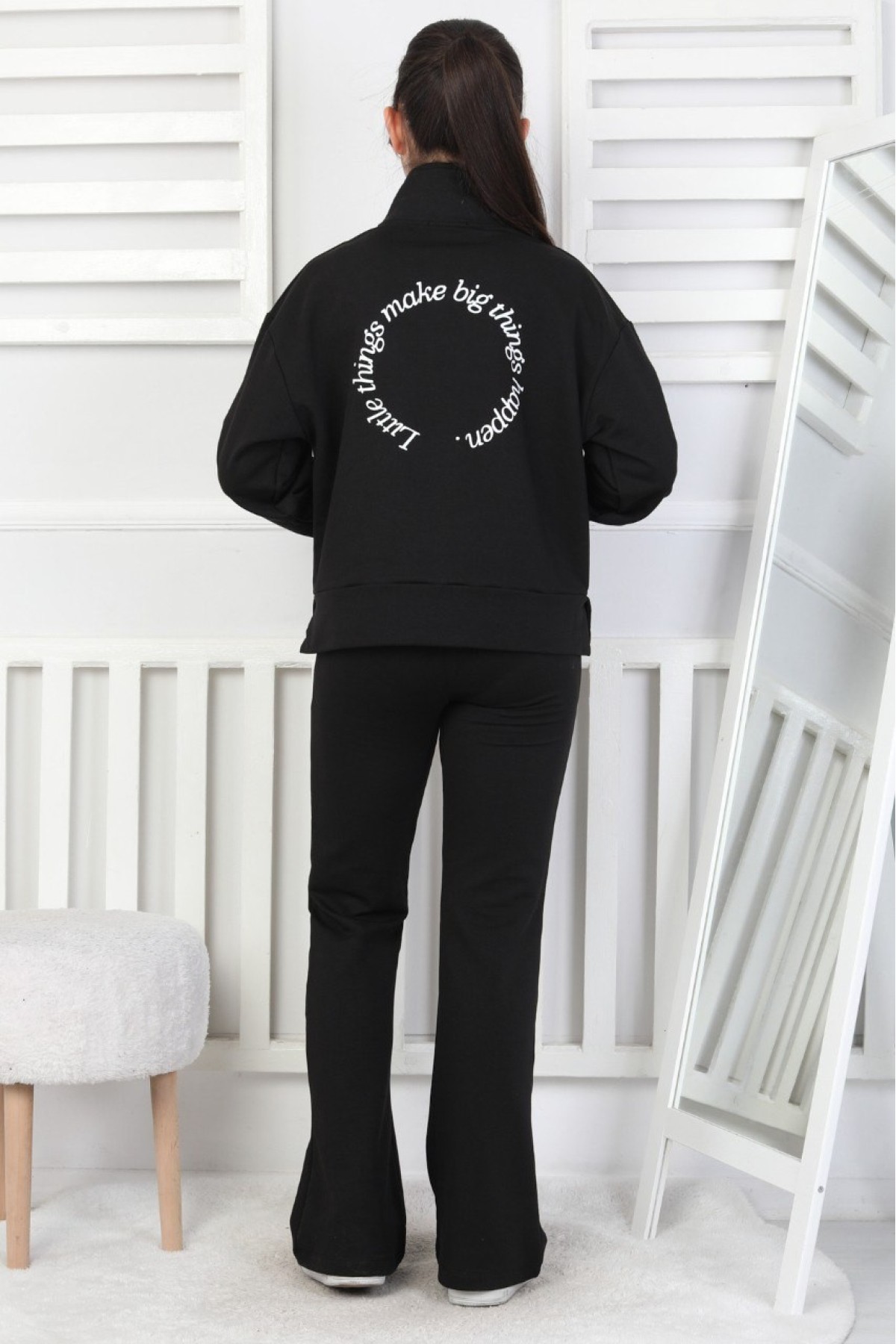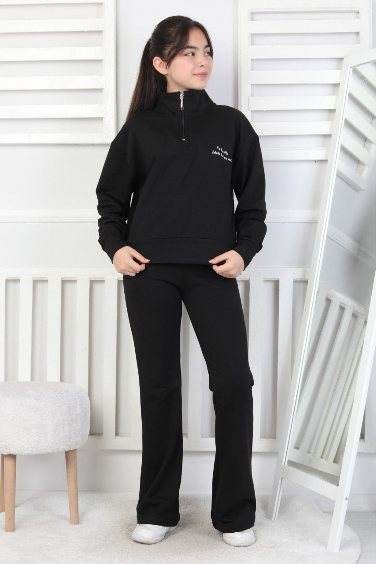 İki İplik Arkası Baskılı Yarım Fermuarlı Kız Çocuk Takım
