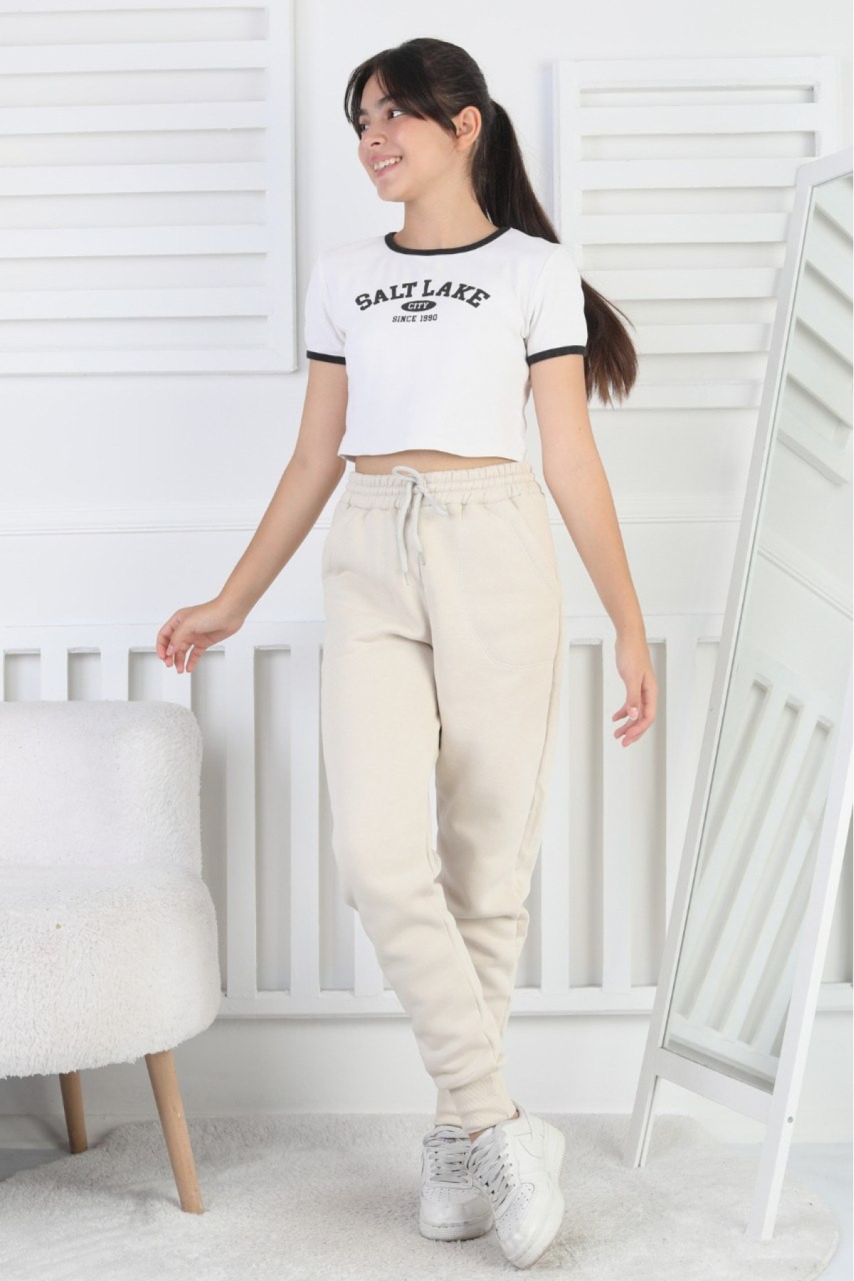 Şardonlu 3 İplik Düz Kız Çocuk Eşofman Altı