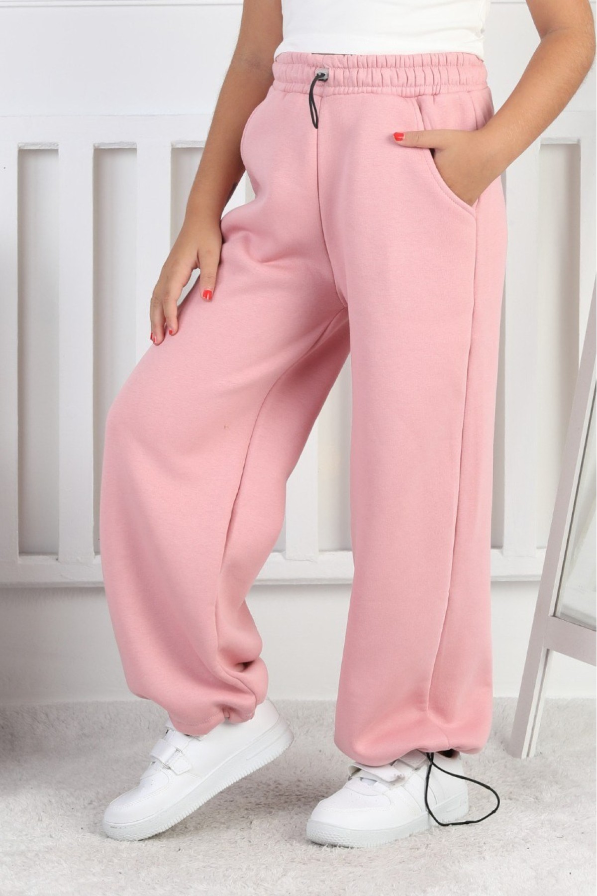Şardonlu 3 İplik Paça Sıkmalı Kız Çocuk Eşofman Altı