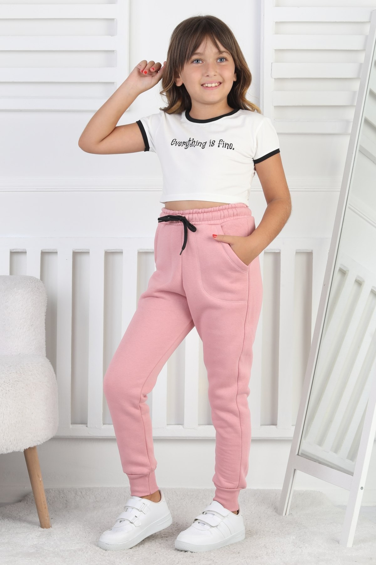 Şardonlu 3 İplik Düz Kız Çocuk Eşofman Altı