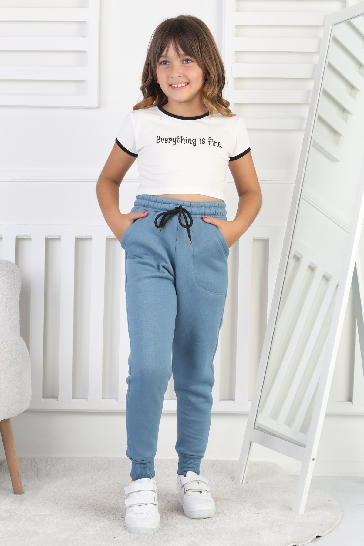 Şardonlu 3 İplik Düz Kız Çocuk Eşofman Altı