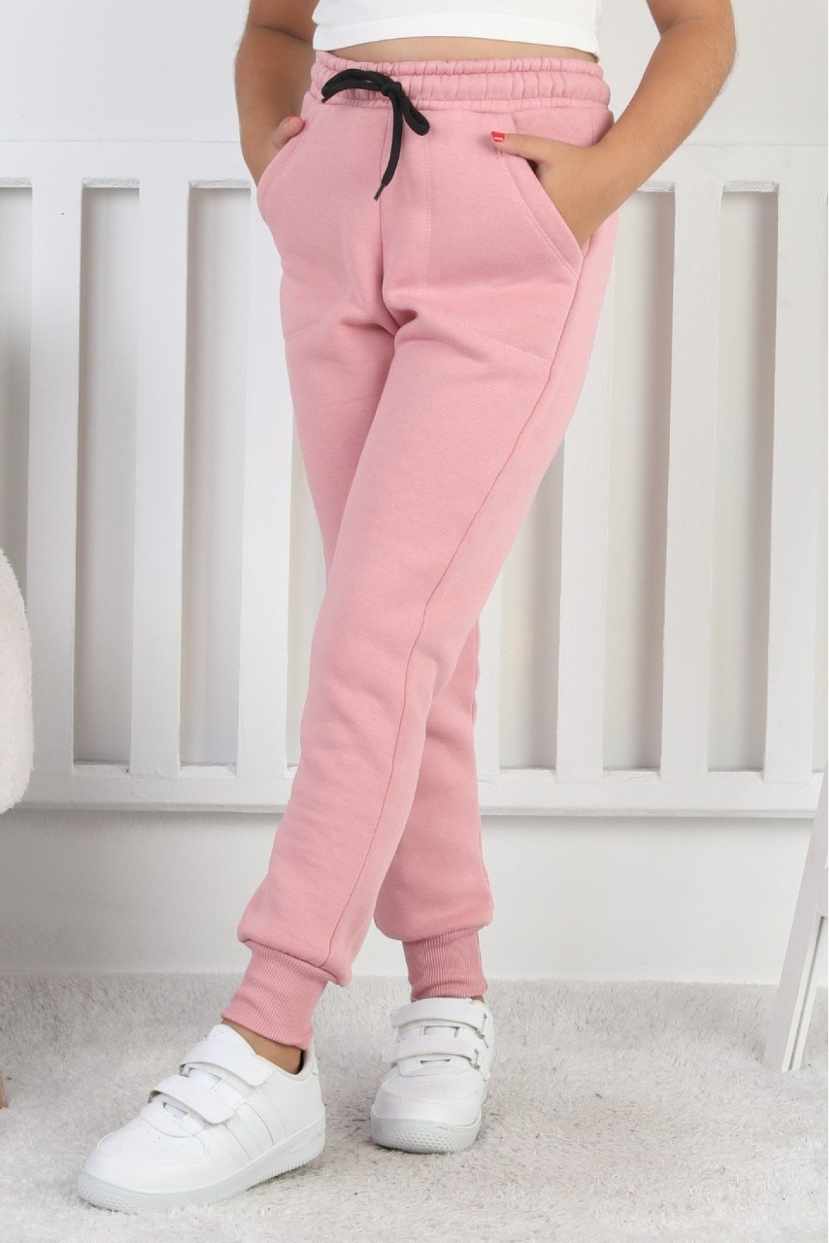 Şardonlu 3 İplik Düz Kız Çocuk Eşofman Altı