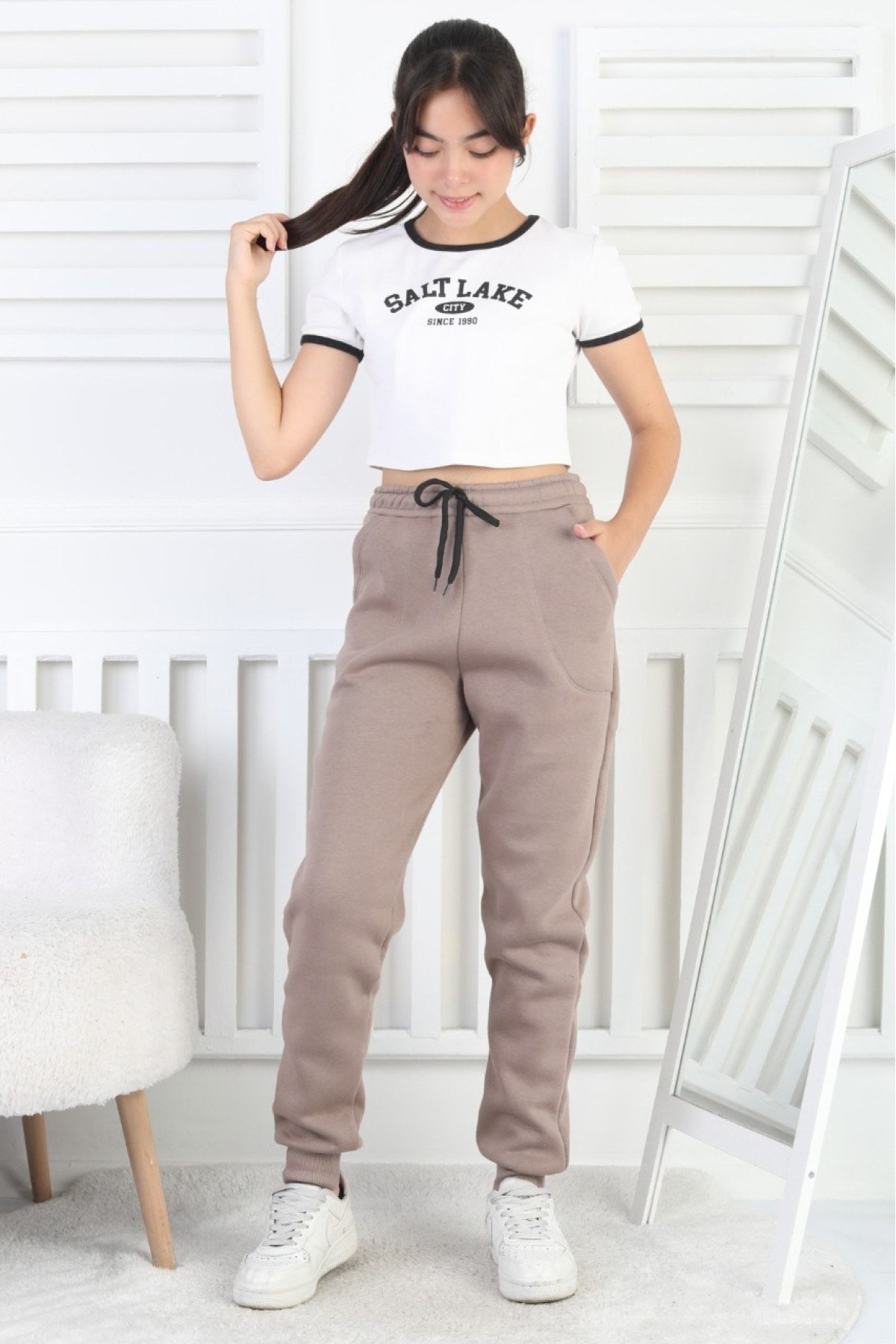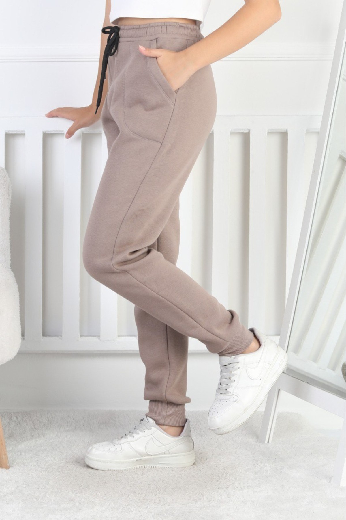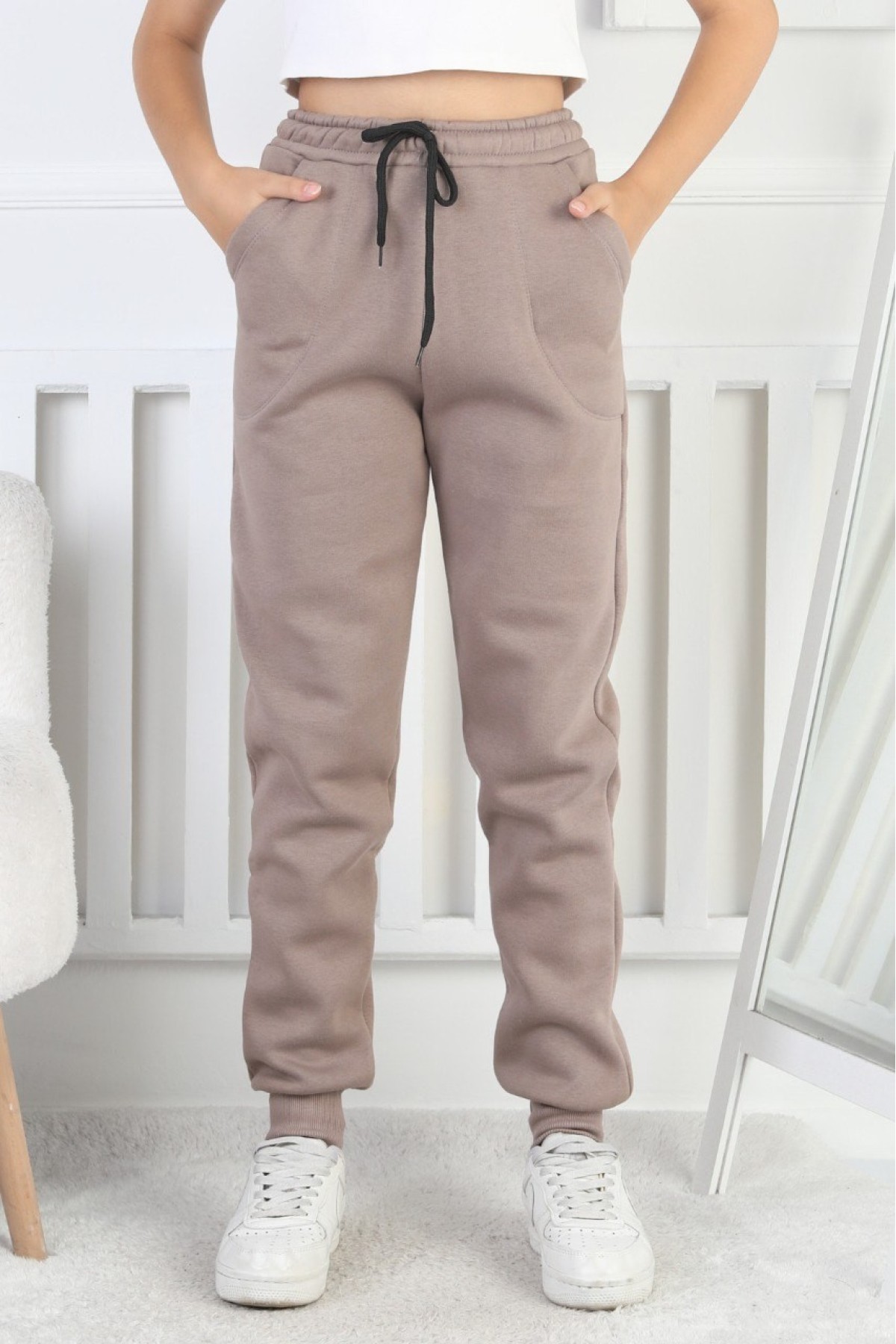 Şardonlu 3 İplik Düz Kız Çocuk Eşofman Altı