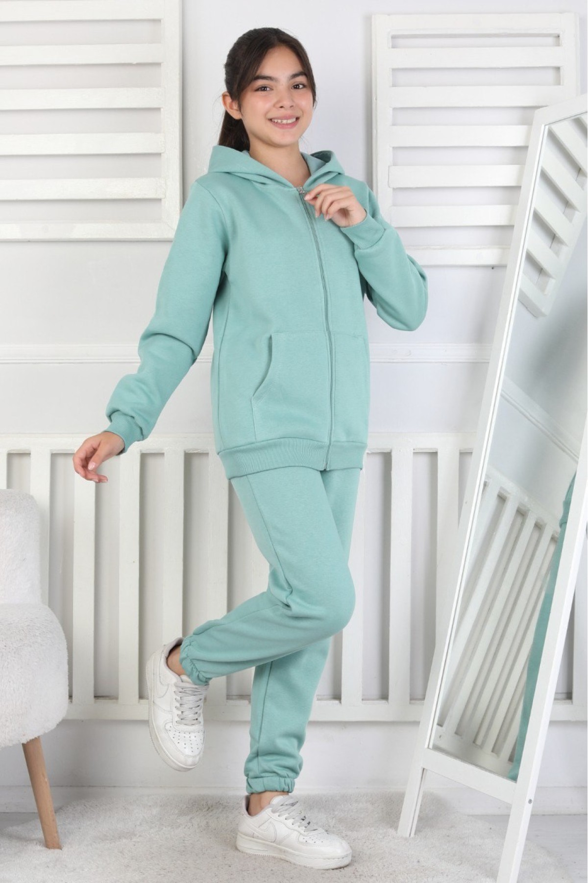 Şardonlu 3 İplik Kapşonlu Kız Çocuk Takım