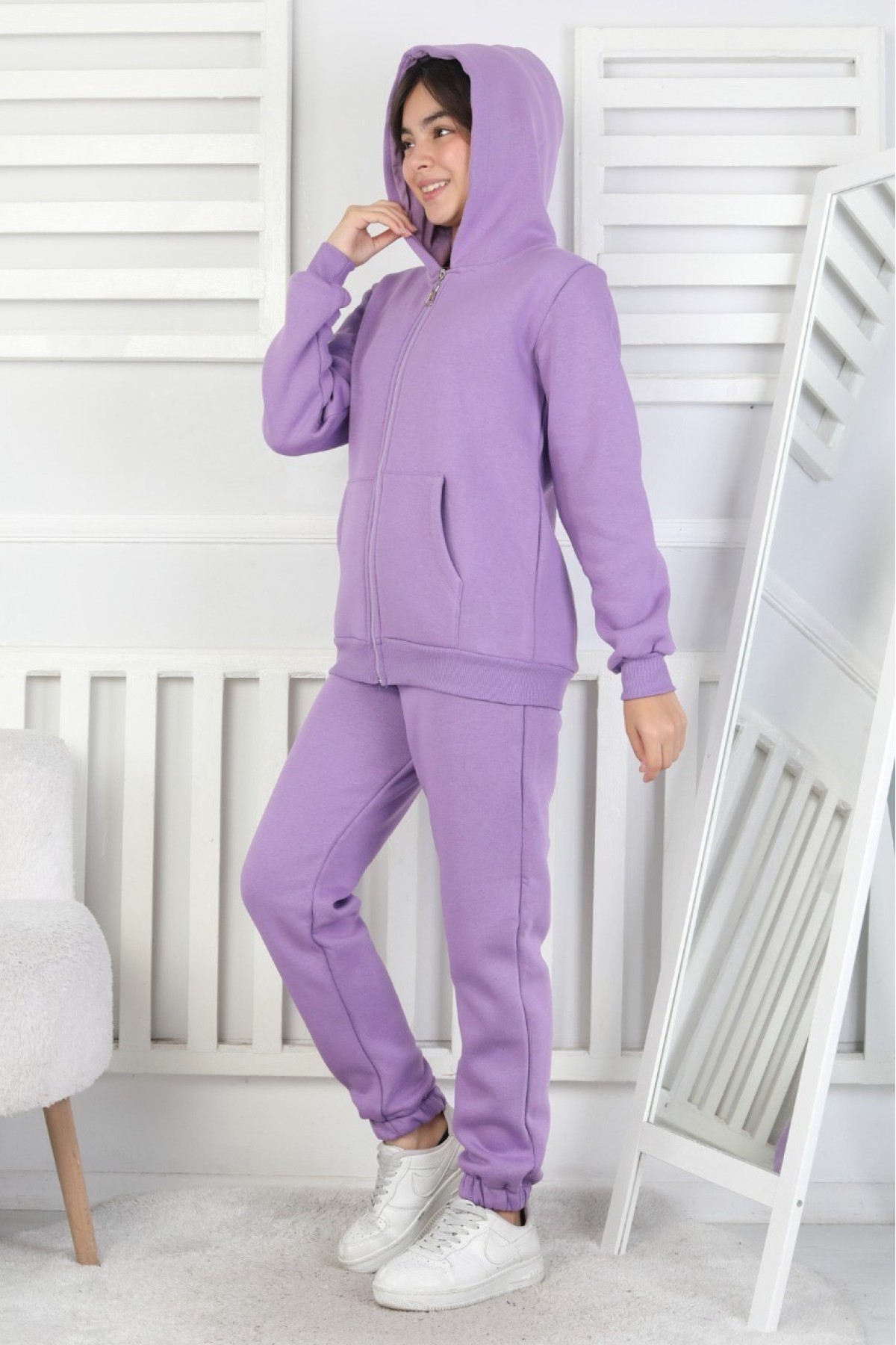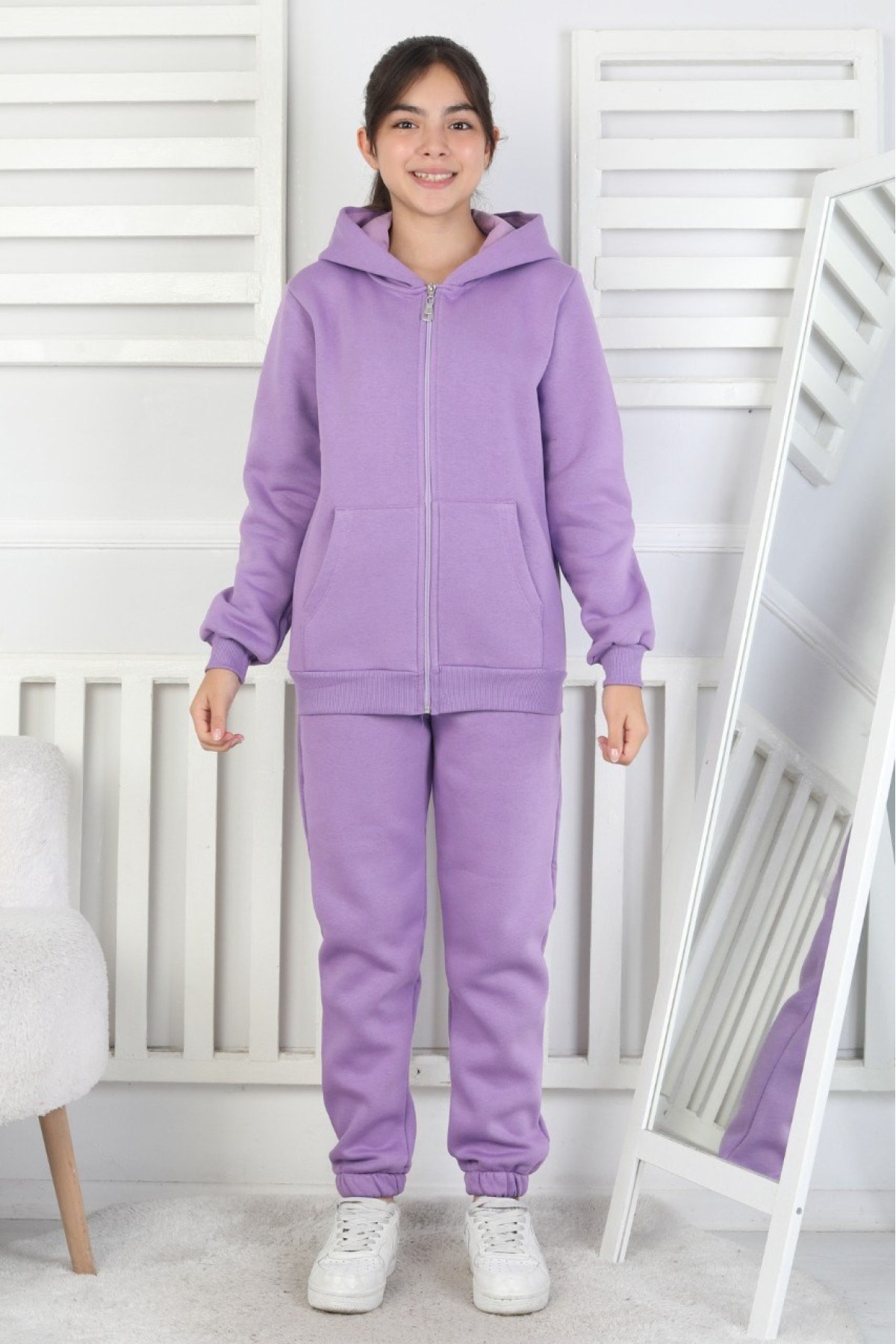 Şardonlu 3 İplik Kapşonlu Kız Çocuk Takım