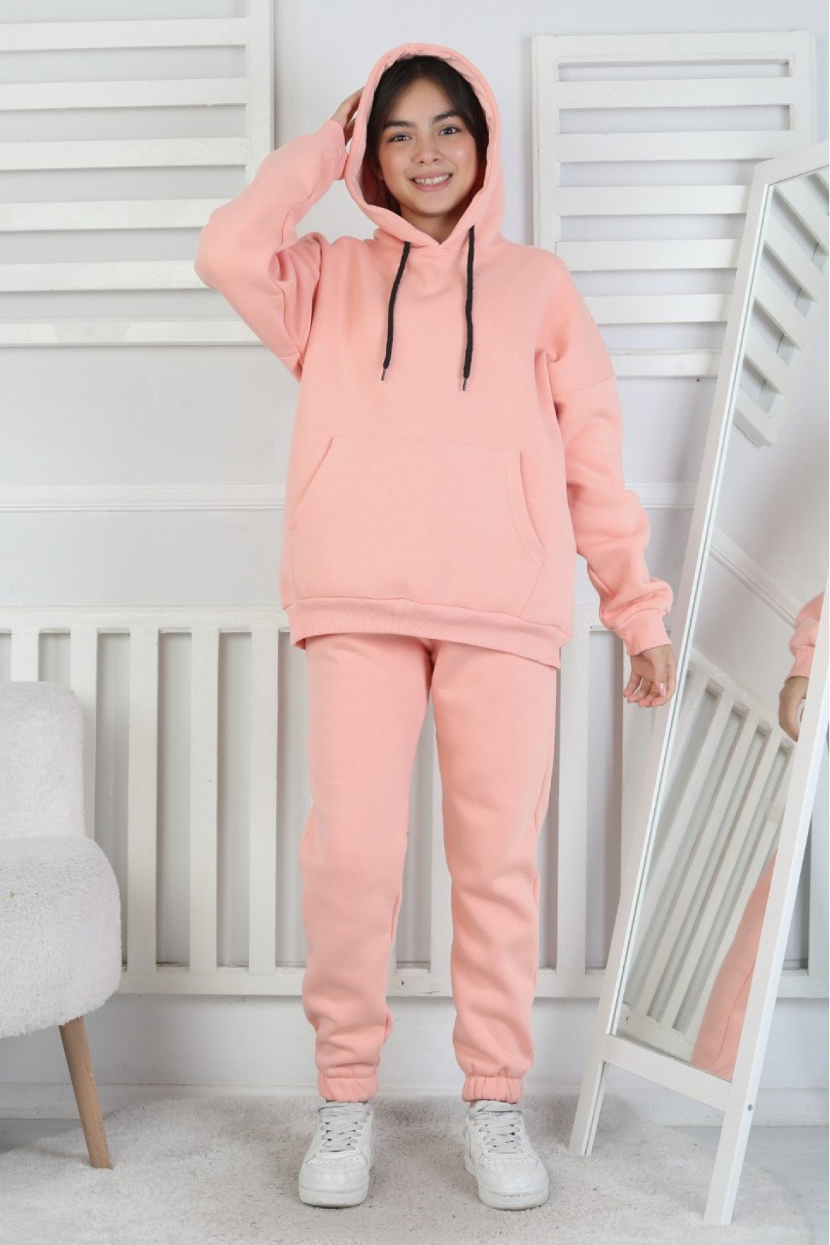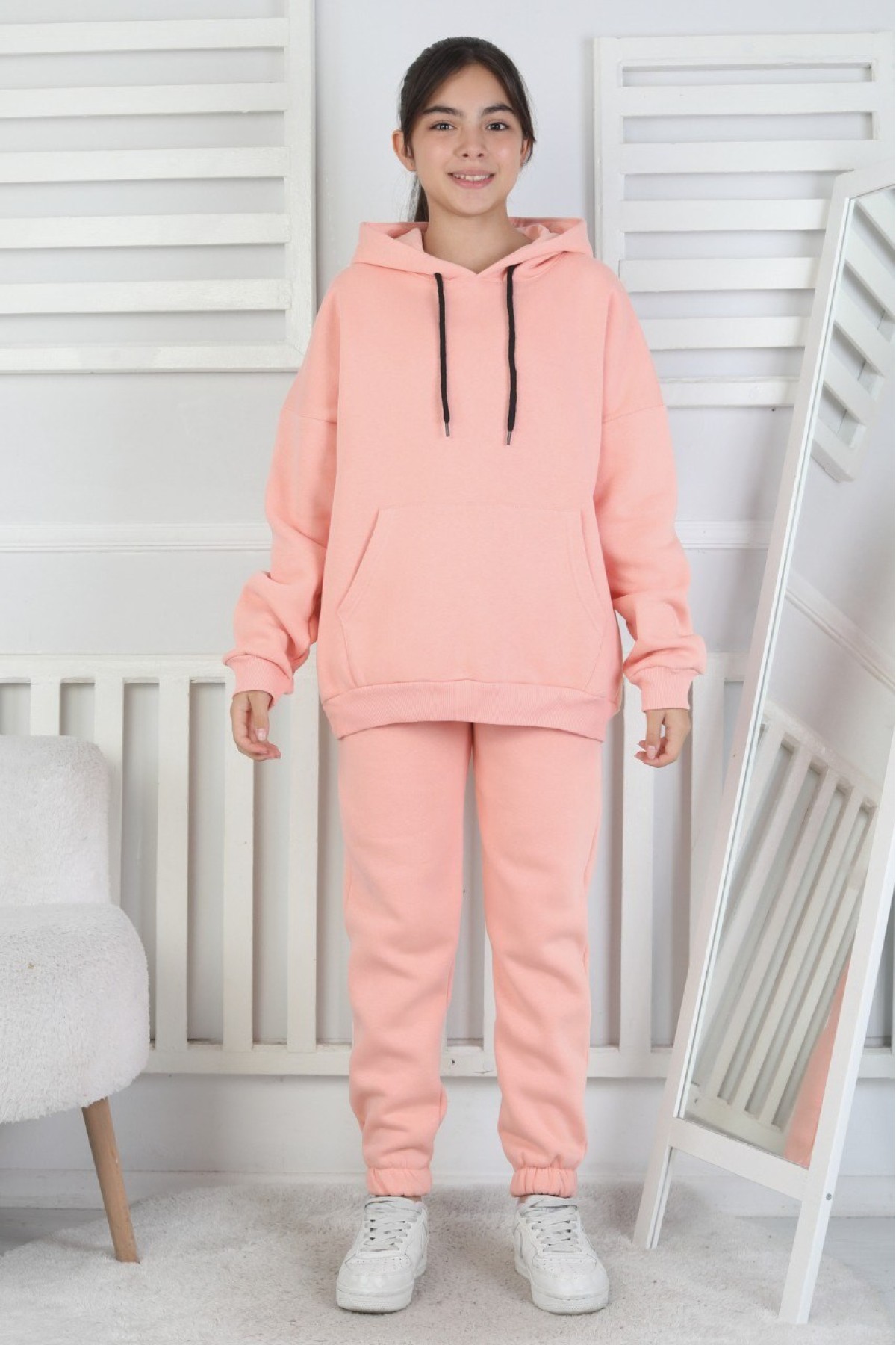 Şardonlu 3 İplik Kapşonlu Kız Çocuk Takım
