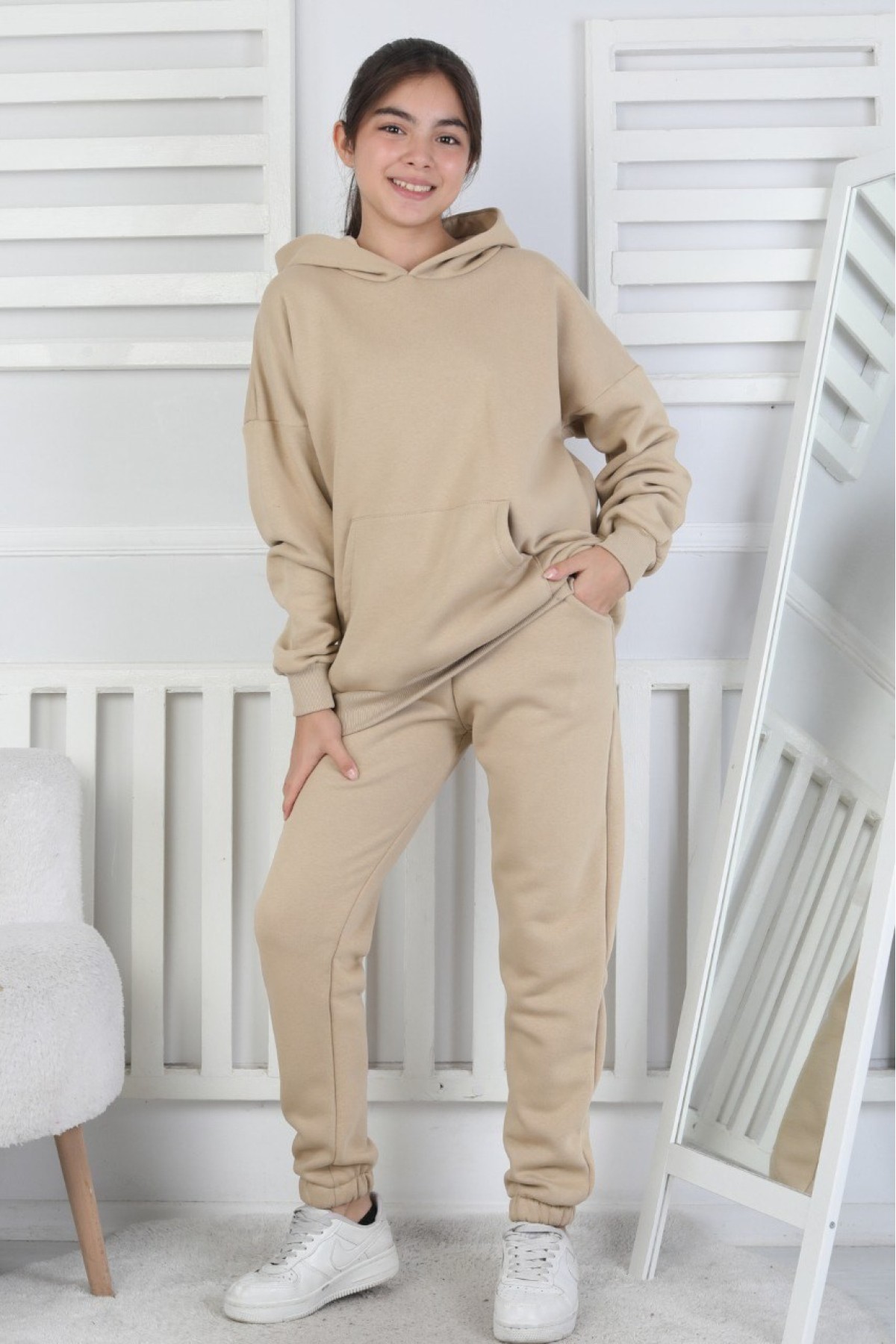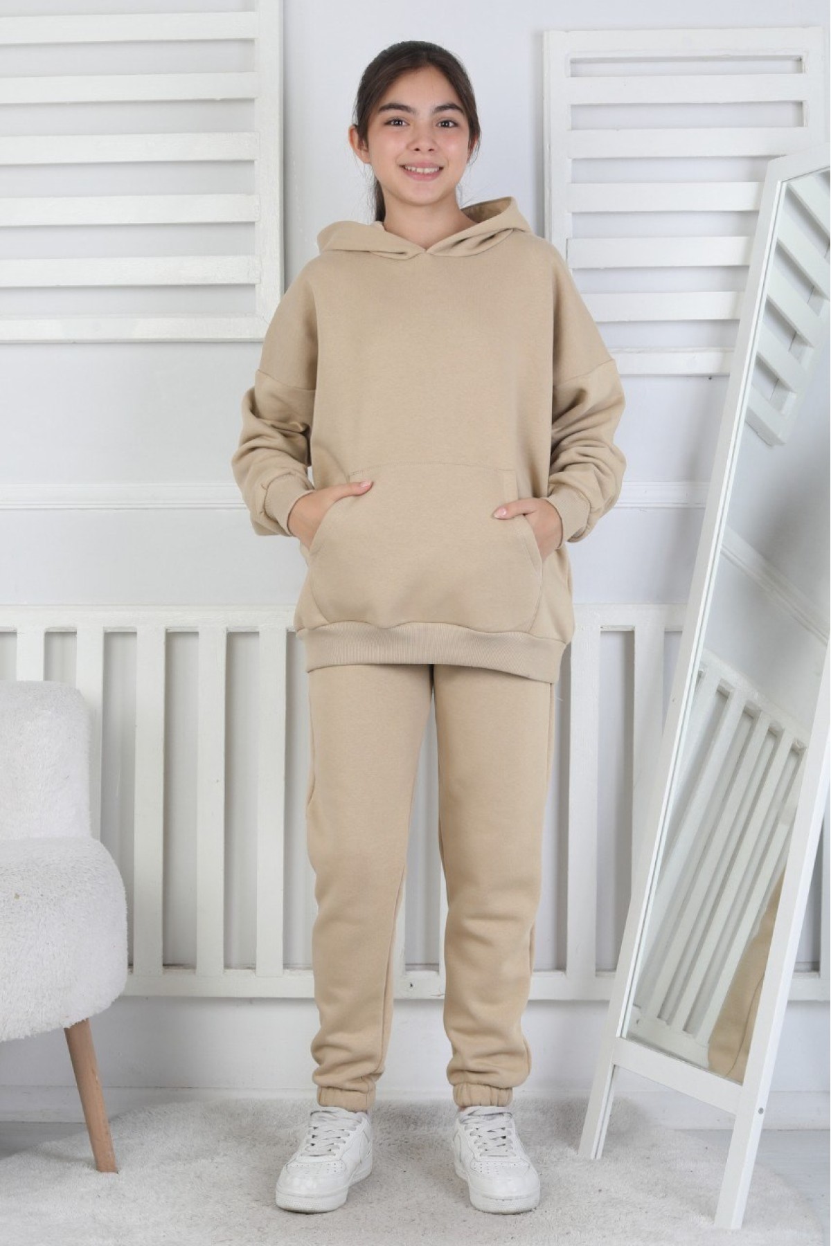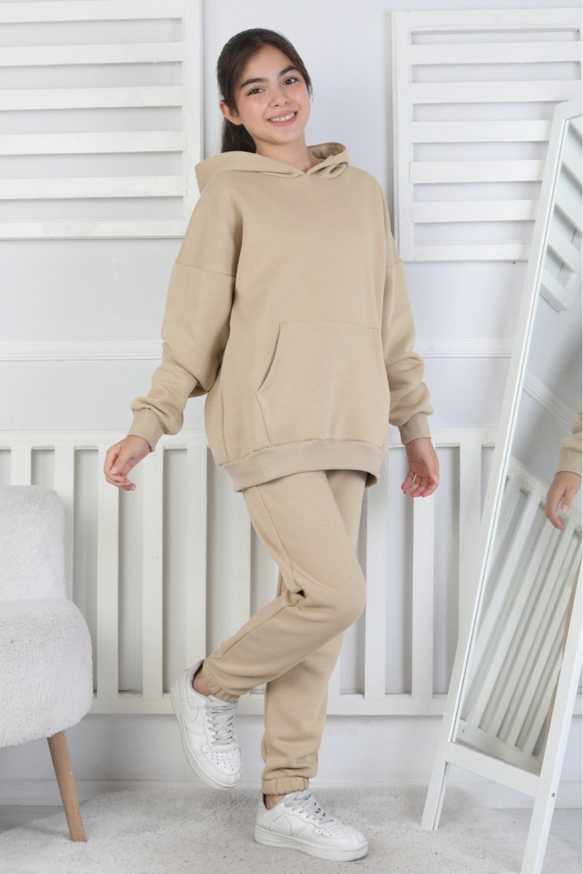 Şardonlu 3 İplik Kapşonlu Kız Çocuk Takım