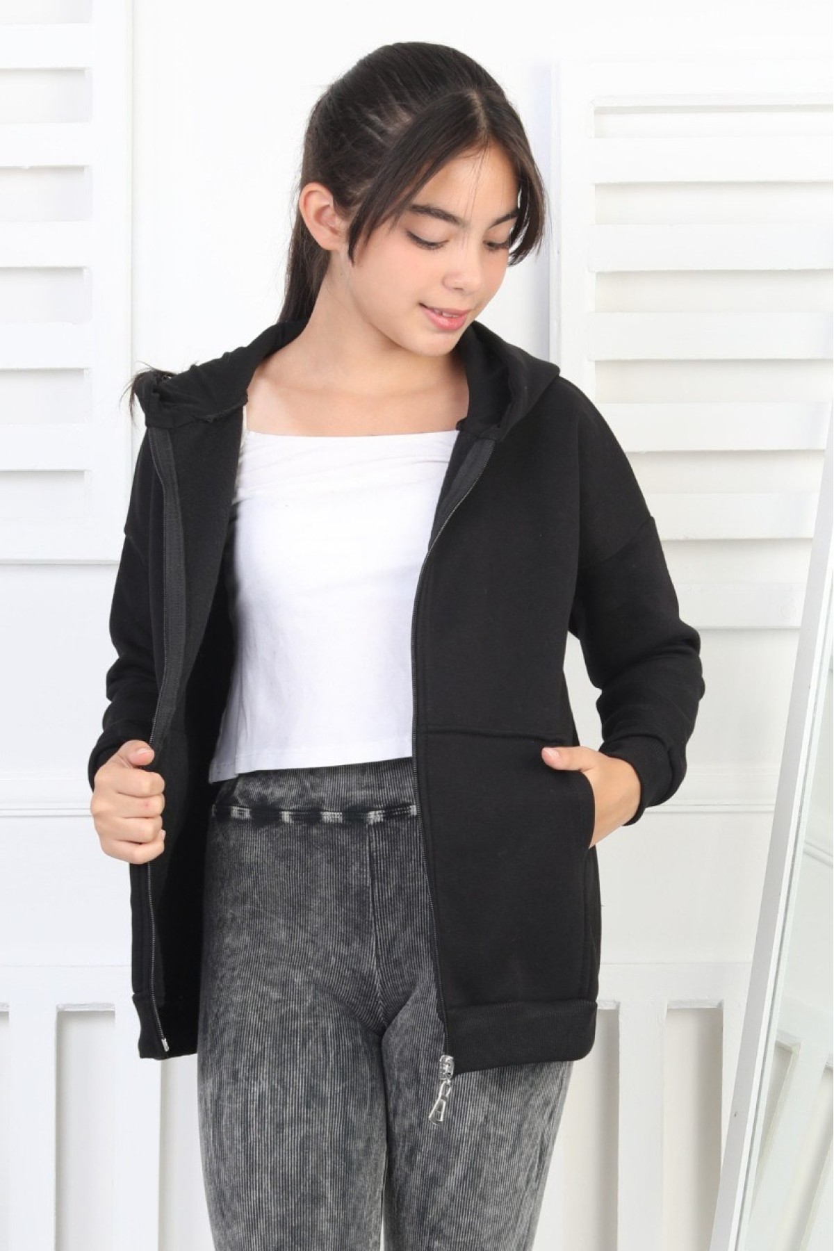 Şardonlu 3 İplik Kapşonlu Kız Çocuk Sweatshirt