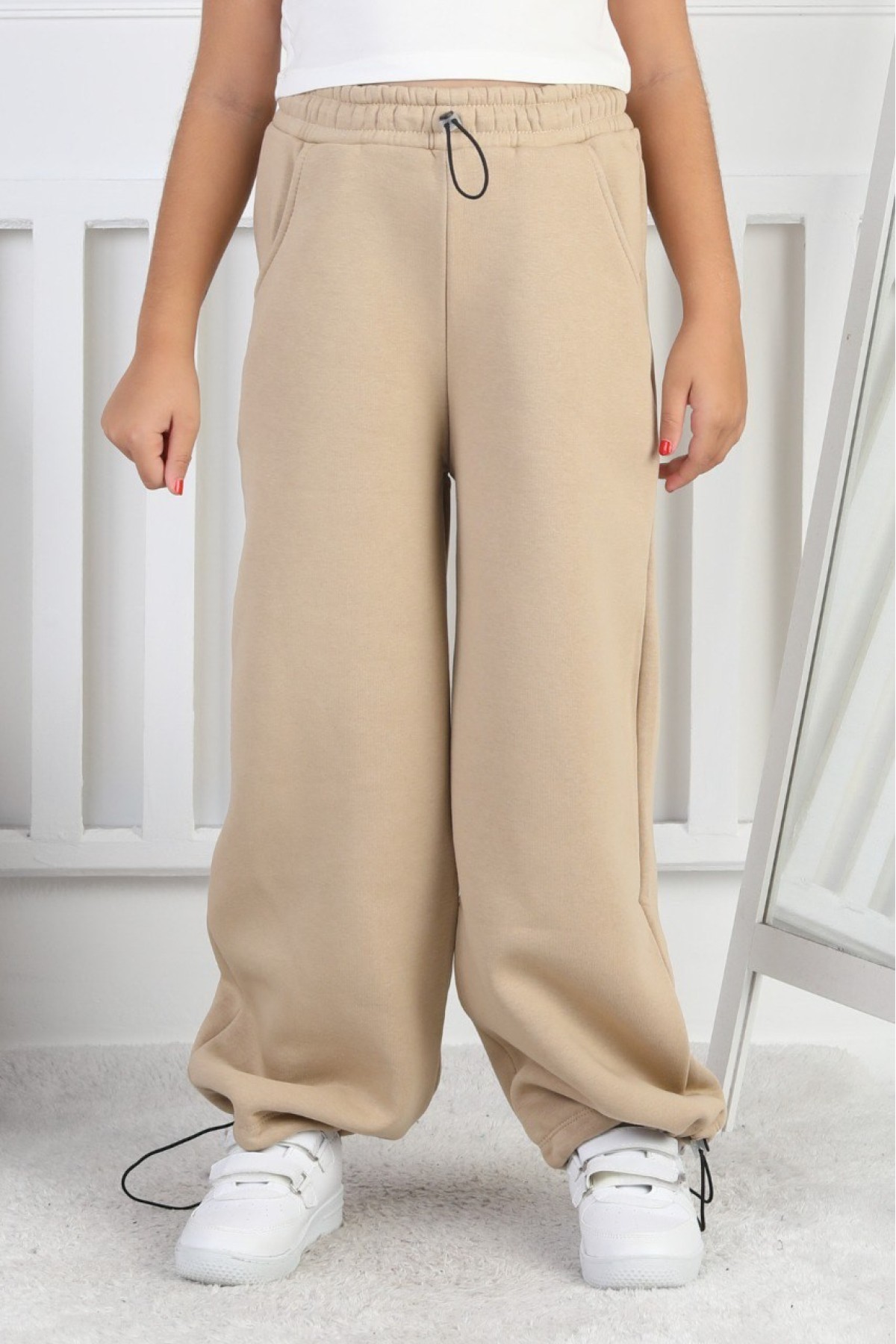 Şardonlu 3 İplik Paça Sıkmalı Kız Çocuk Eşofman Altı