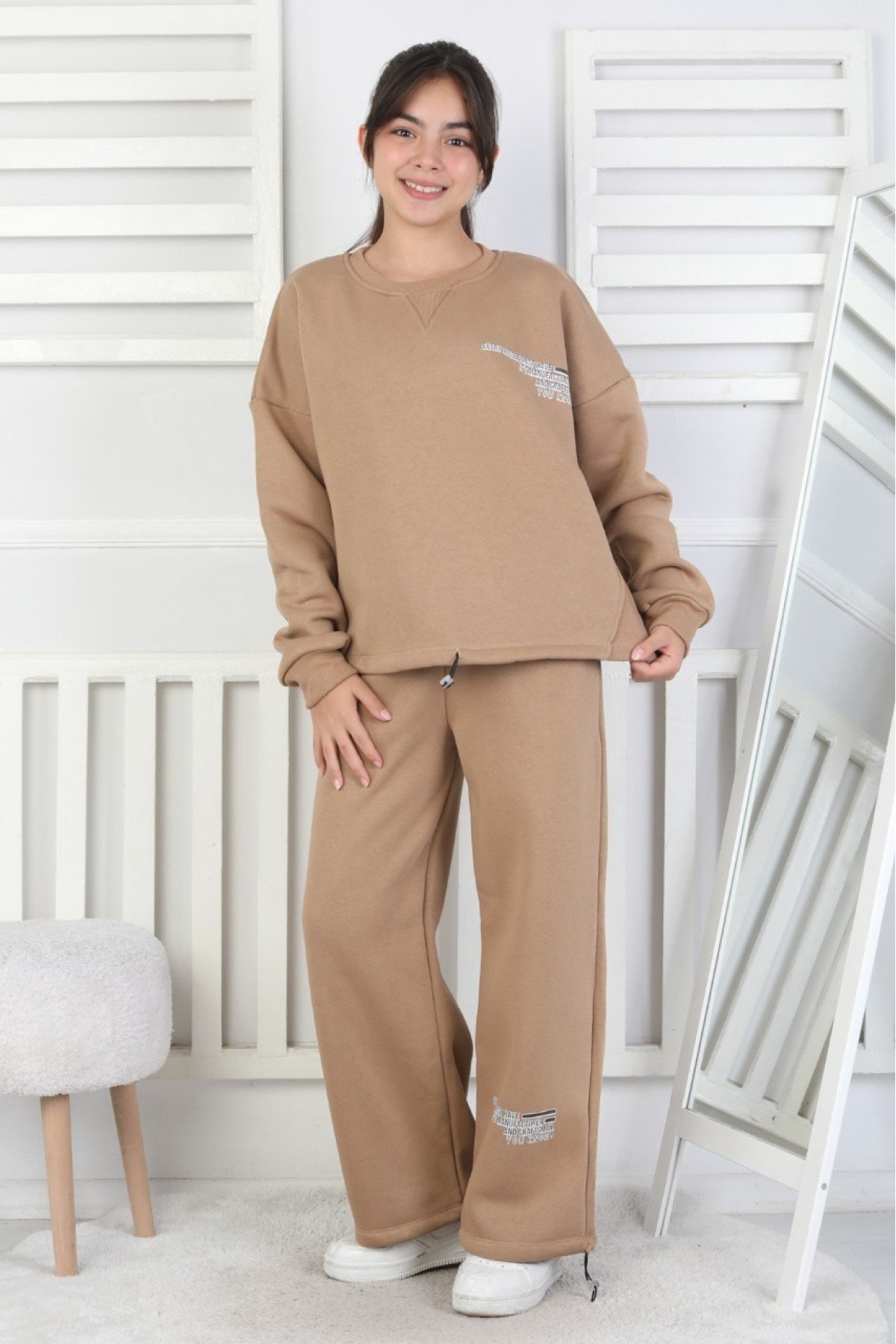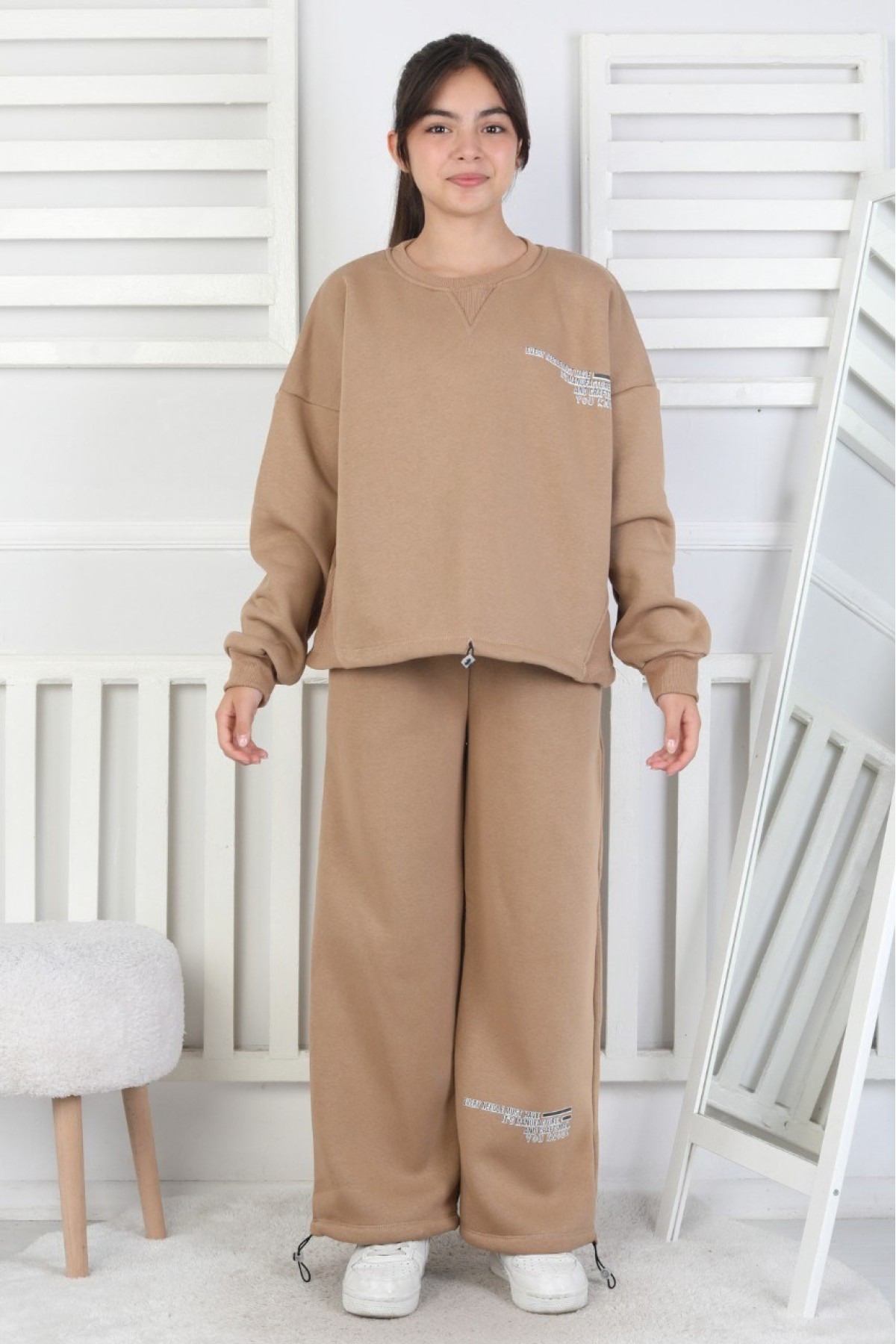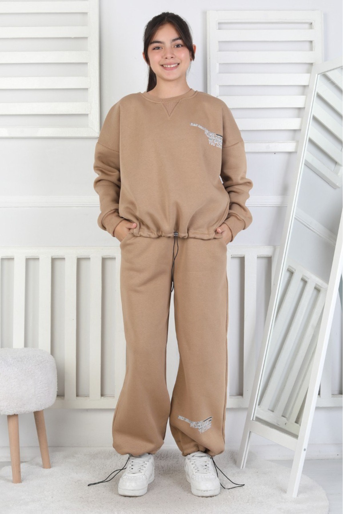 Şardonlu 3 İplik Lastikli Baskılı Kız Çocuk Takım