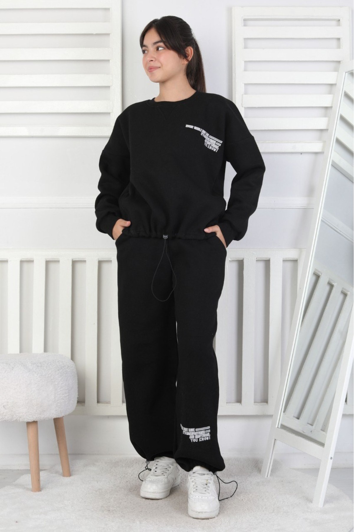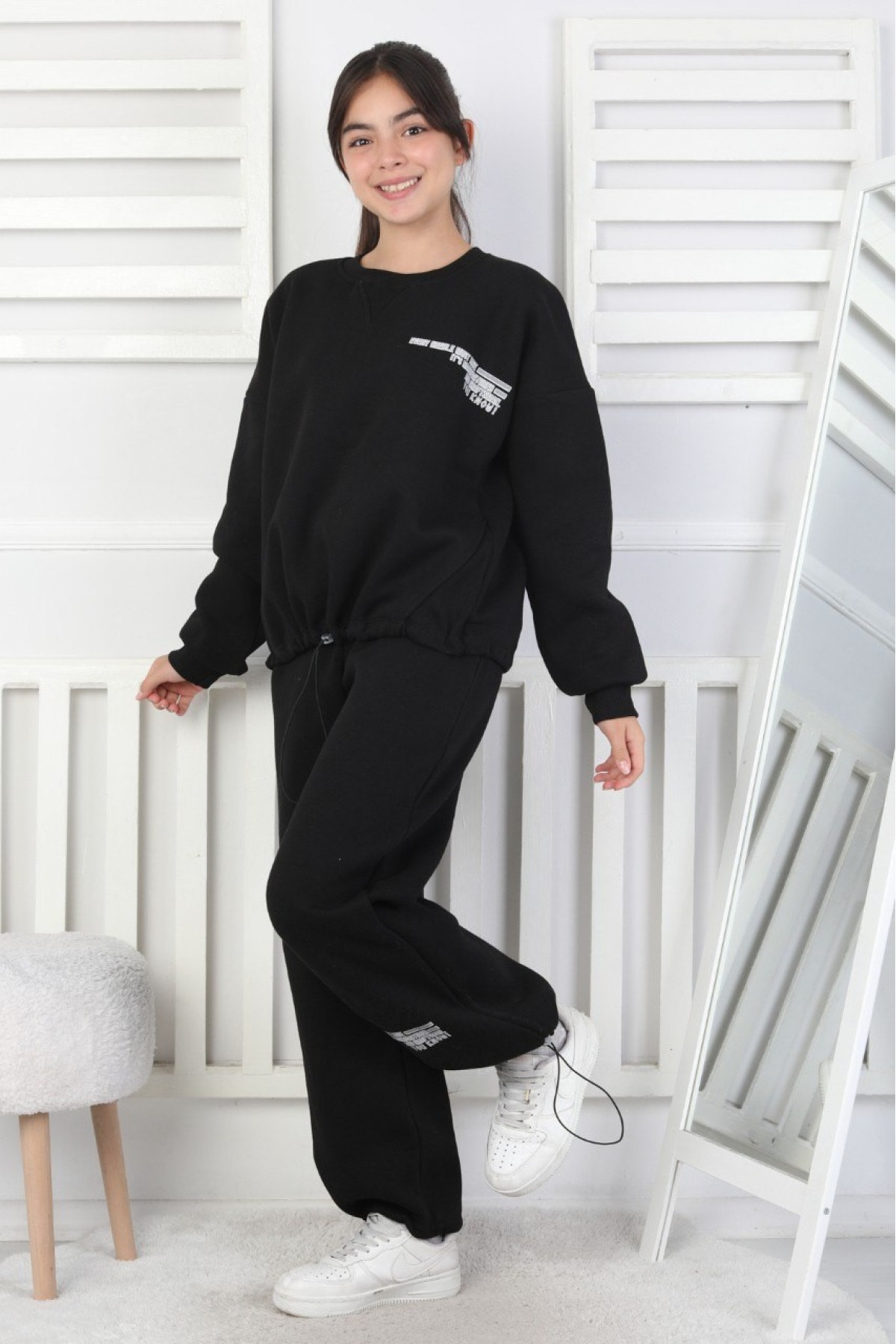 Şardonlu 3 İplik Lastikli Baskılı Kız Çocuk Takım